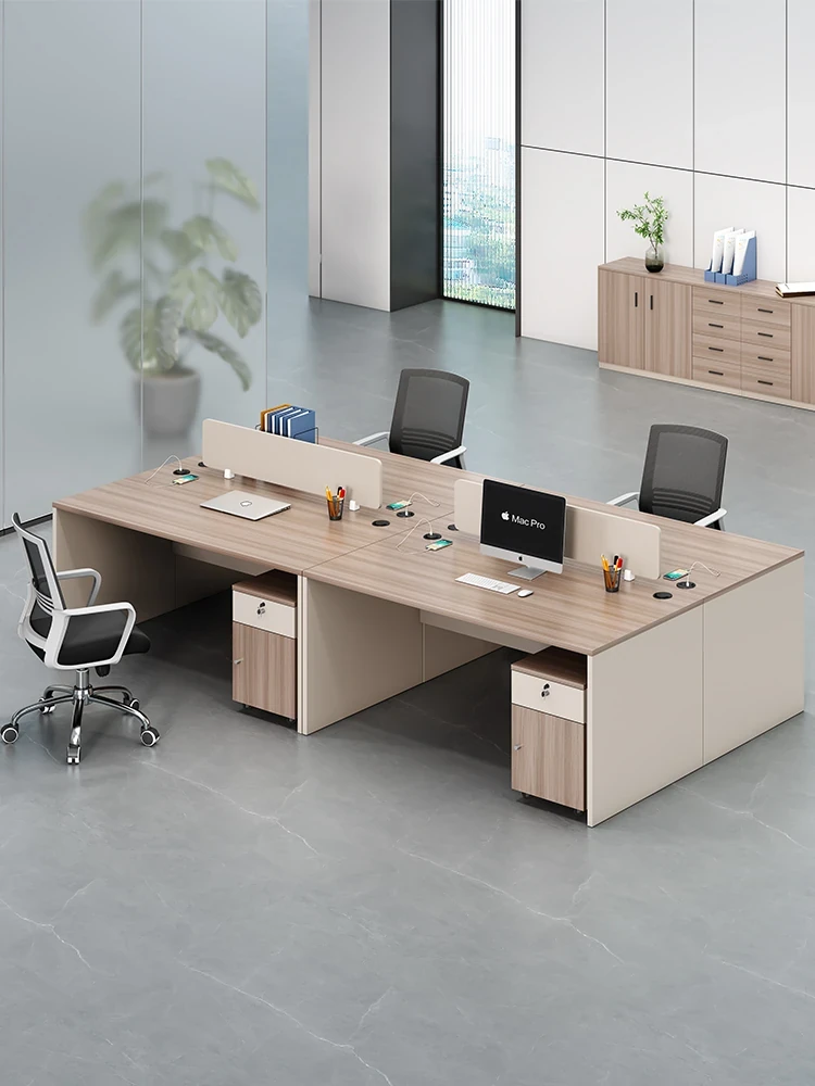 Modern Minimalist Office Desk and Chair Set with Partition - 4-Person Workstation for Employees, Perfect for Collaborative Working Spaces