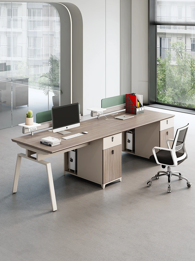 Modern Minimalist Four-Person Office Desk Set - Stylish and Functional Workstations for Employees with Chairs, Perfect for Professional Environments