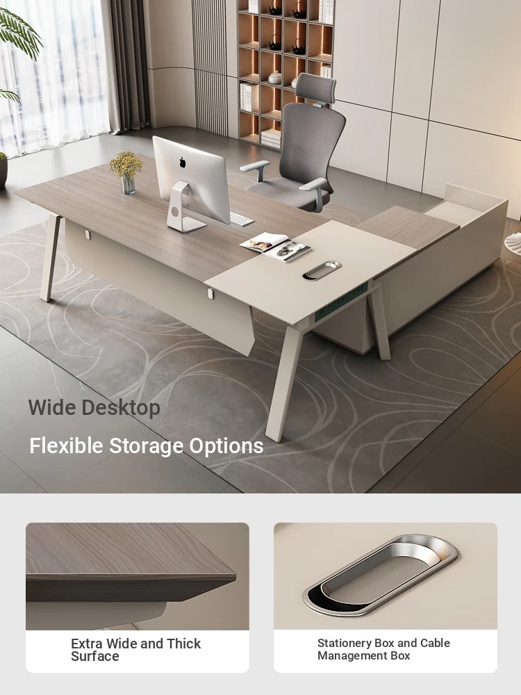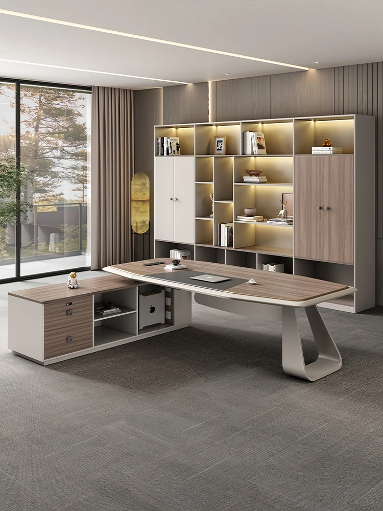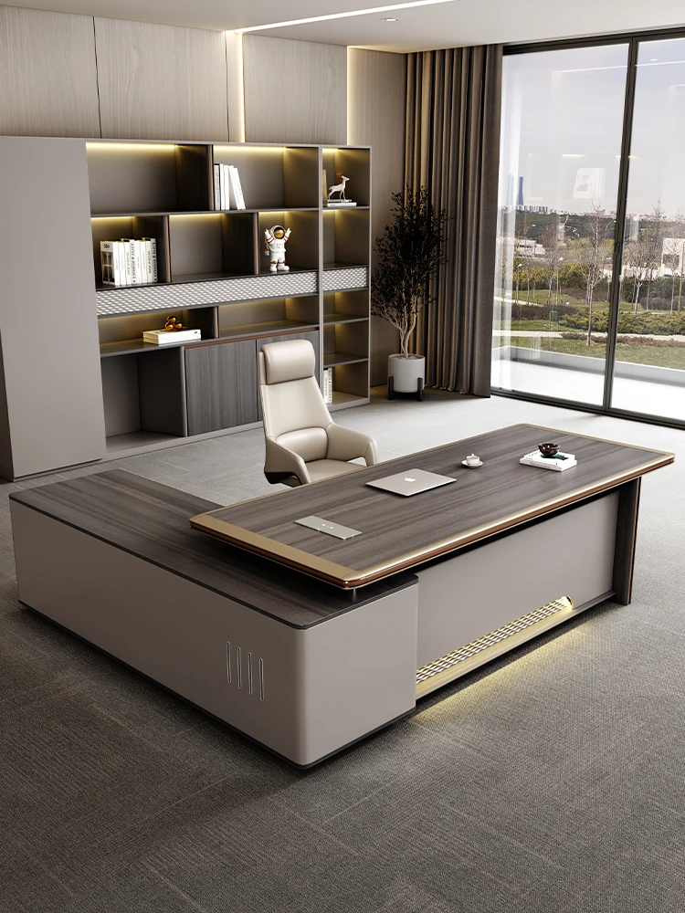 Modern Minimalist Executive Desk Set - Stylish Office Furniture for Bosses, Featuring a Sleek Desk and Chair Combo for a Luxurious Office Experience.
