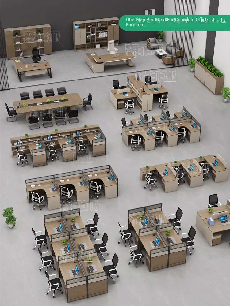 Modern Minimalist Office Desk and Chair Set with Steel Frame, Partition Screen, and Finance Desk – Perfect for Employee Workstations