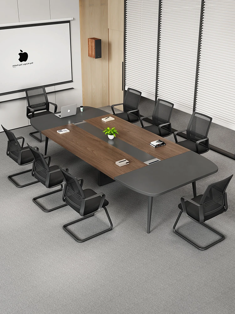 [Package Delivery] 94.49in*47.24in Conference Table (Walnut + Iron Grey) +8 Chairs