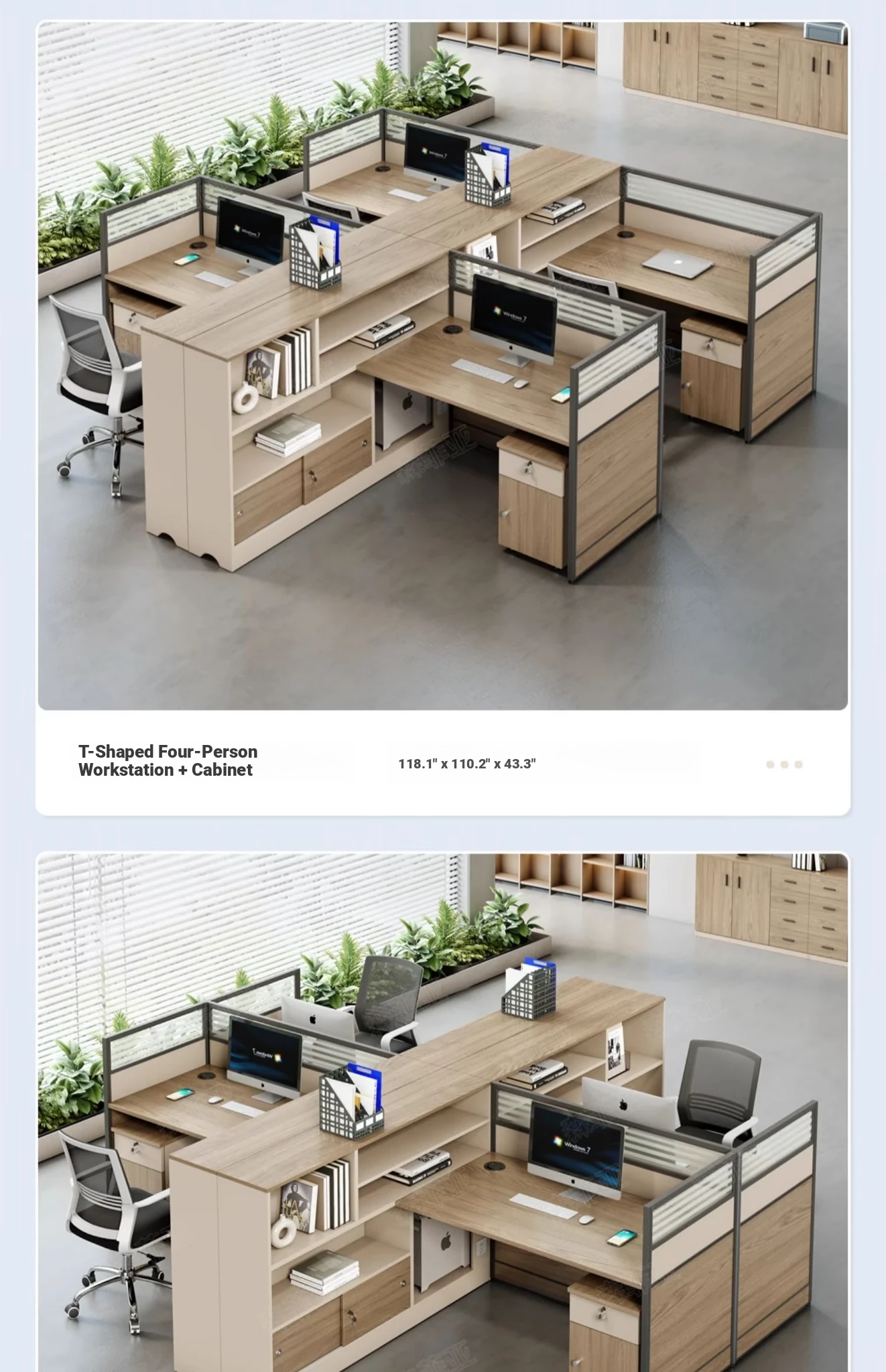 [E0 environmental protection board] 118.11 in T-type four-person + cabinet chair(Free delivery])