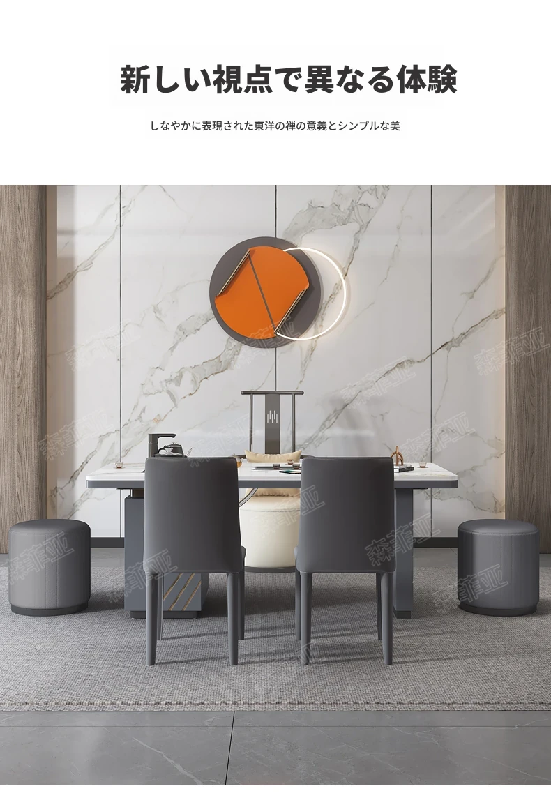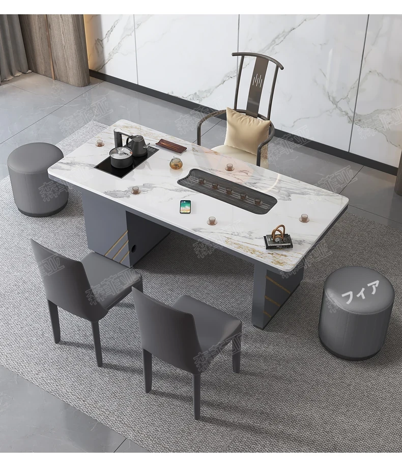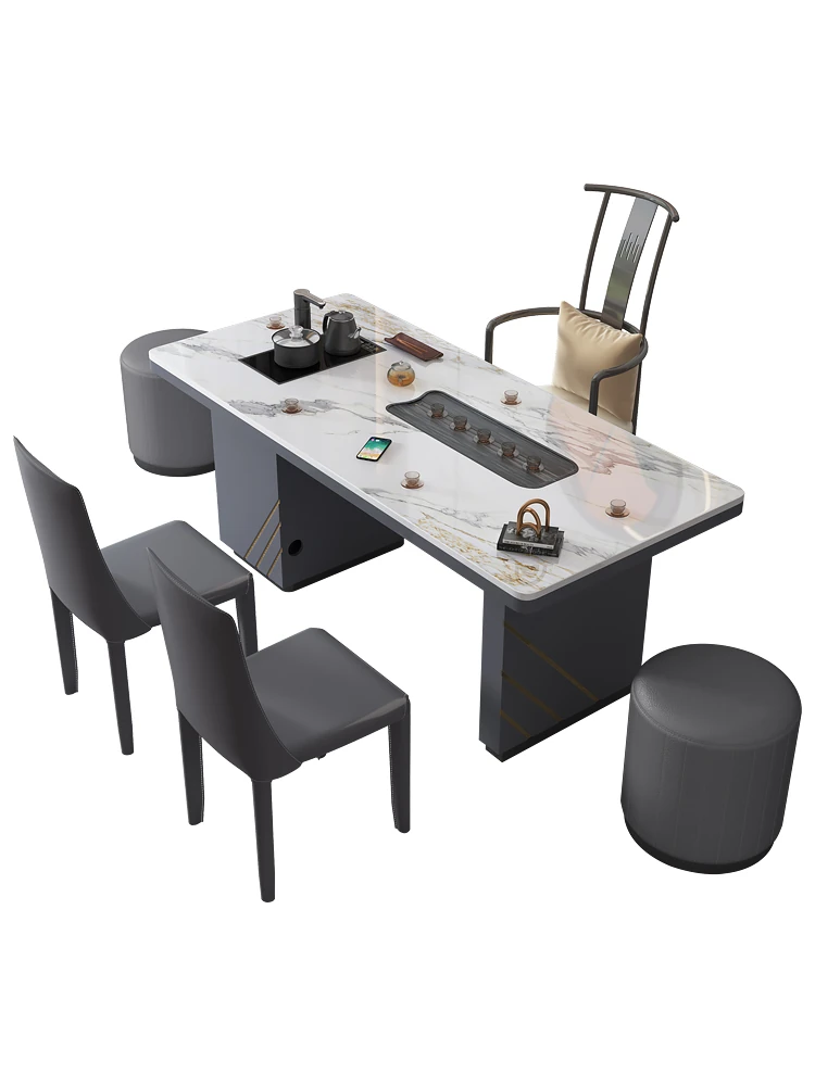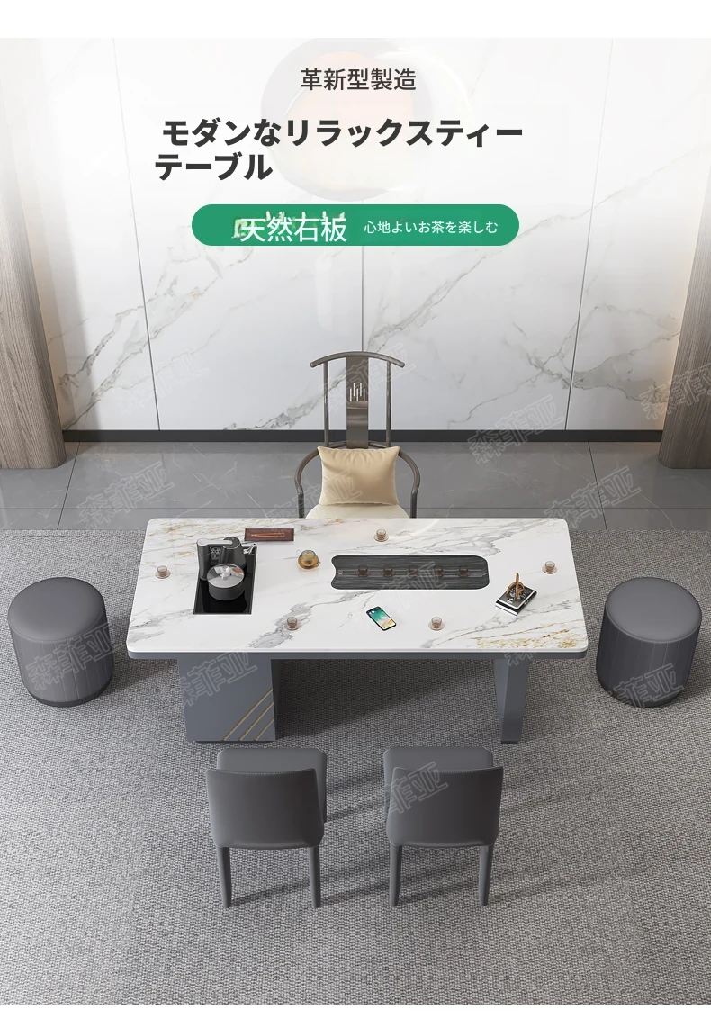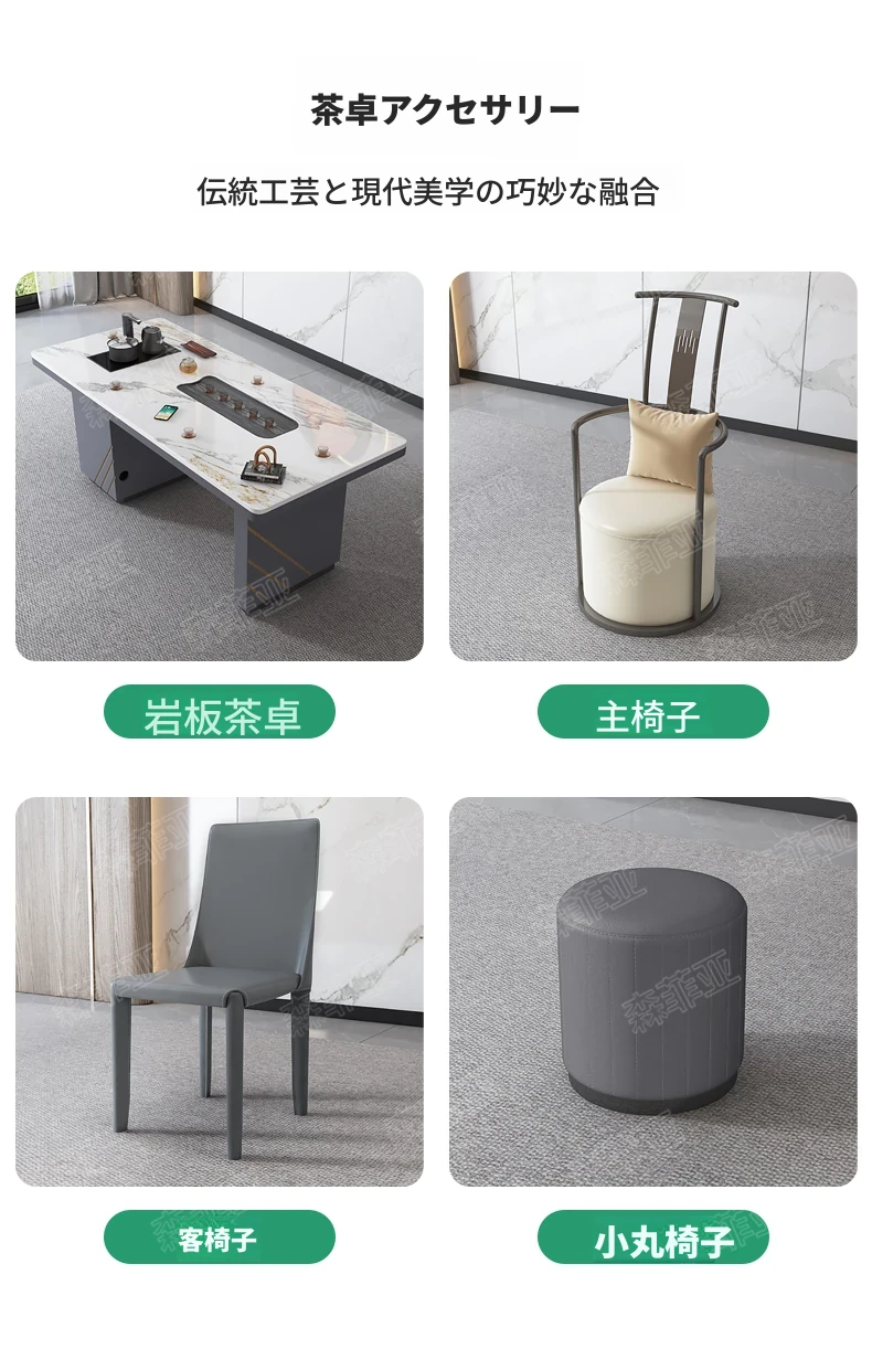 高級感溢れる岩板製ティーテーブル&チェアセット|モダンオフィスに最適な全自動茶道台|来客接待にもぴったり!心を癒すティータイムをお楽しみください。