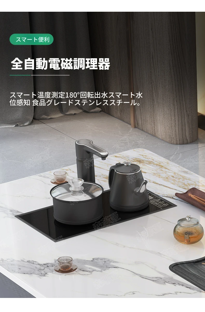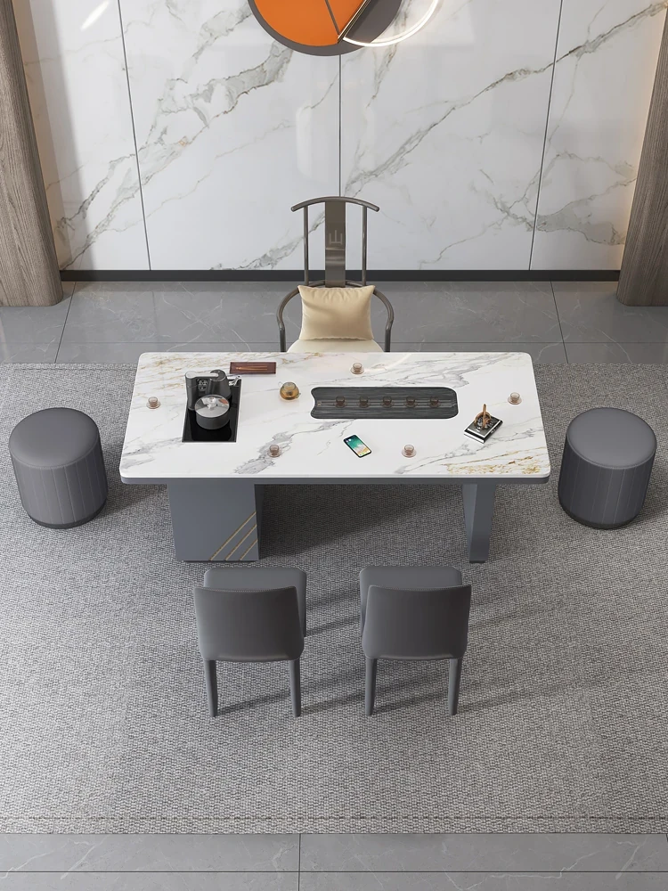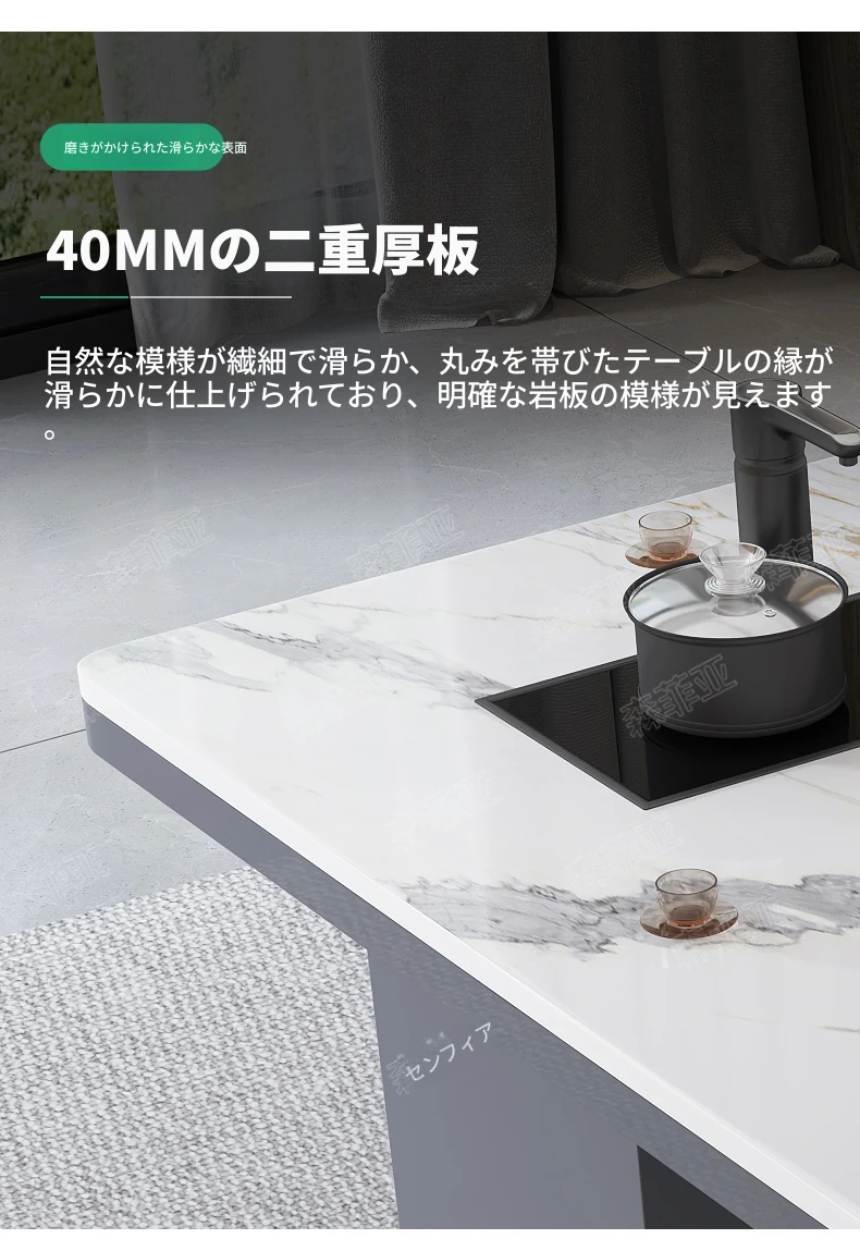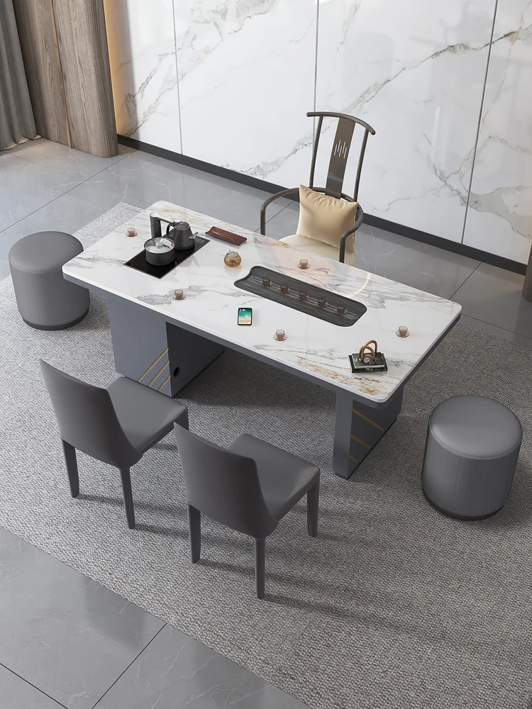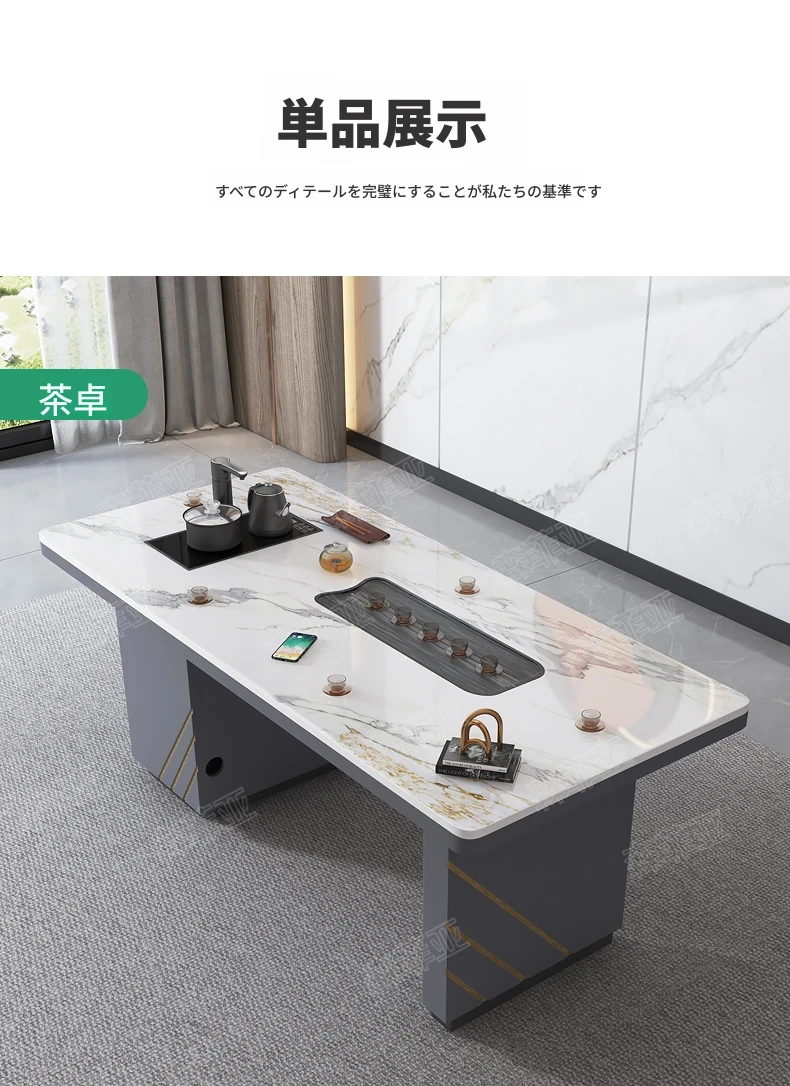 高級感溢れる岩板製ティーテーブル&チェアセット|モダンオフィスに最適な全自動茶道台|来客接待にもぴったり!心を癒すティータイムをお楽しみください。