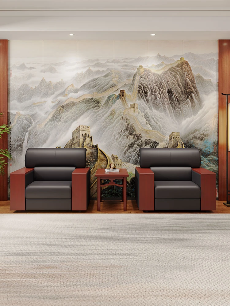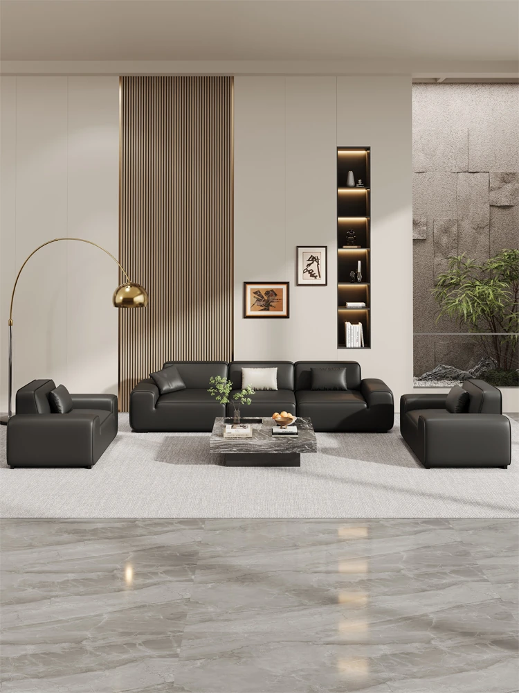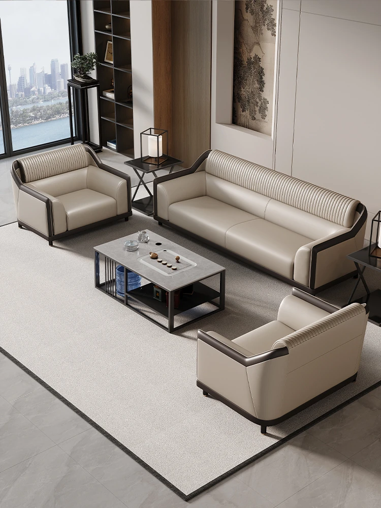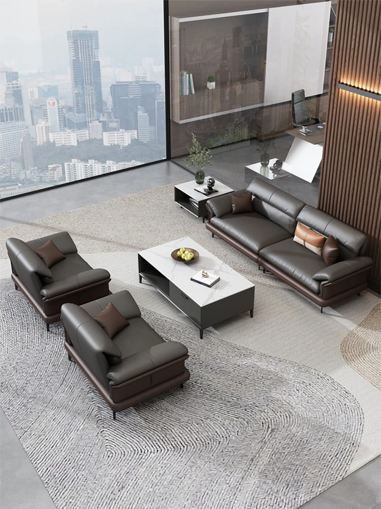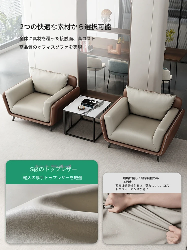 ビジネスエレガンス!オフィス用ソファ&コーヒーテーブルセット - シンプルでスタイリッシュな会議室や接待スペースに最適!高級レザー使用の快適なゲスト用ソファで、商談やリラックスしたひとときをお楽しみください。