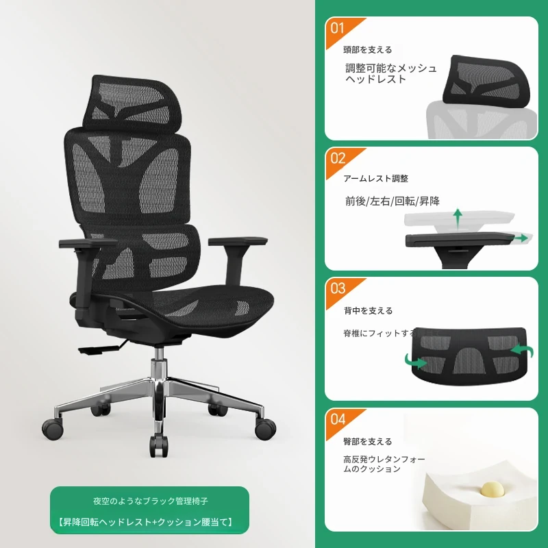 エルゴノミクスオフィスチェア|快適な座り心地で長時間の作業も安心!会議室や家庭用に最適な昇降可能なハイバック回転椅子。あなたの働き方をサポートします!