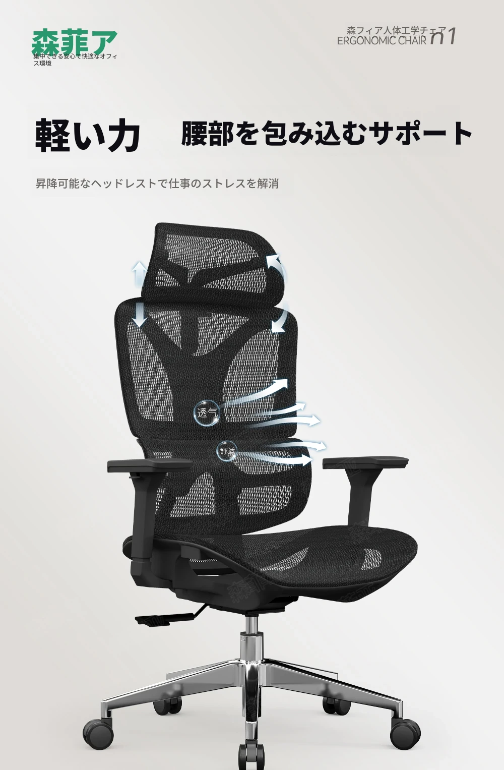 エルゴノミクスオフィスチェア|快適な背もたれ付き|通気性のあるメッシュ素材|昇降&回転機能付き|会議・作業に最適なデザイン|長時間の座り仕事もサポート!