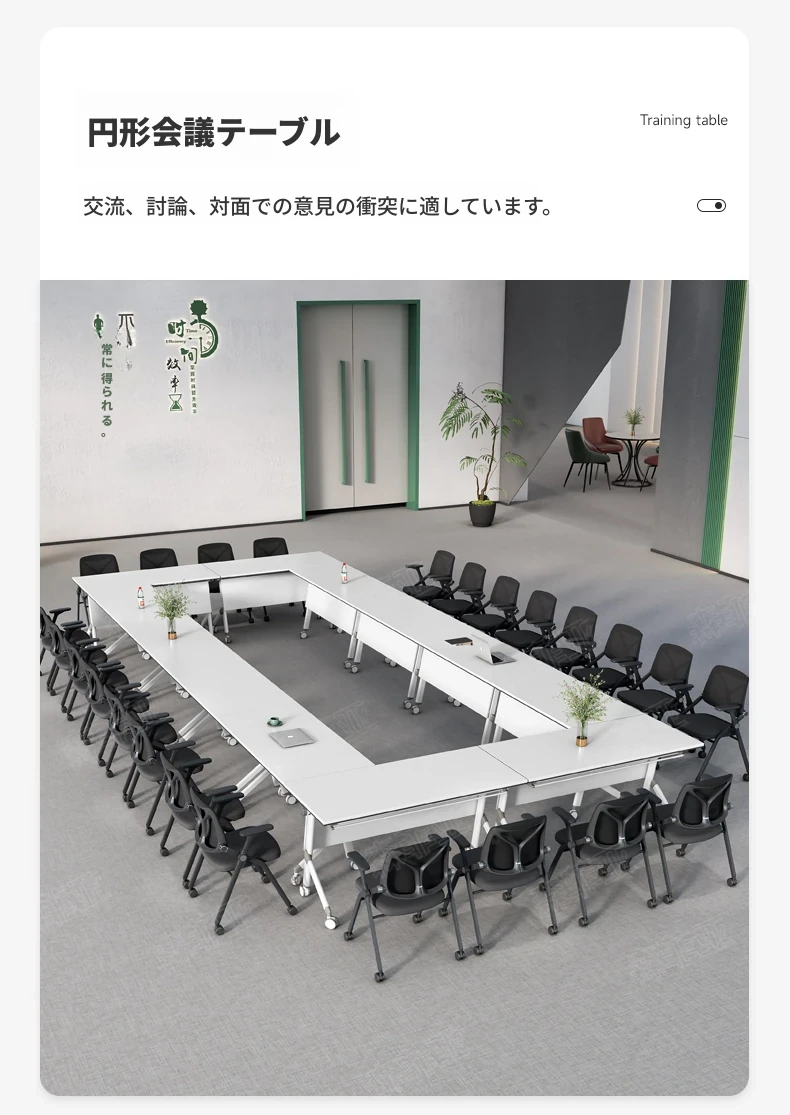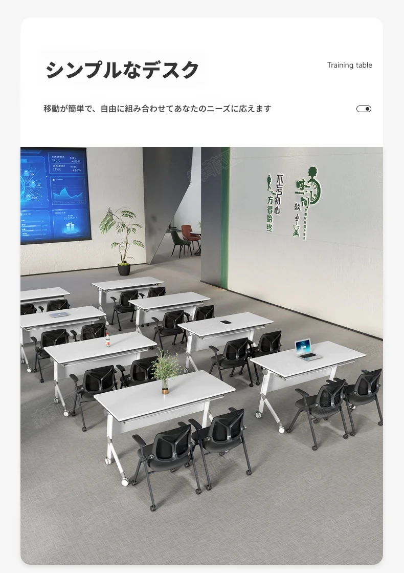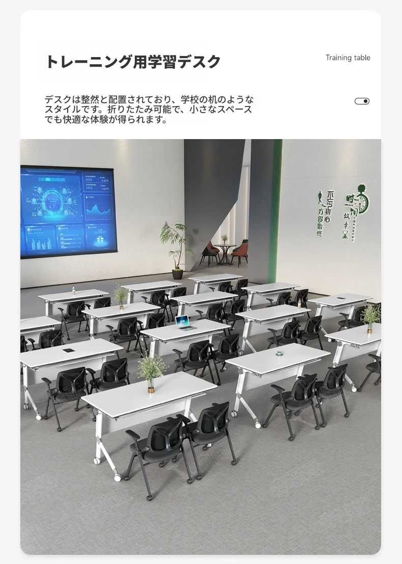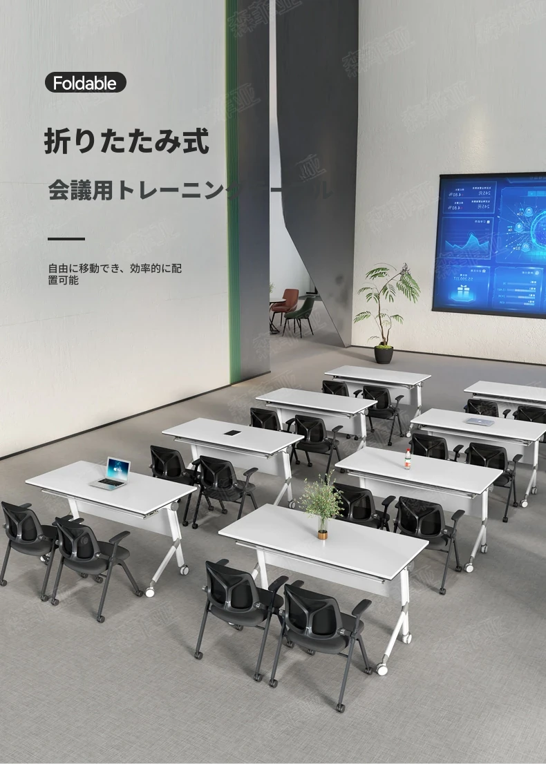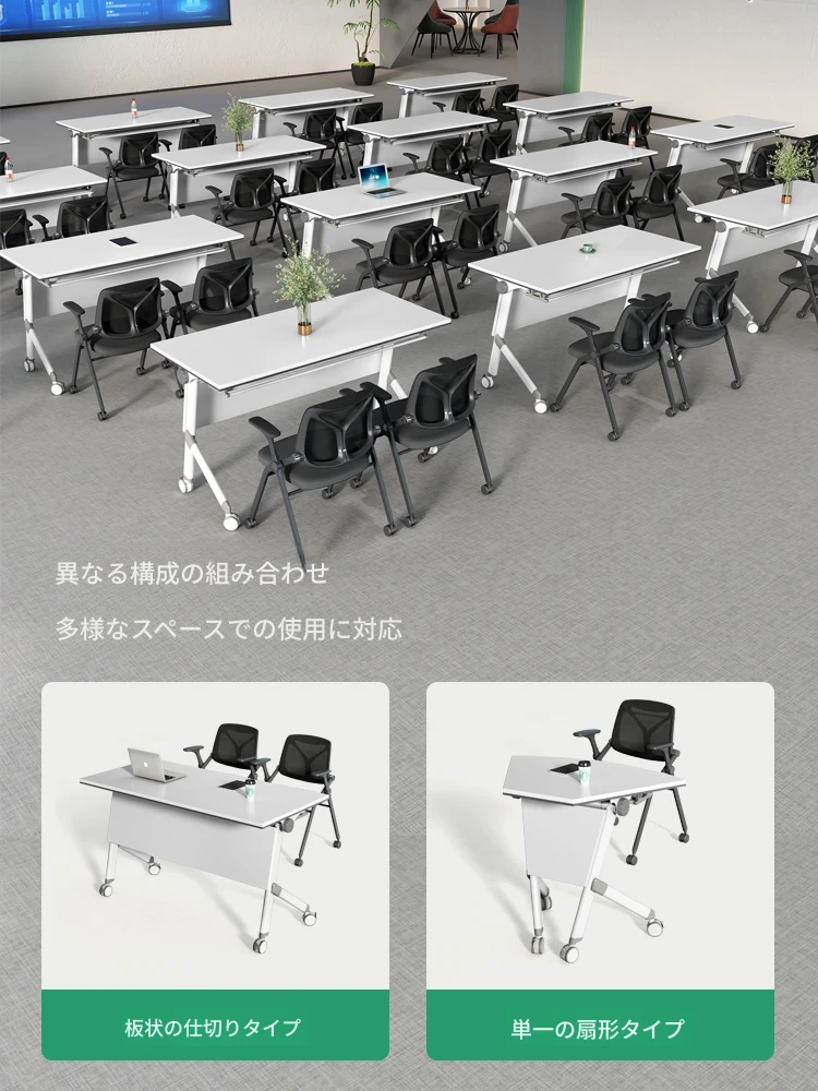 折りたたみ式トレーニングテーブル&チェアセット - 移動可能でスペースを有効活用!会議や授業に最適な長テーブル、簡単に組み合わせ可能で、快適なワークスペースを提供します。