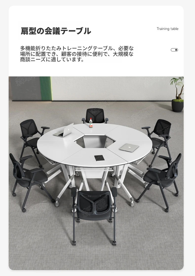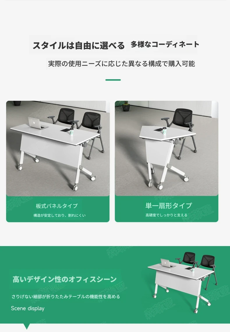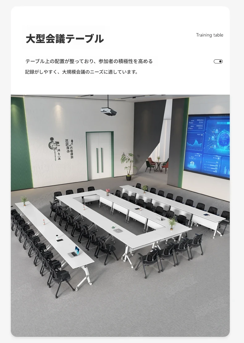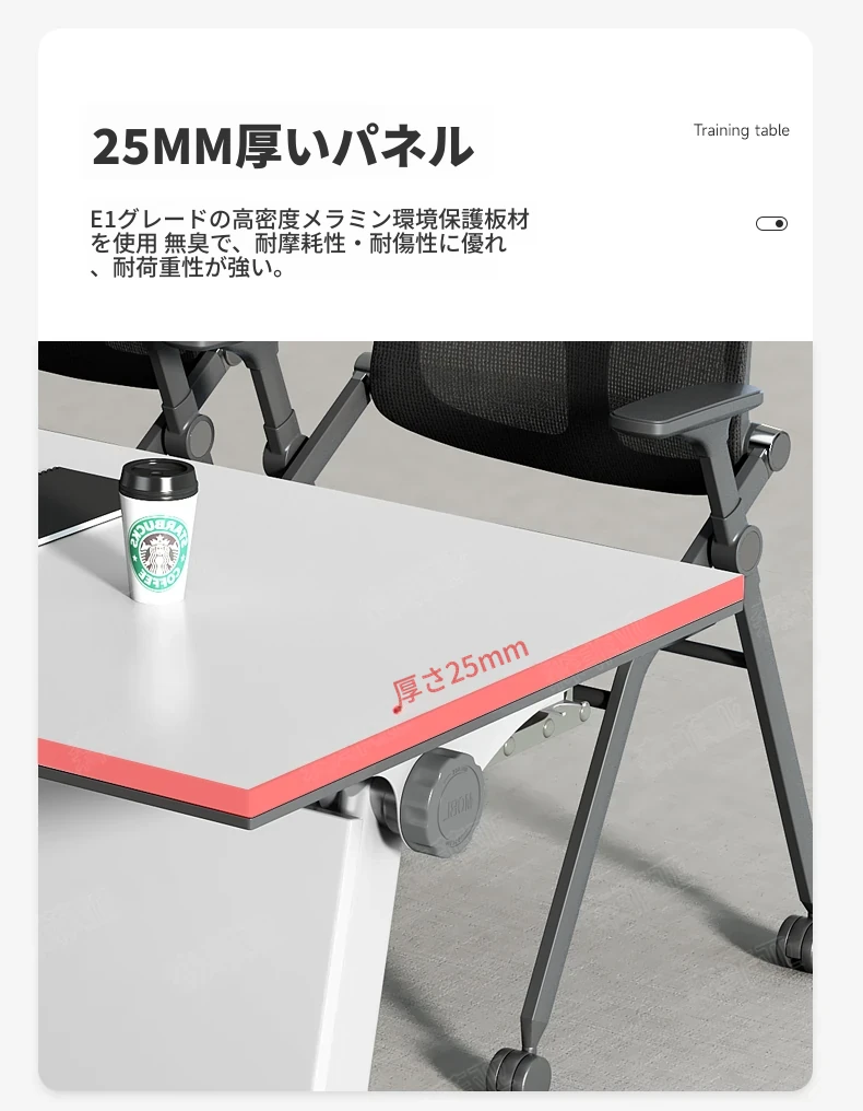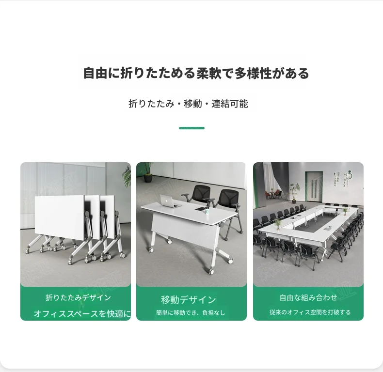 折りたたみ式トレーニングテーブル&チェアセット - 移動可能でスペースを有効活用!会議や授業に最適な長テーブル、簡単に組み合わせ可能で、快適なワークスペースを提供します。