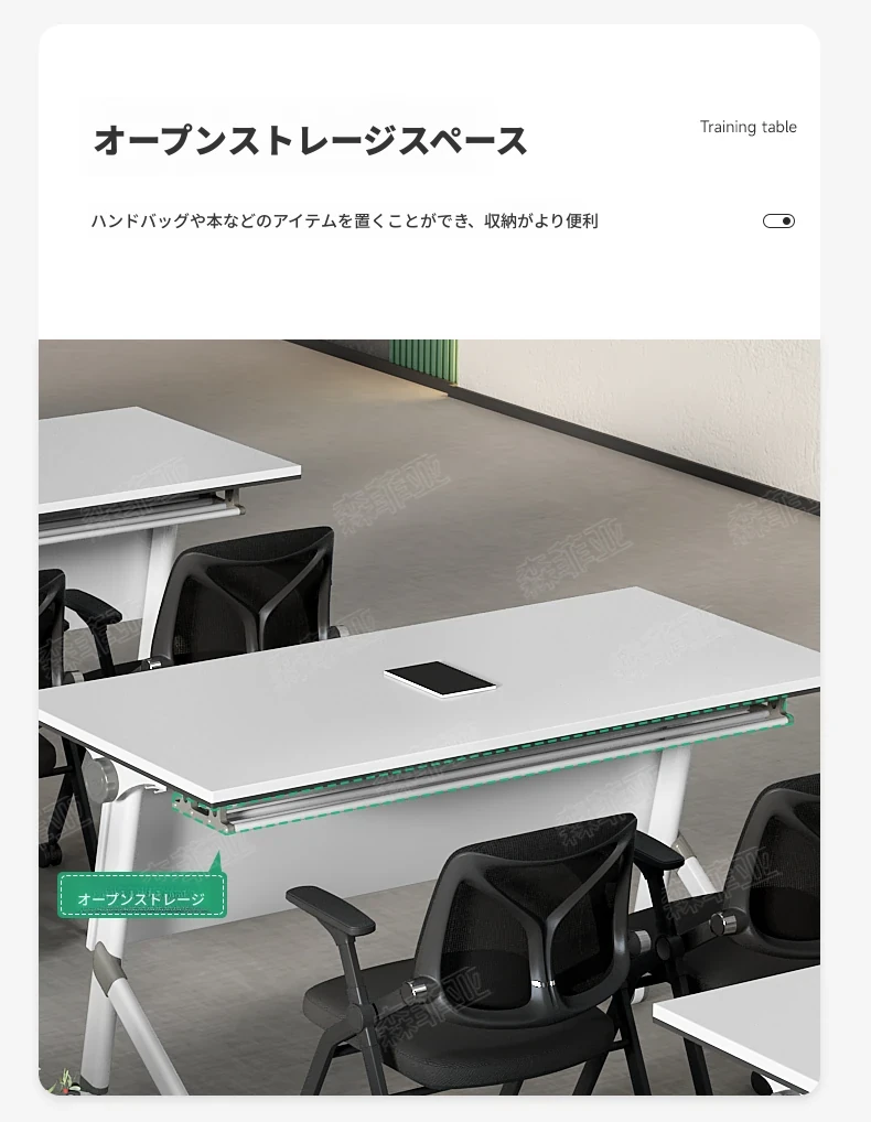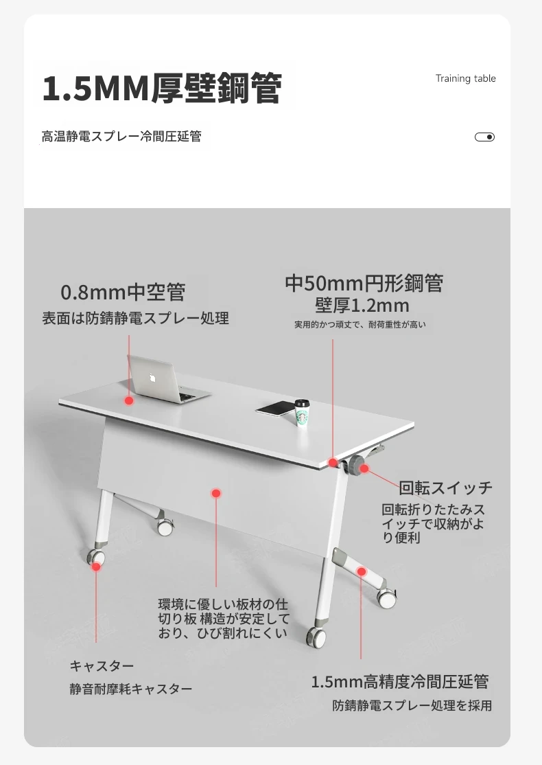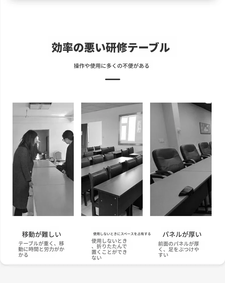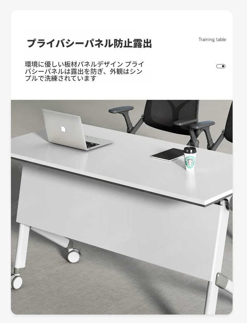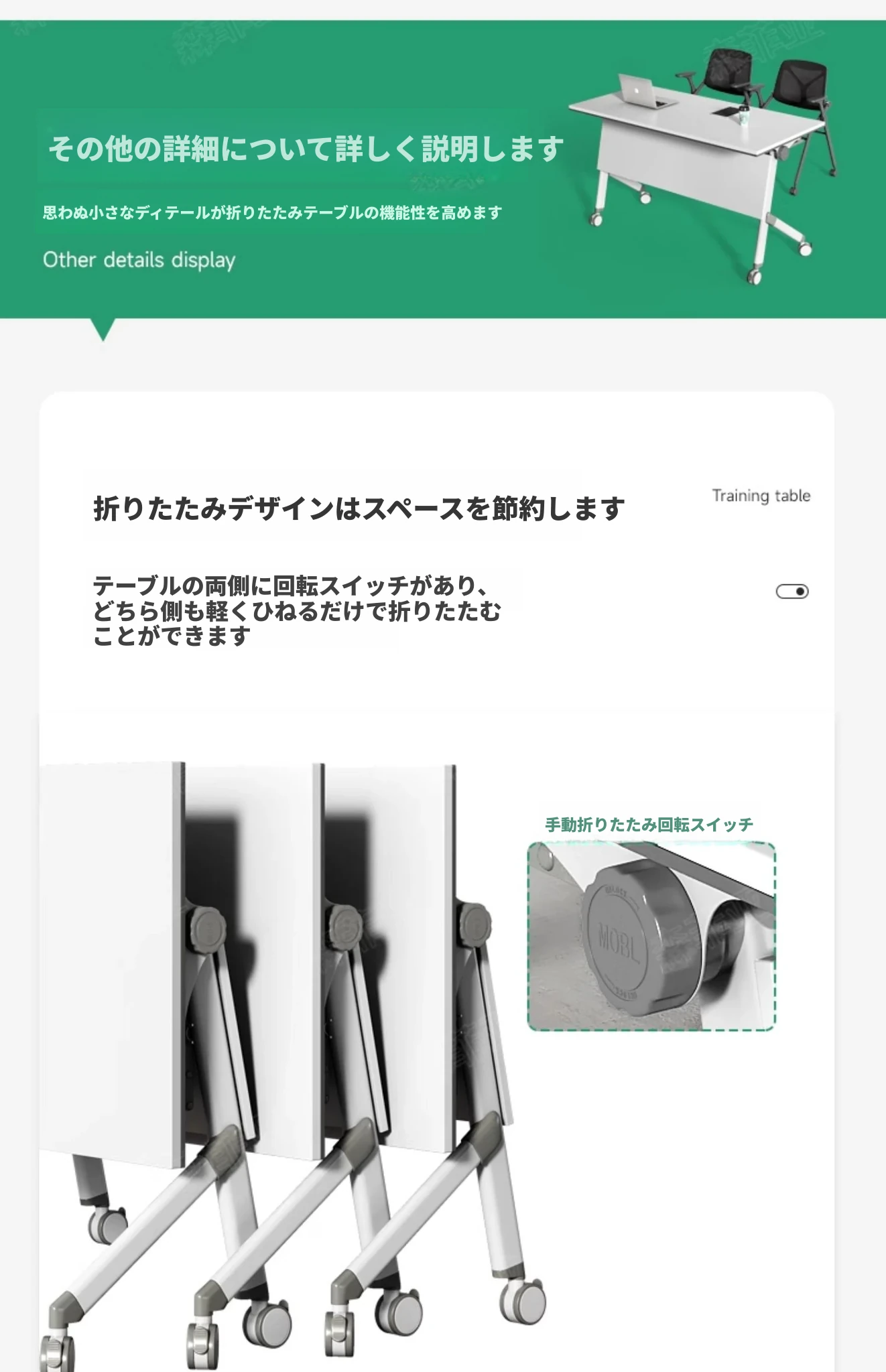 折りたたみ式トレーニングテーブル&チェアセット - 移動可能でスペースを有効活用!会議や授業に最適な長テーブル、簡単に組み合わせ可能で、快適なワークスペースを提供します。