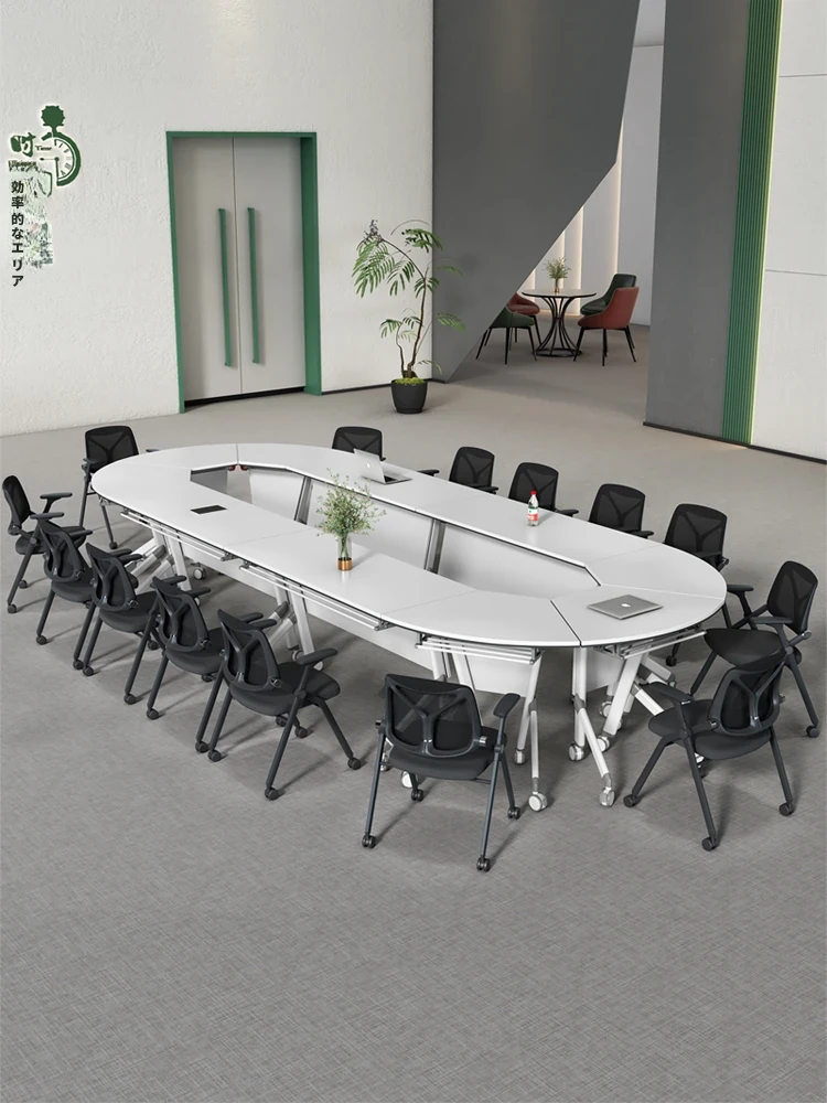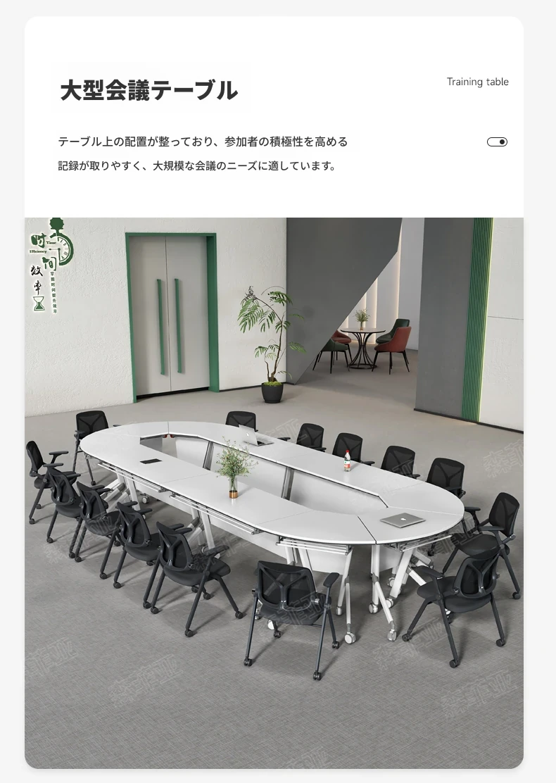 モダンシンプルな楕円形会議テーブルセット - 大小サイズの会議室用長テーブルとチェアの組み合わせ!快適な商談空間を提供し、スタイリッシュなデザインで会議を引き立てます。