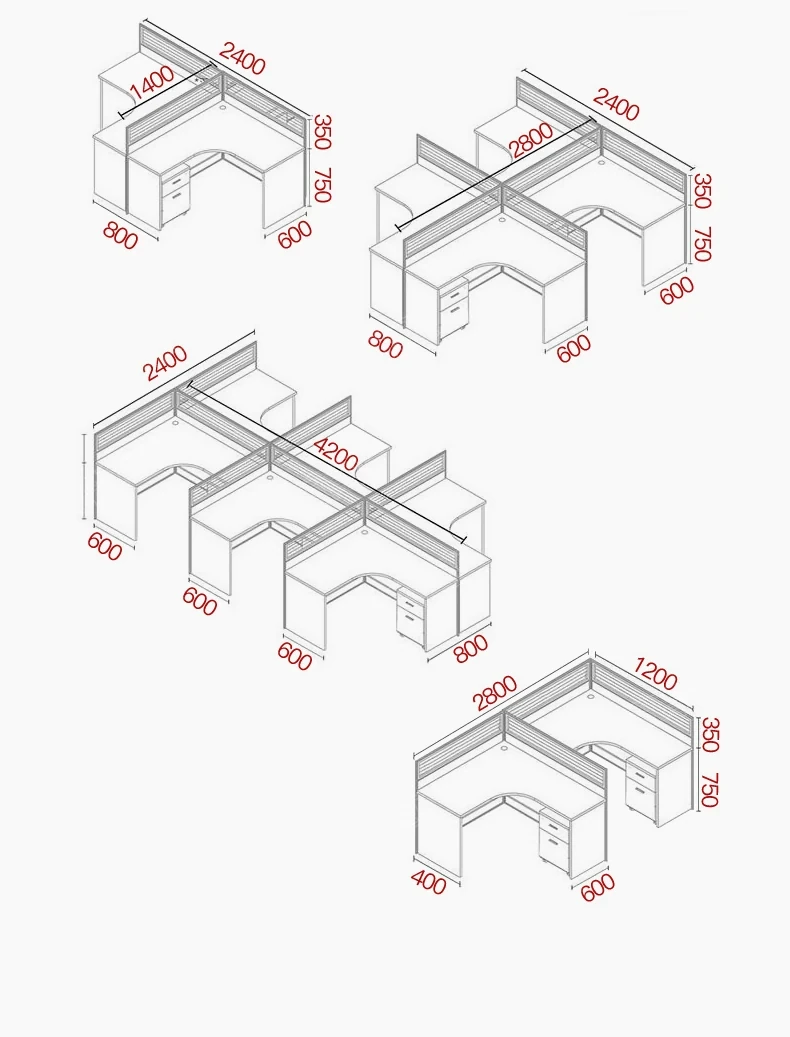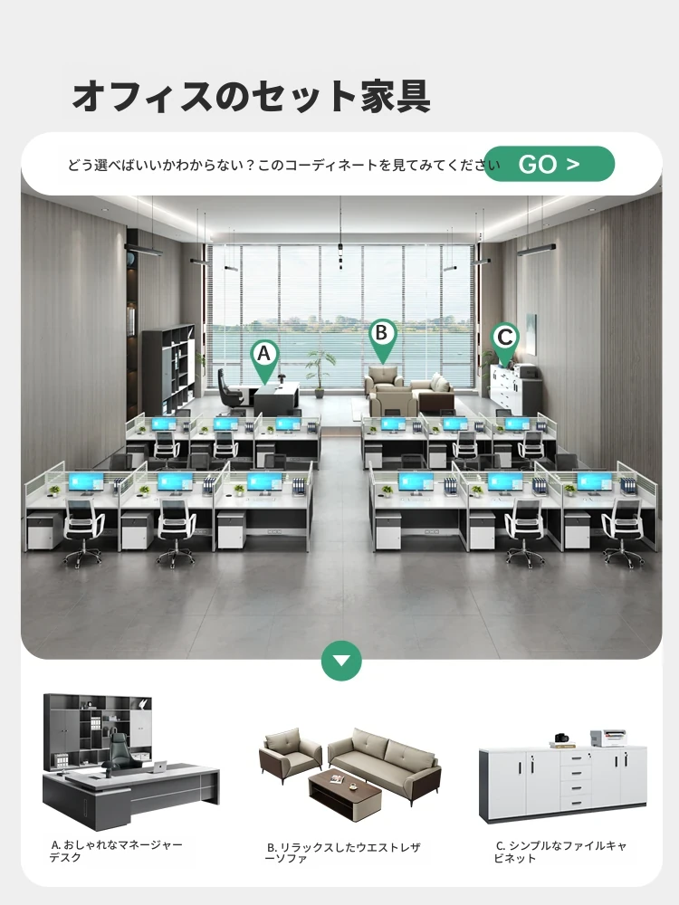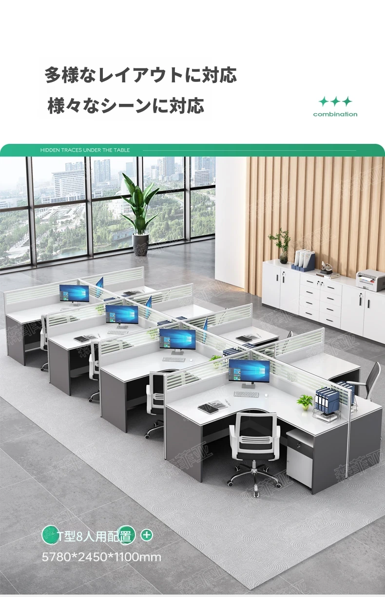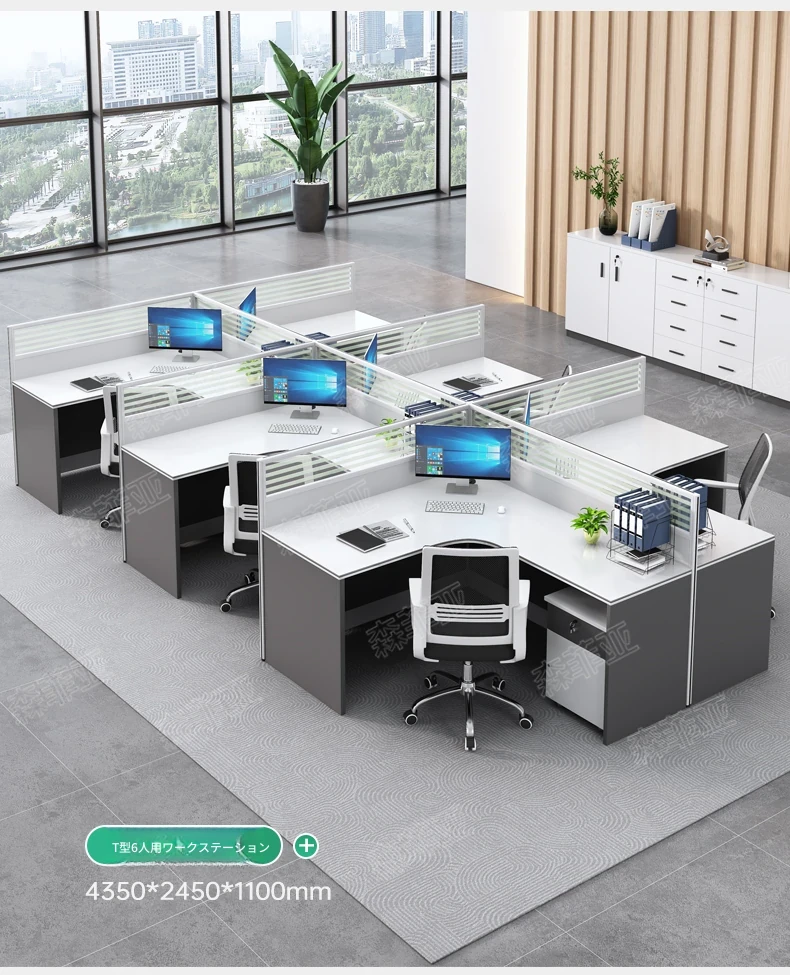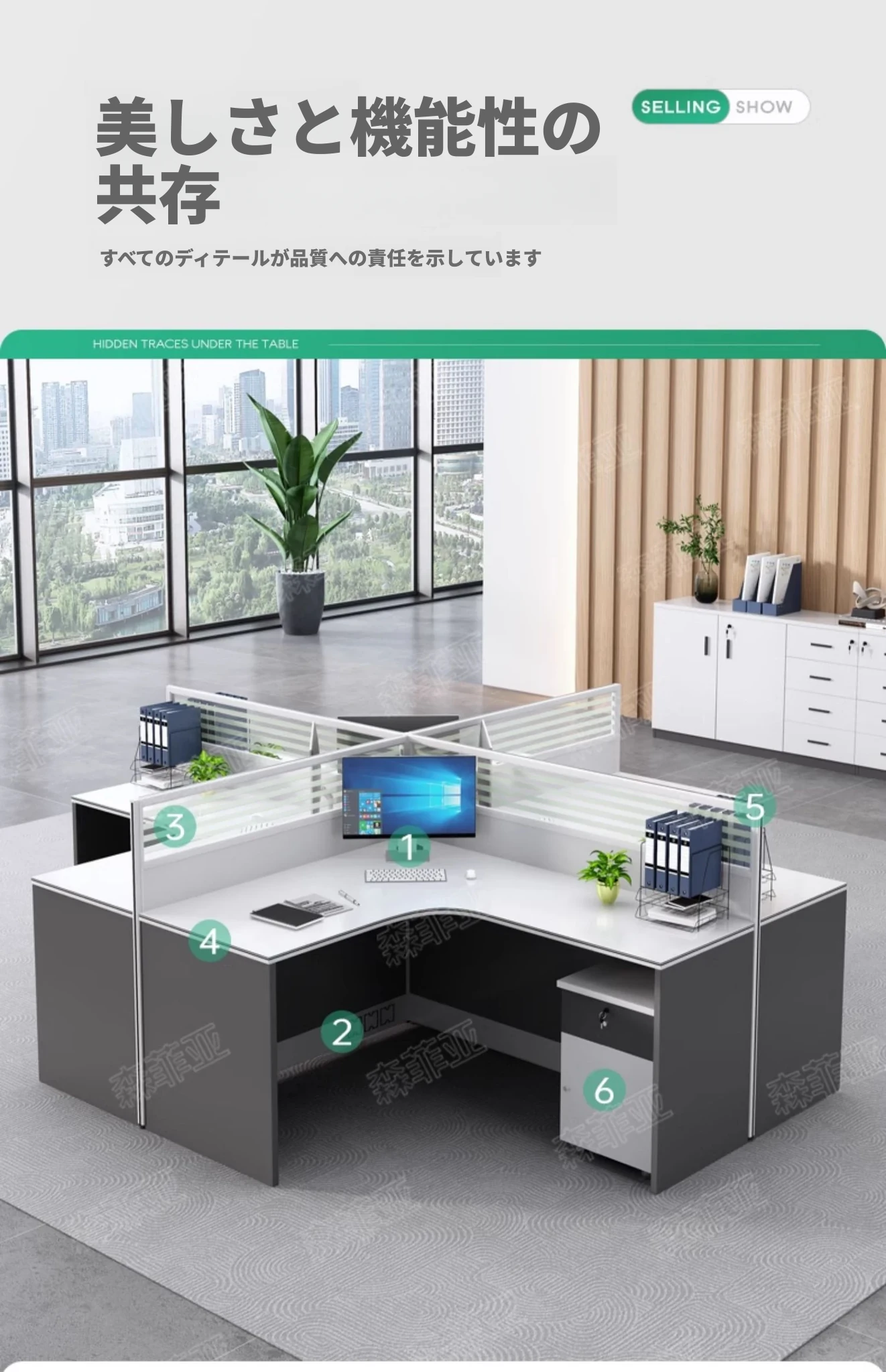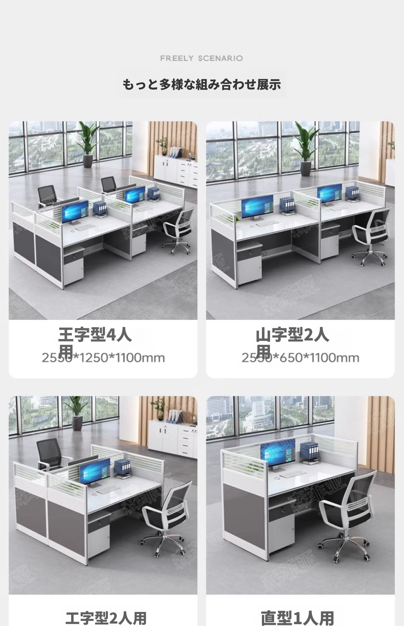 佛山のシンプルなオフィスデスク - 4人用パーティション付きデスクと快適なチェアで、効率的な職場環境を実現!