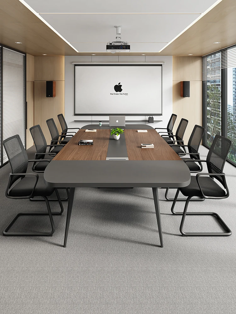【配送設置込】4.8*1.5メートル会議テーブル(ウォールナット+アイアングレー)+18脚の椅子