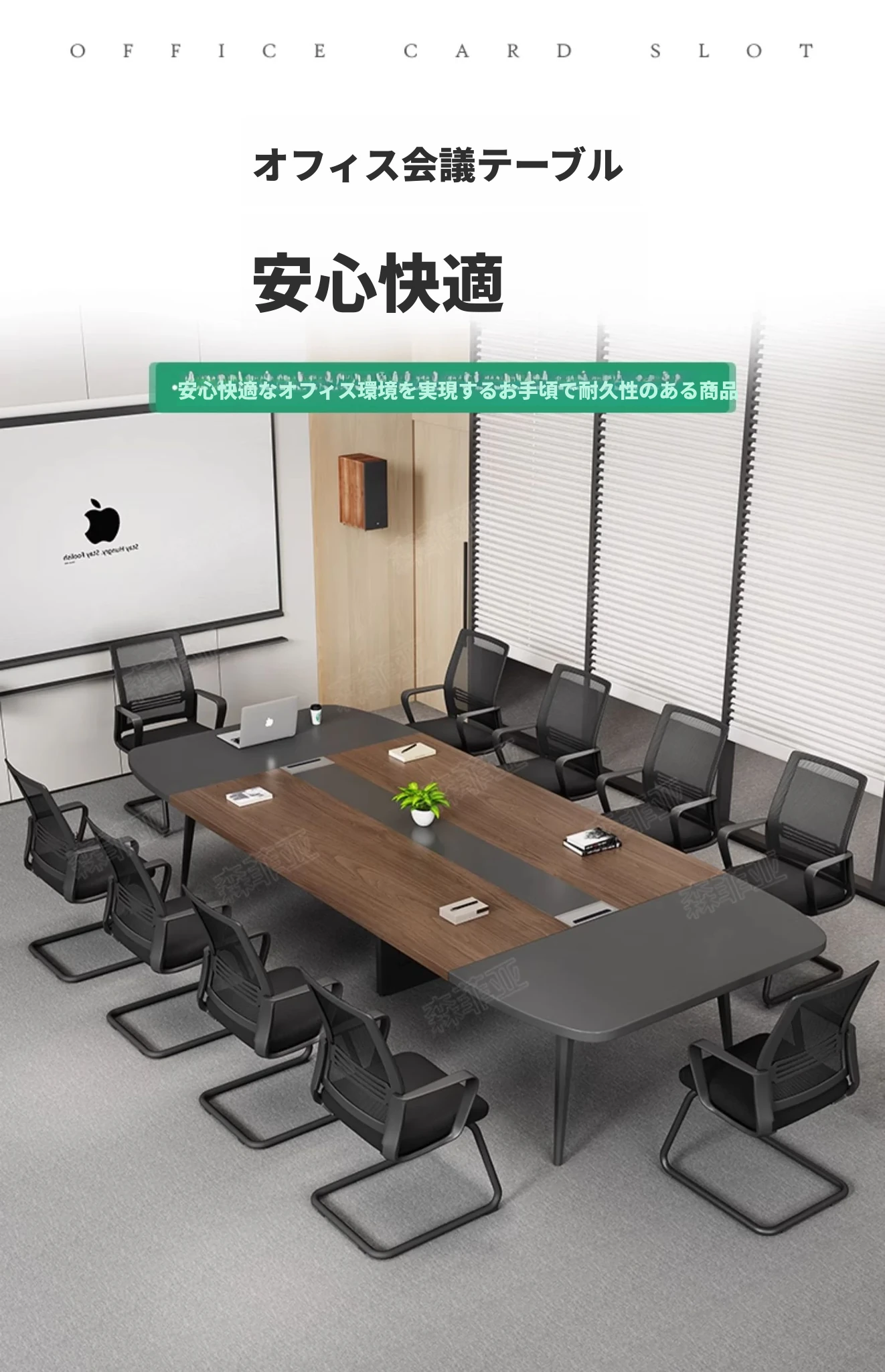 【配送設置込】2.4*1.2メートル会議テーブル+8脚の椅子