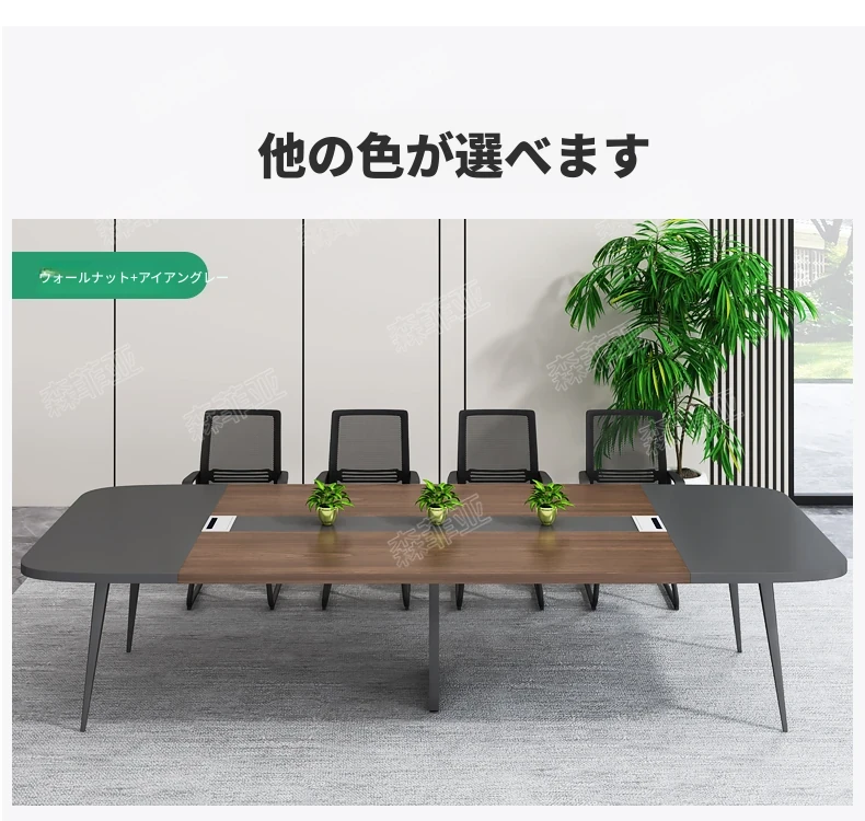 【配送設置込】4.2*1.38メートル会議テーブル(ウォールナット+アイアングレー)