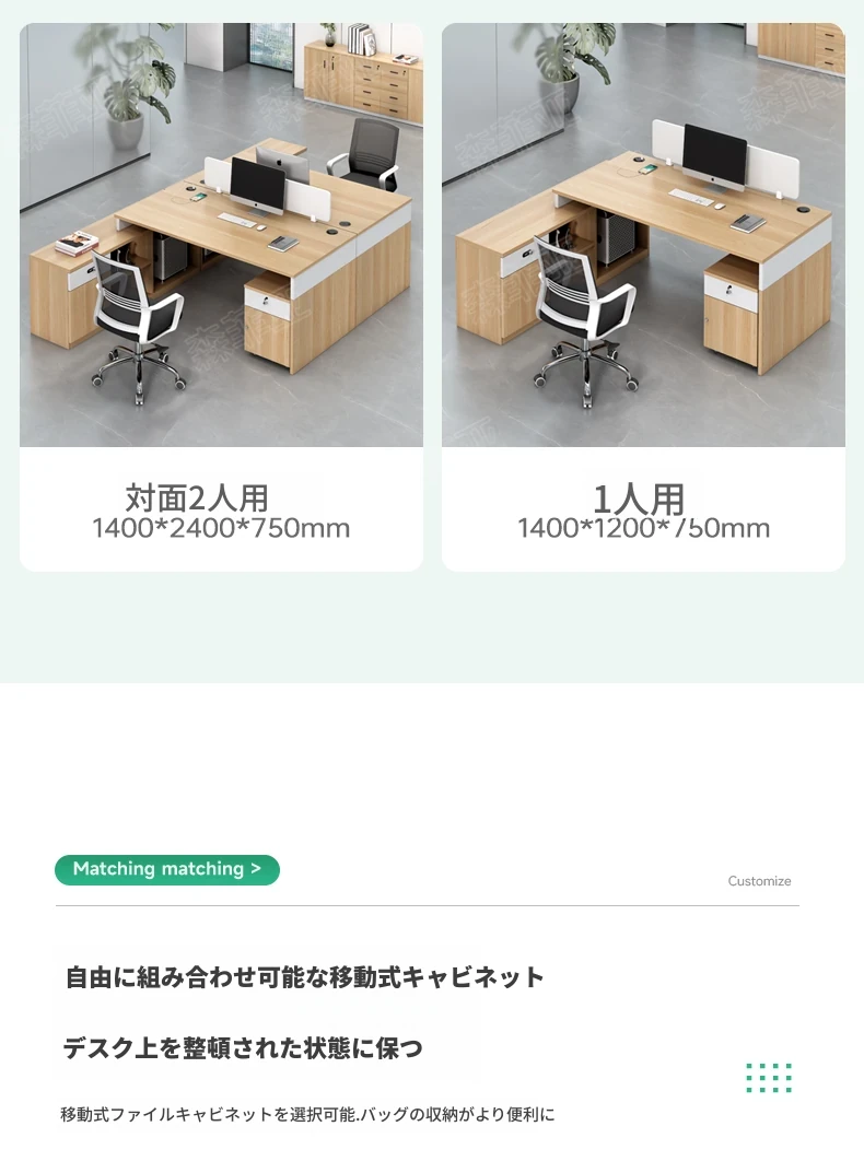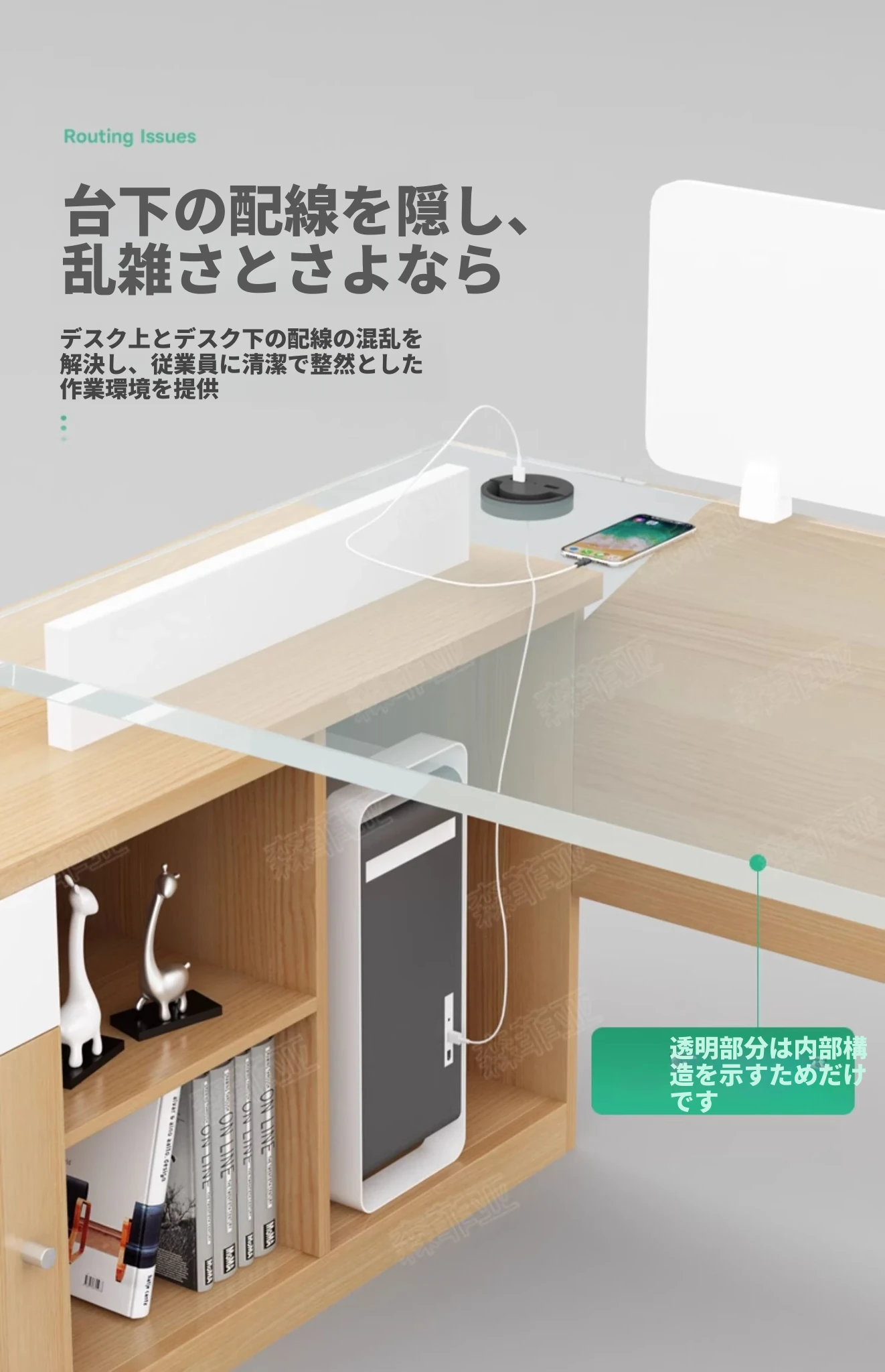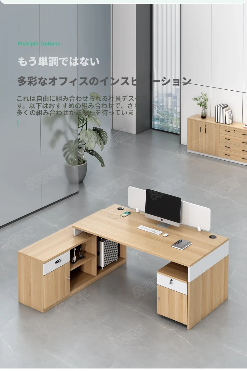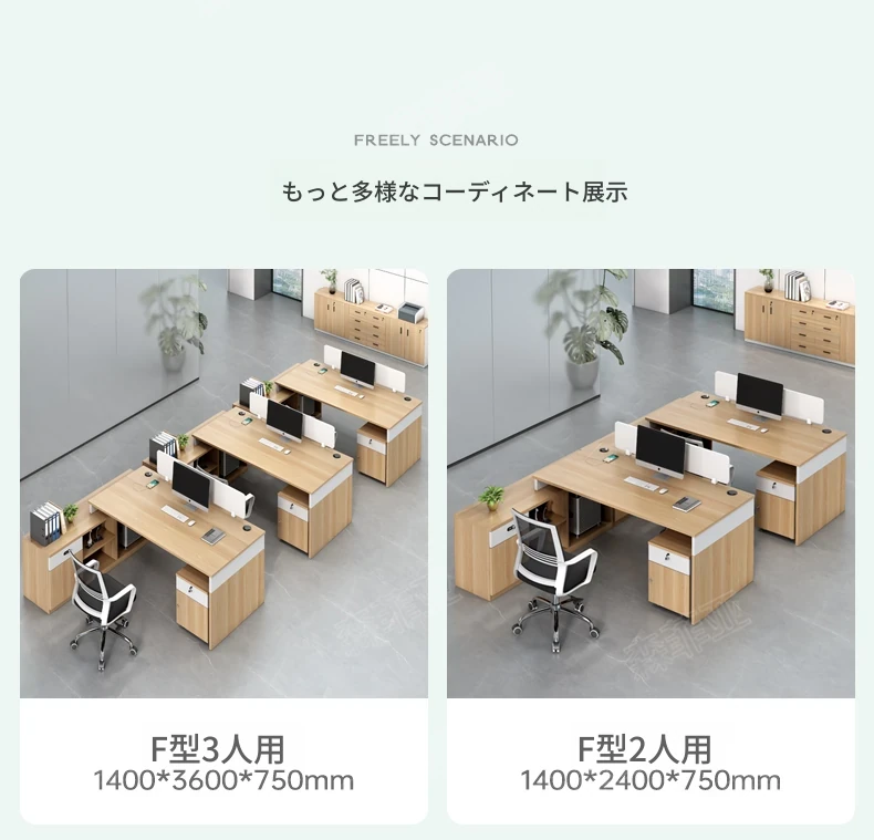 シンプルで機能的なオフィスデスクセット!4人用の社員デスクとチェアのコンビネーション。快適な作業空間を提供し、生産性を向上させる理想的なオフィス環境を実現します。