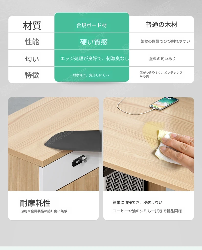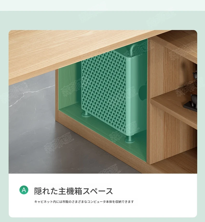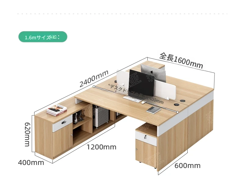 1.4メートル 7字型シングル席(サイドキャビネット含む)+椅子 【無料配送・設置】
