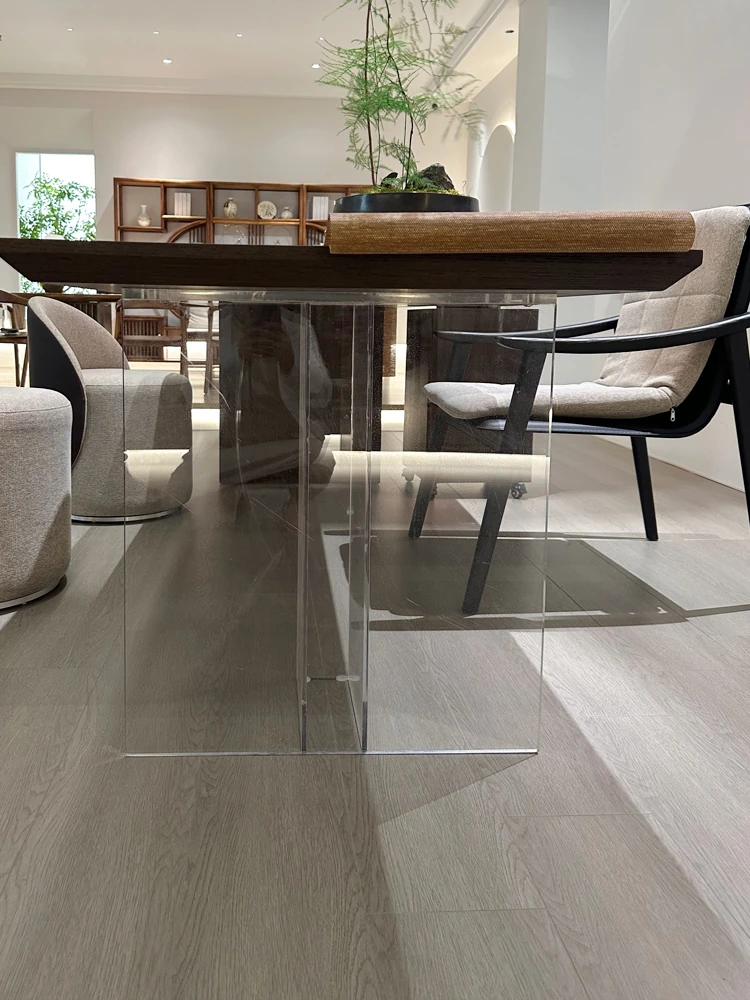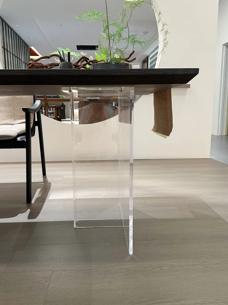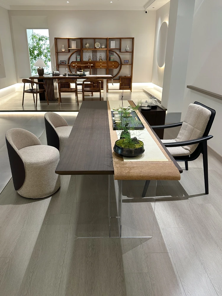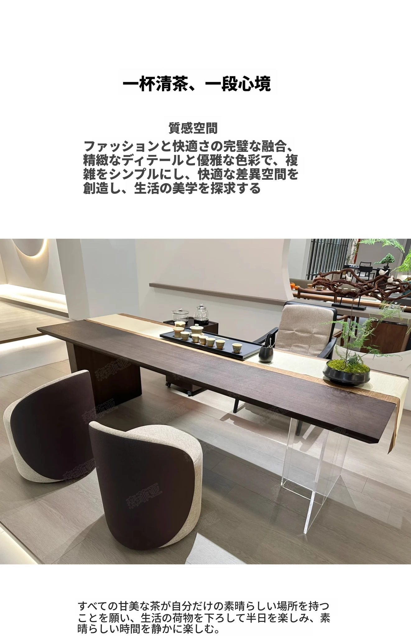 現代的な一体型茶台セット - 功夫茶を楽しむためのスタイリッシュなデザイン!家庭やオフィスにぴったりな新中式アクリル脚の茶卓と椅子のコンビネーション。リラックスしたひとときを演出します!