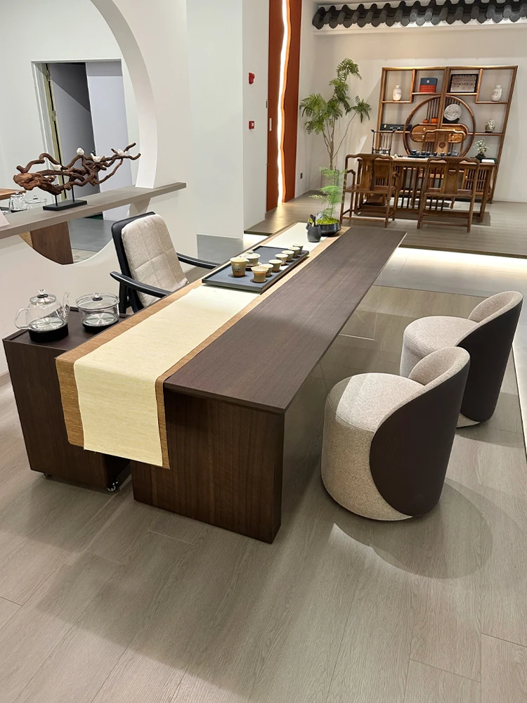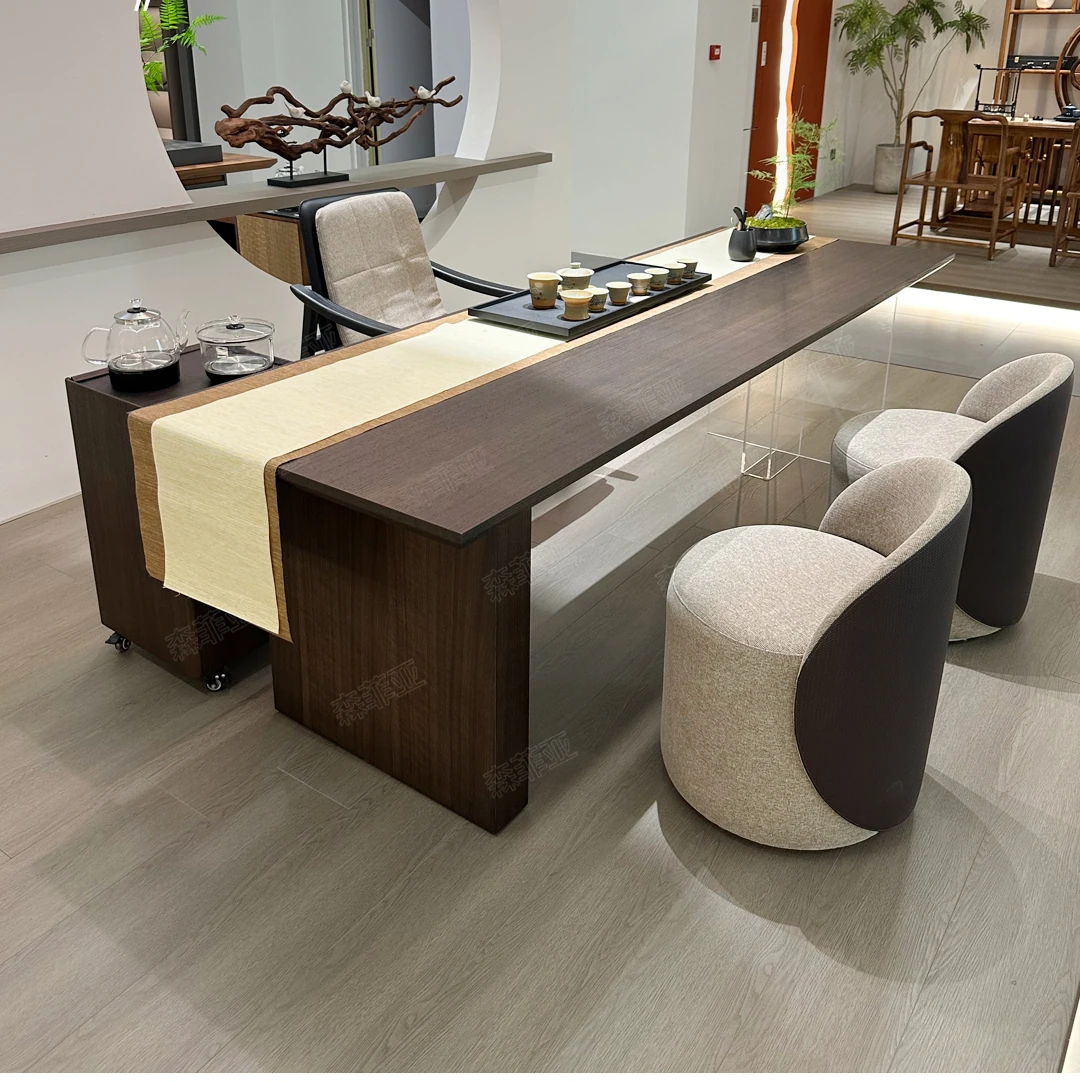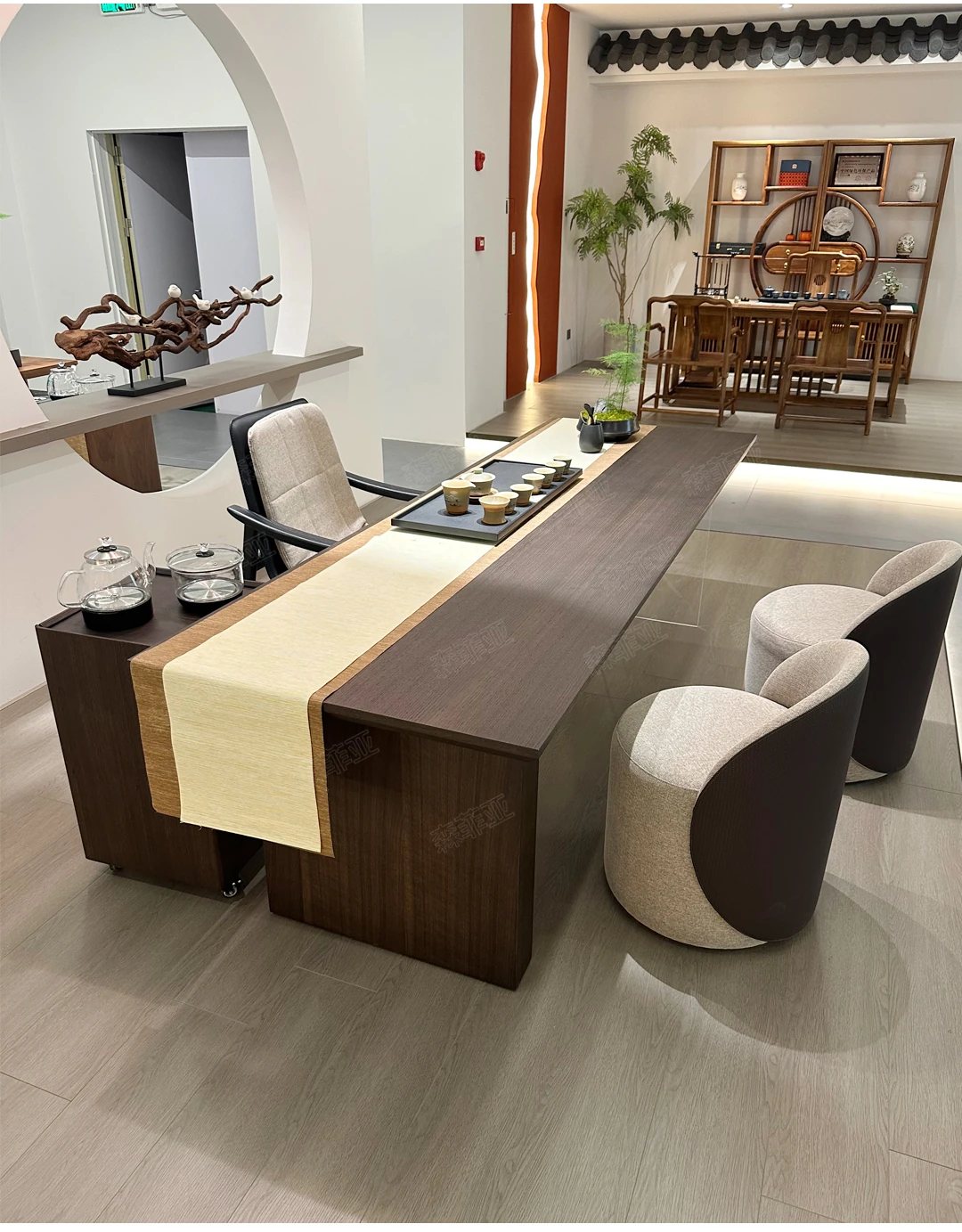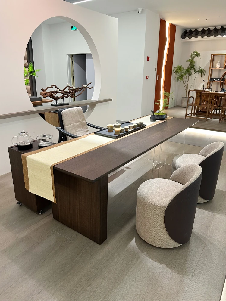 現代的な一体型茶台セット - 功夫茶を楽しむためのスタイリッシュなデザイン!家庭やオフィスにぴったりな新中式アクリル脚の茶卓と椅子のコンビネーション。リラックスしたひとときを演出します!