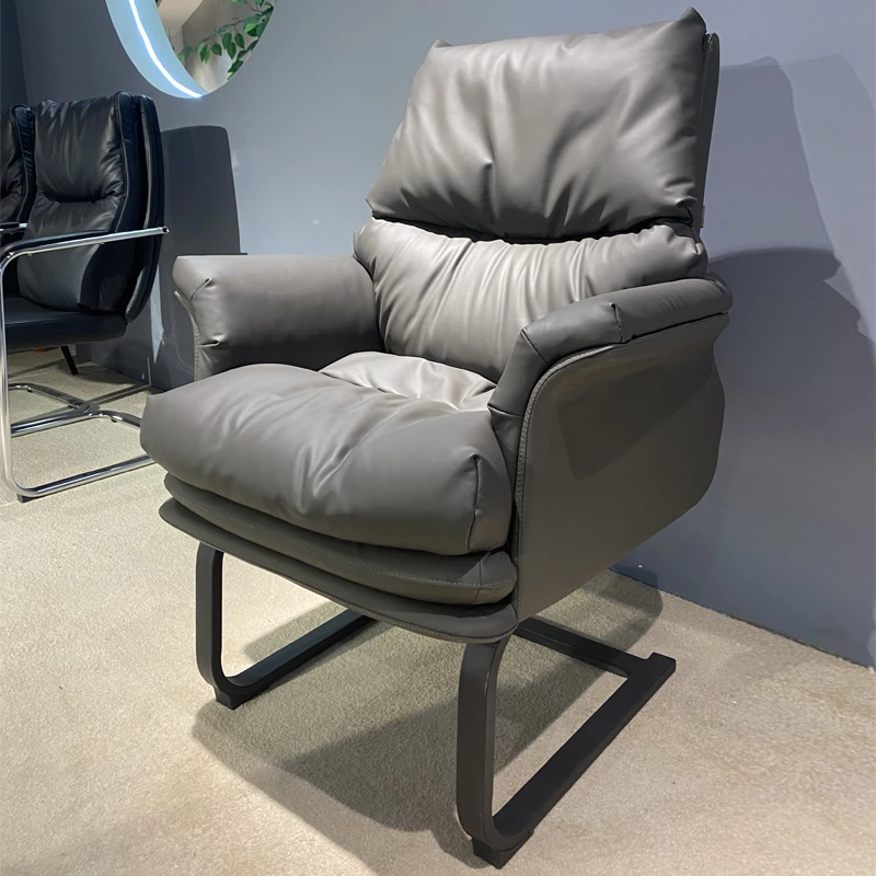 シンプルでモダンなアーチ型オフィスチェア|快適な長時間座り心地|高品質レザー製|会議用・オフィス用|スタイリッシュなデザインで社員の生産性向上!