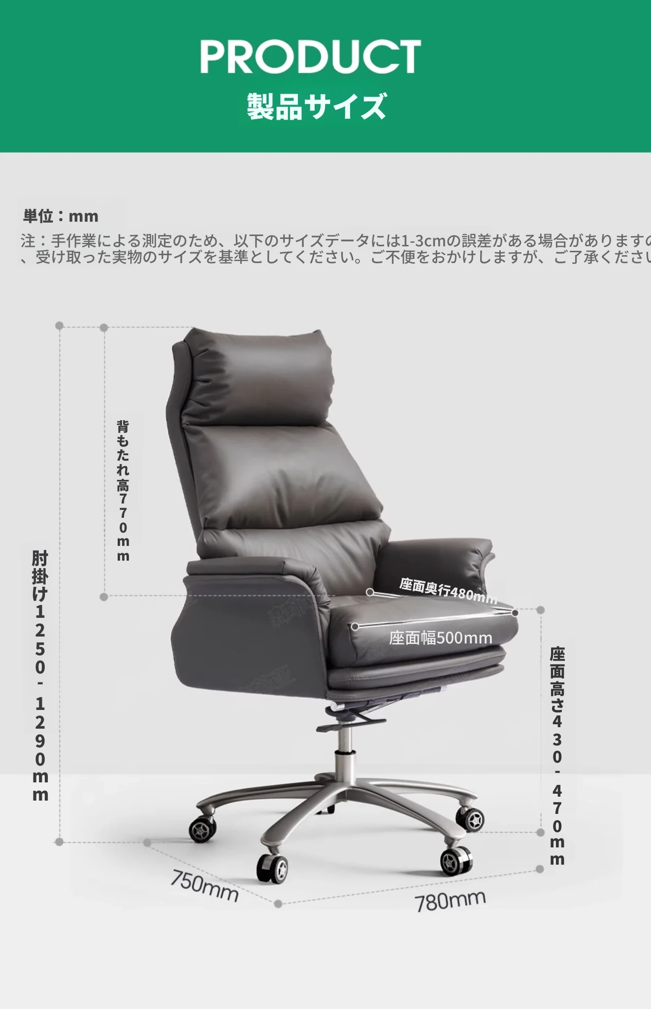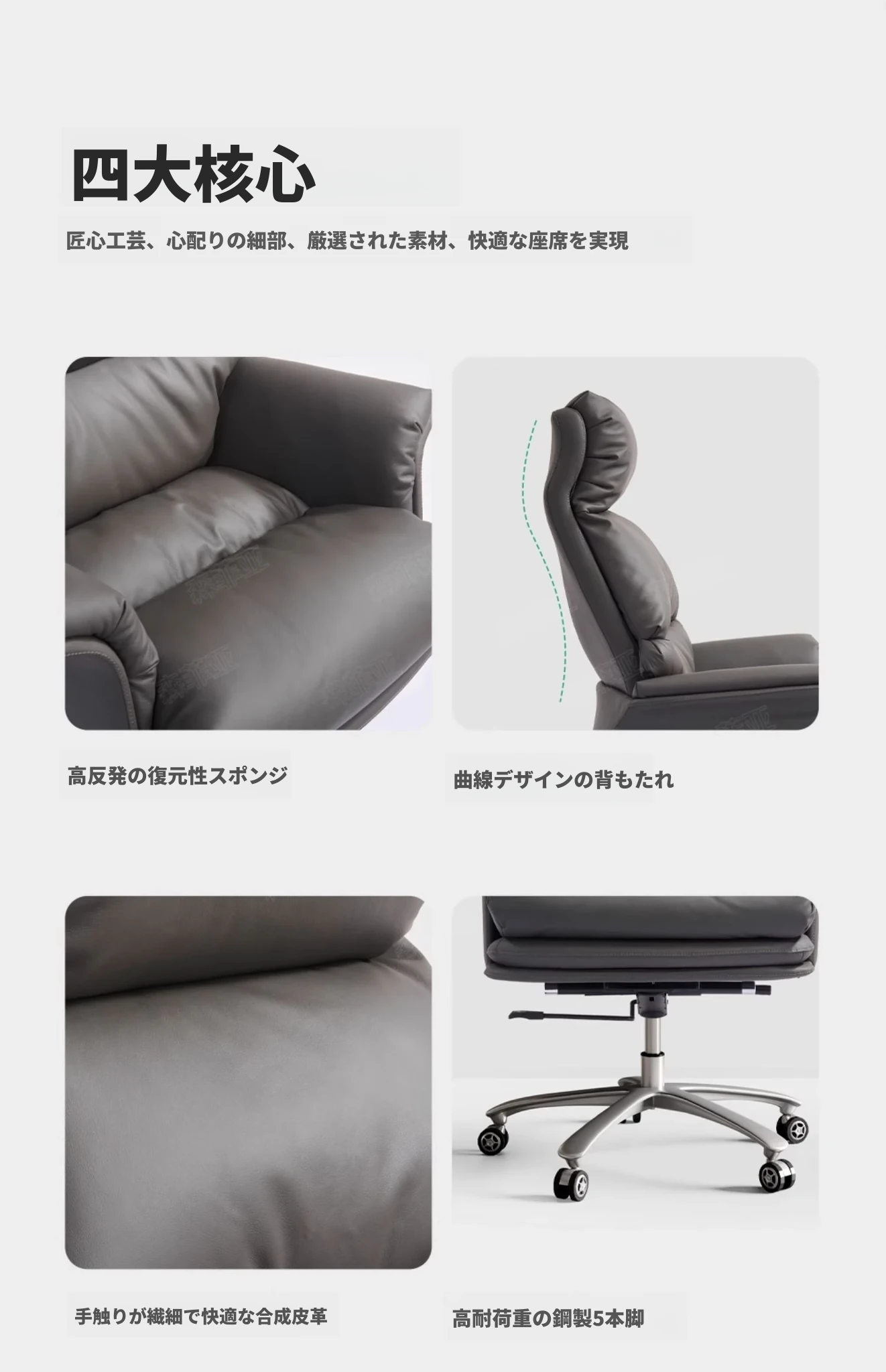 エルゴノミクスデザインの高級オフィスチェア|背もたれ高めで快適な座り心地|自宅やオフィスに最適なビジネス向けチェア|社長やマネージャーにぴったりの高級レザー製チェア