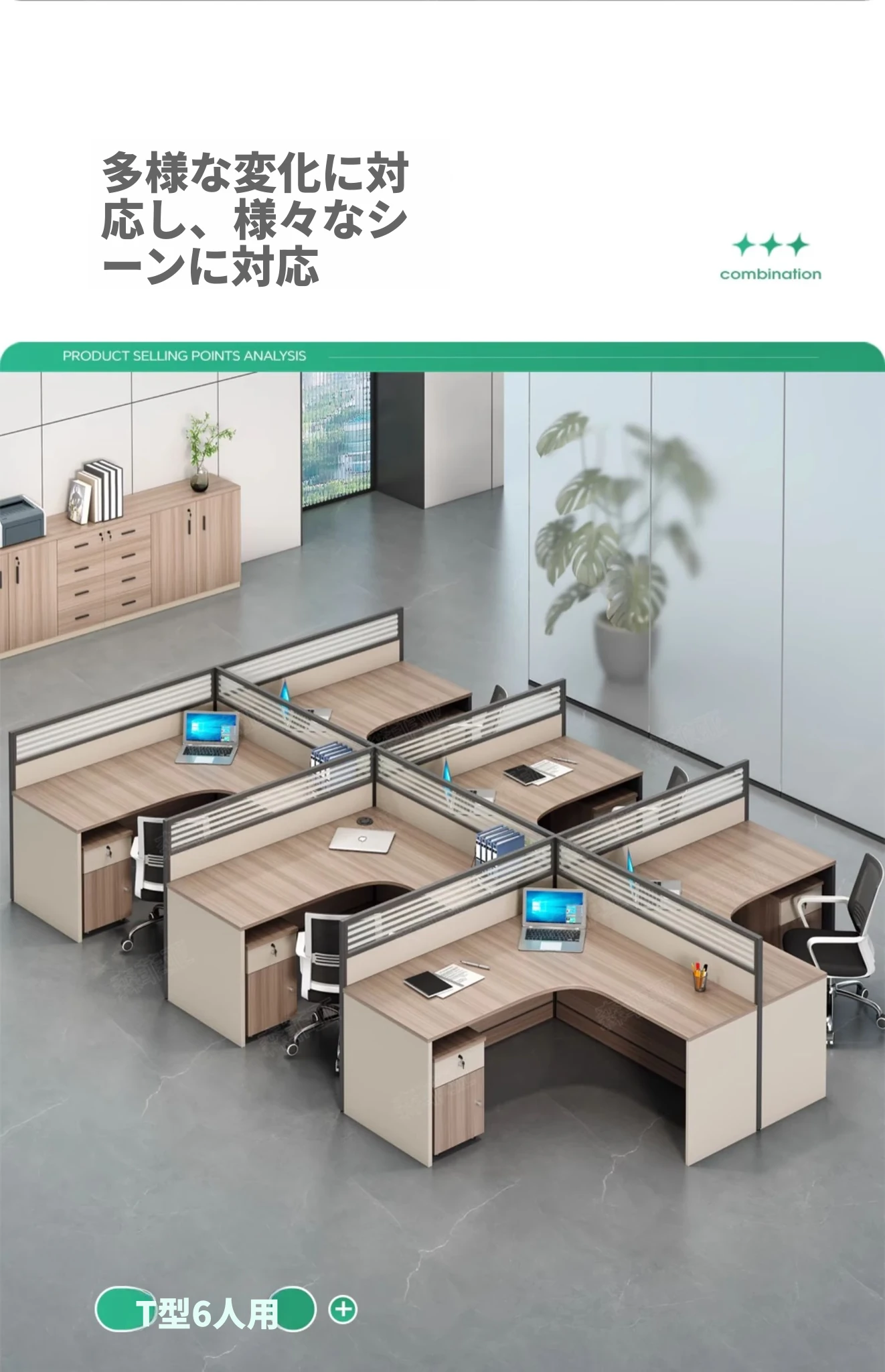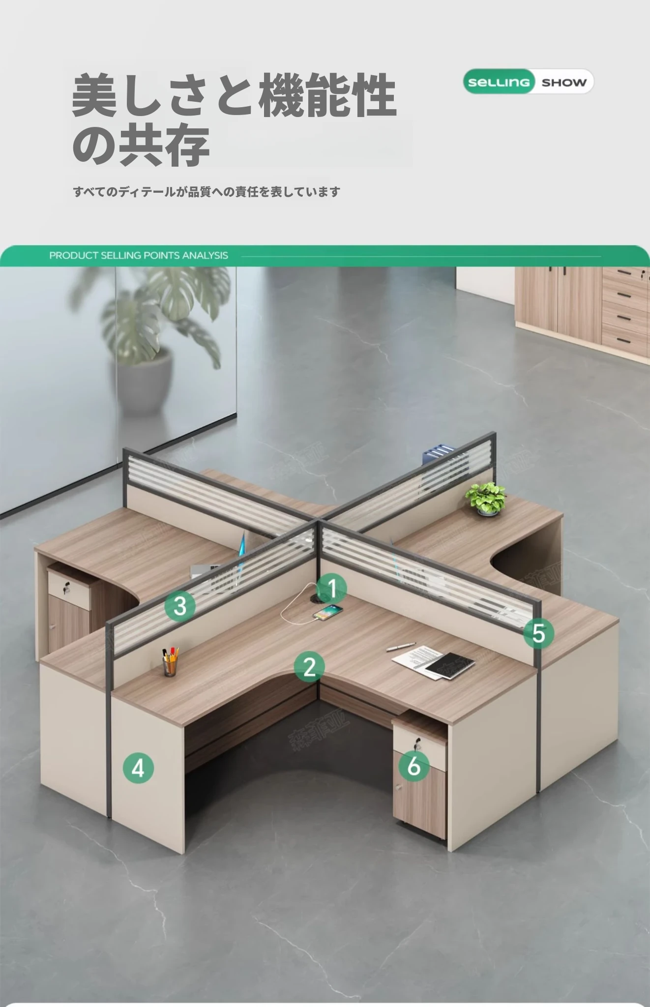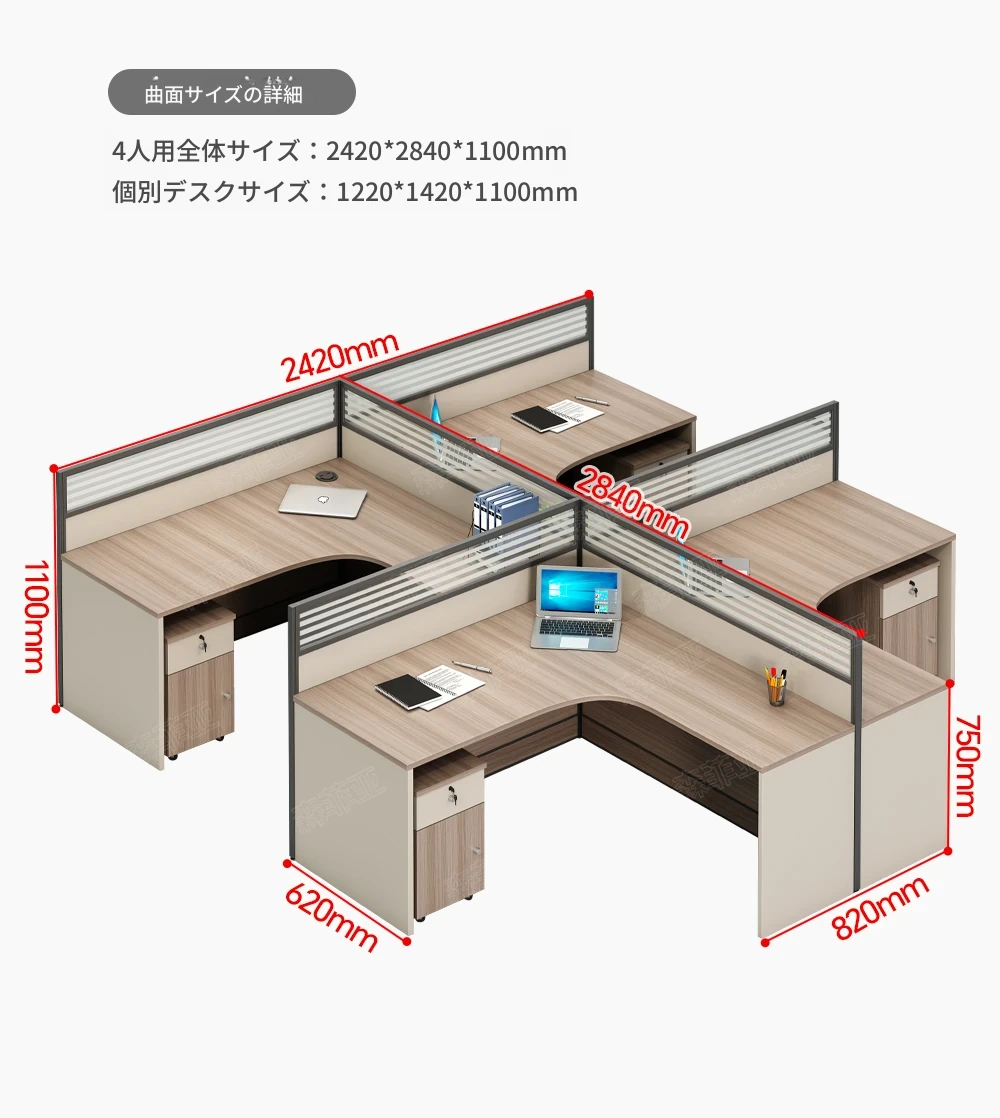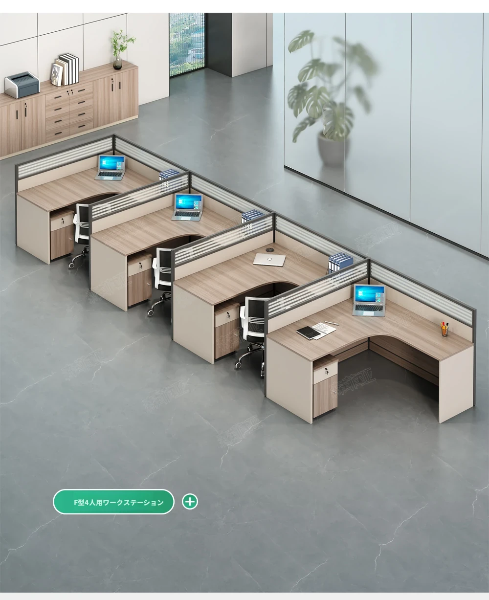 シンプルでモダンな4人用オフィスデスクセット|経理室に最適なパーティション付きデスク|快適な作業空間を実現!