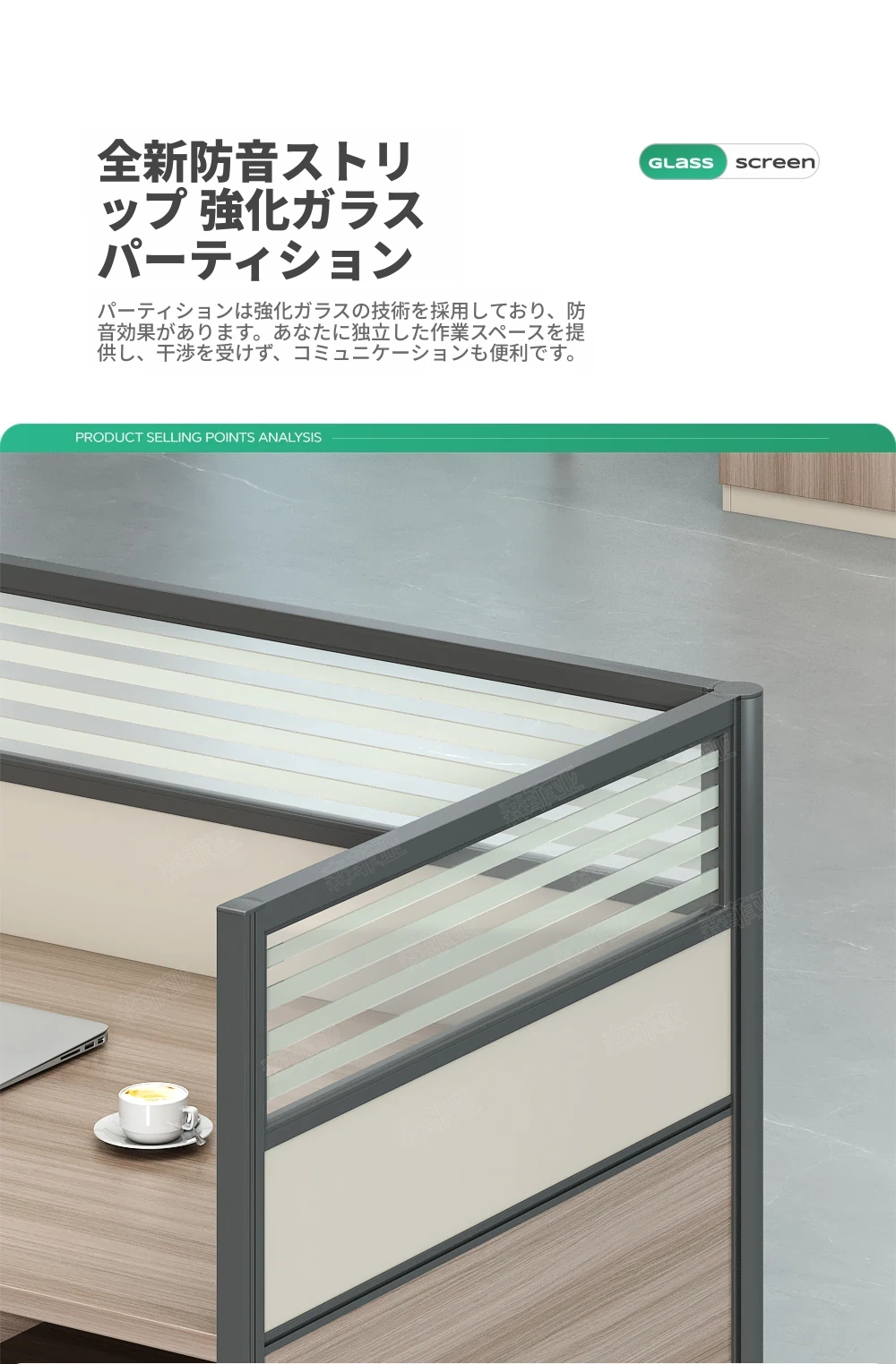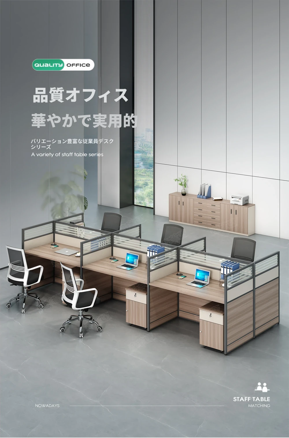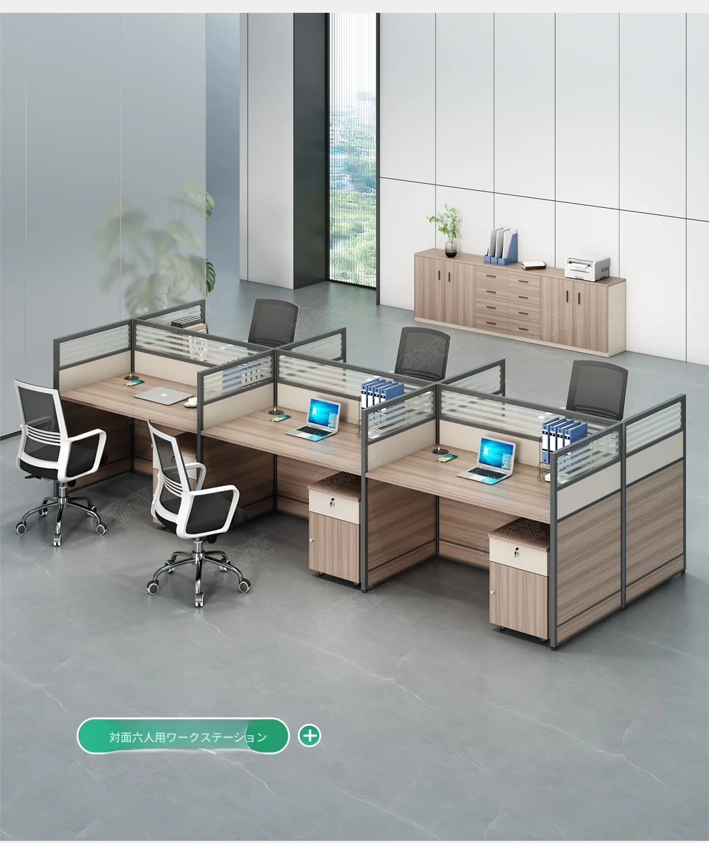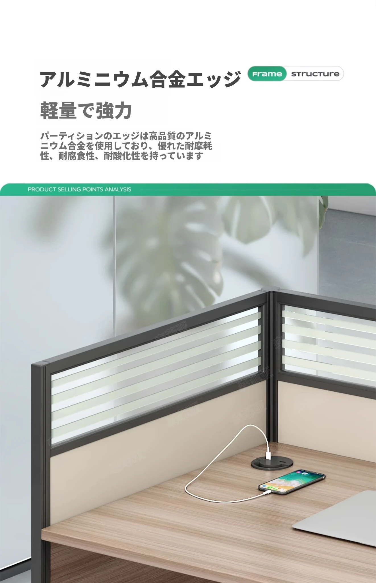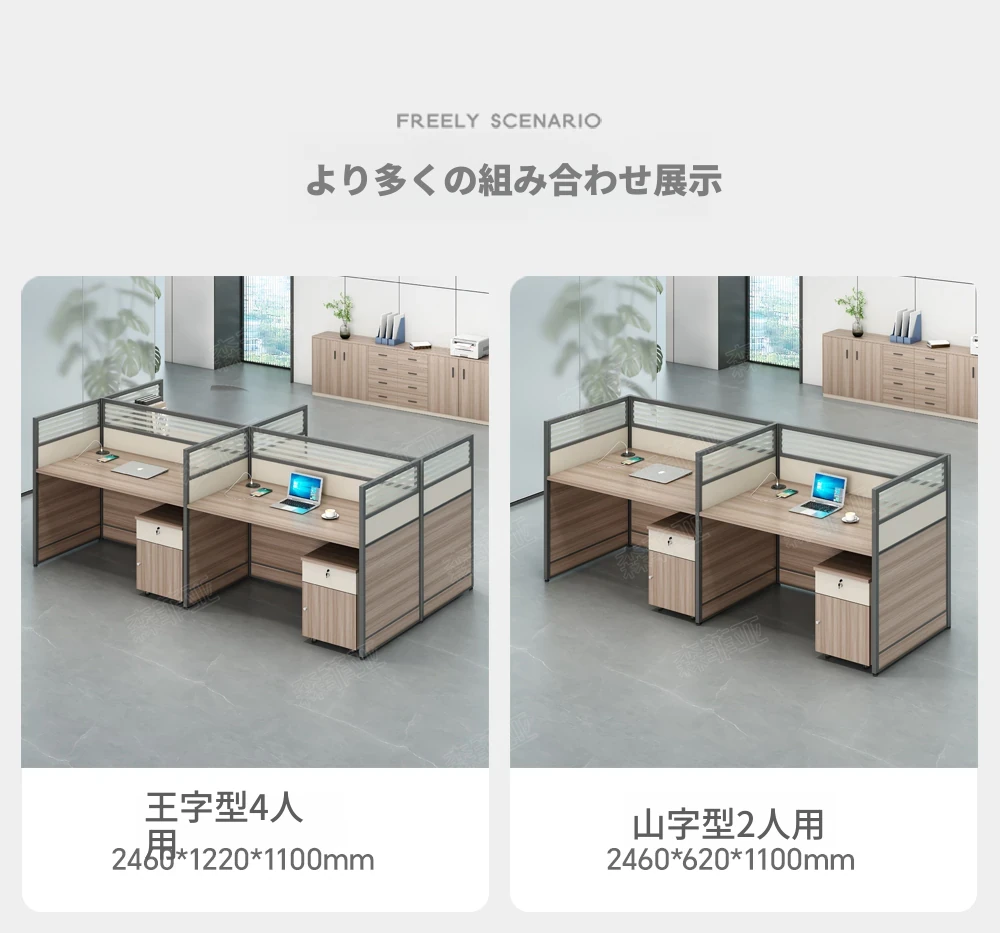 シンプルでモダンな4人用オフィスデスクセット|経理室に最適なパーティション付きデスク|快適な作業空間を実現!