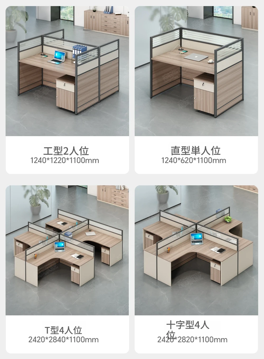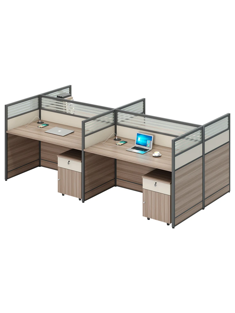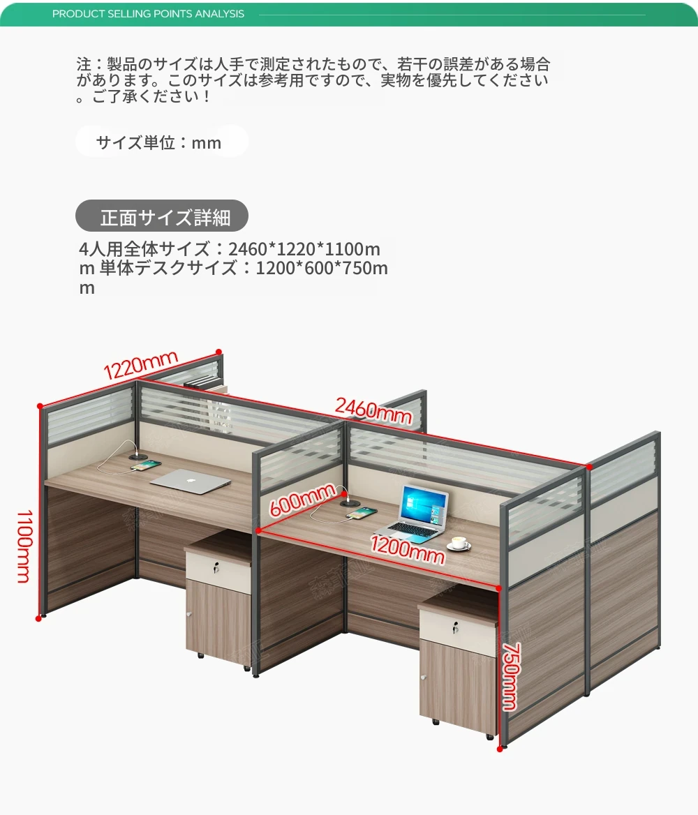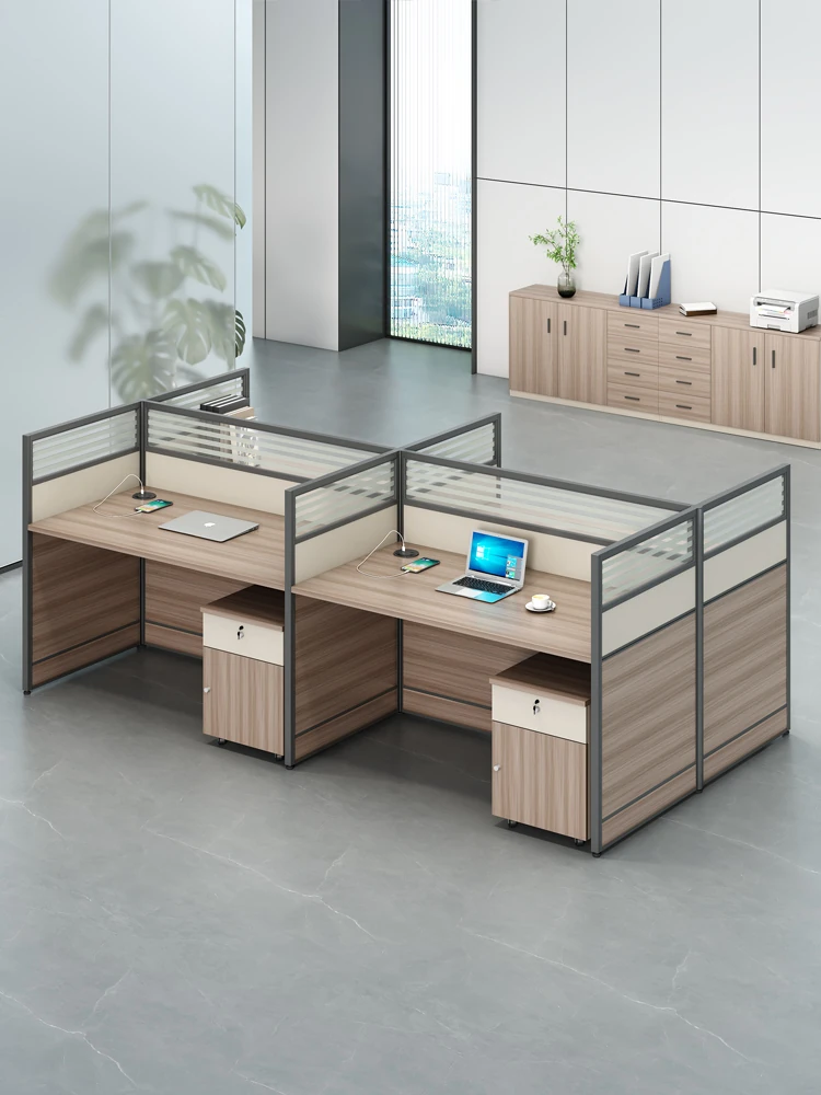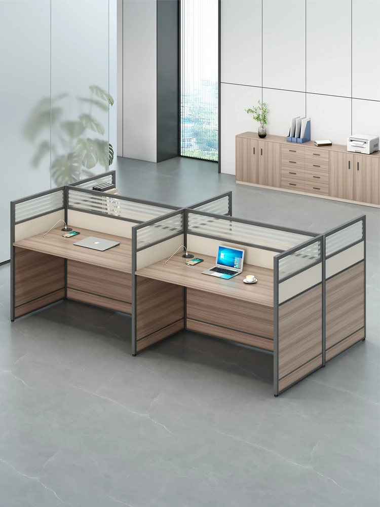 シンプルでモダンな4人用オフィスデスクセット|経理室に最適なパーティション付きデスク|快適な作業空間を実現!