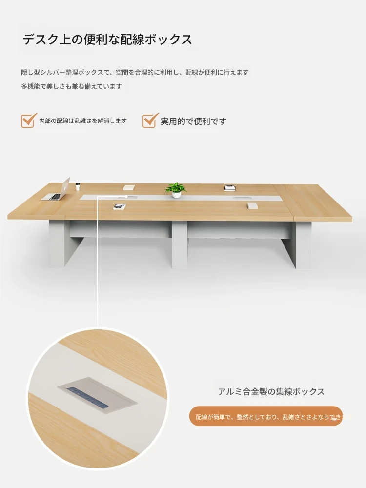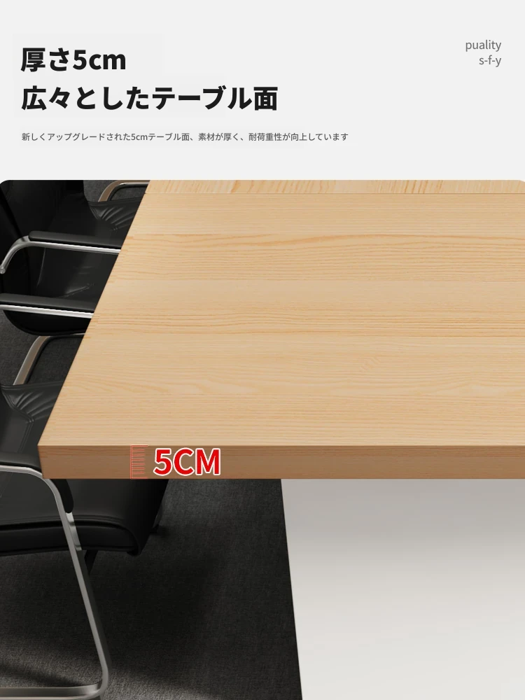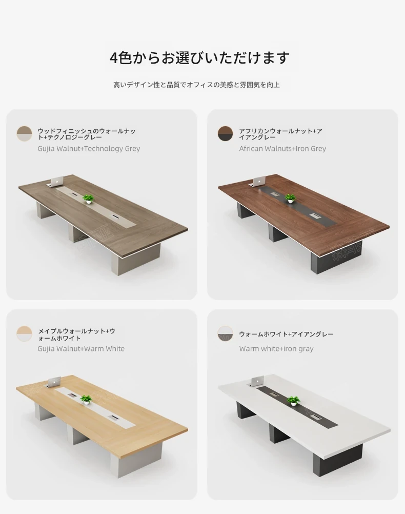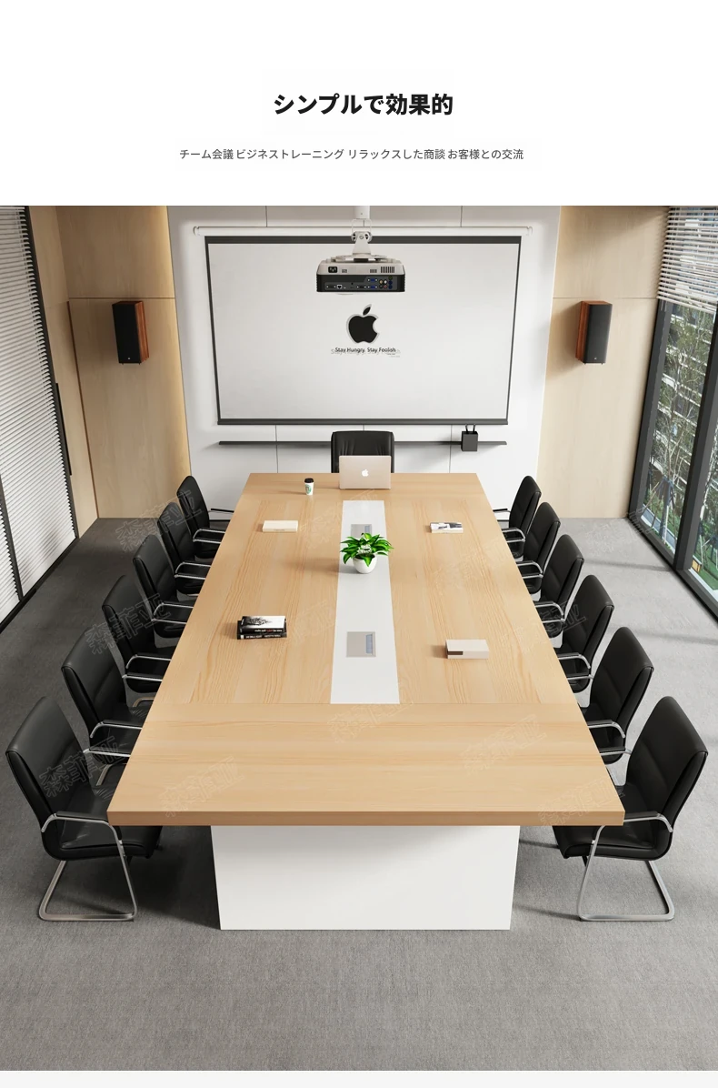 シンプルでモダンな会議テーブルセット - 大型会議室にぴったりの長テーブルと椅子の組み合わせ!作業効率を向上させるスタイリッシュなデザインのワークステーション。仕事も会議も快適に!