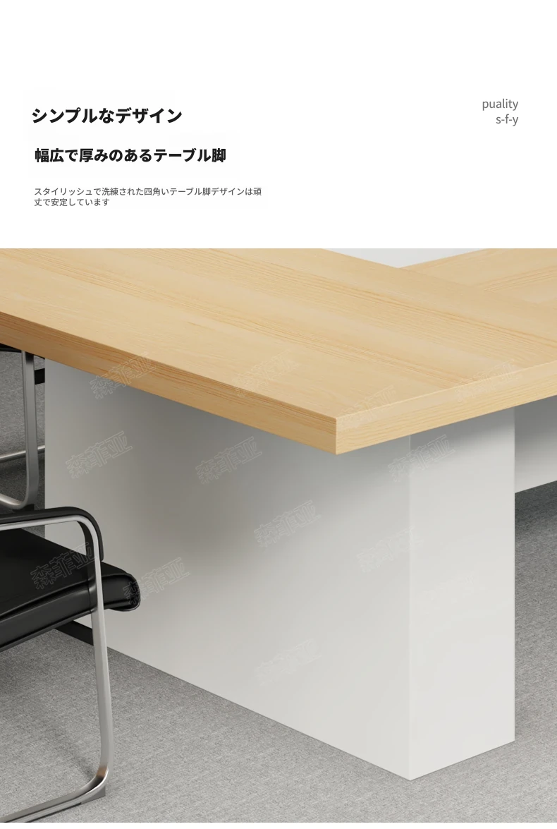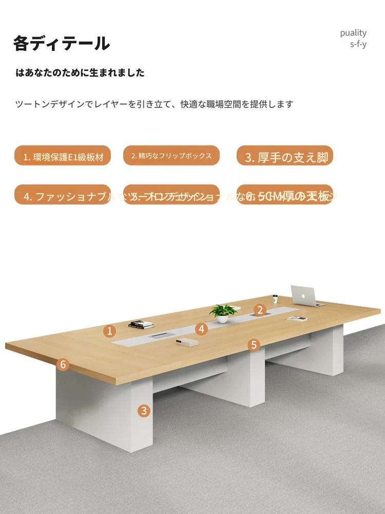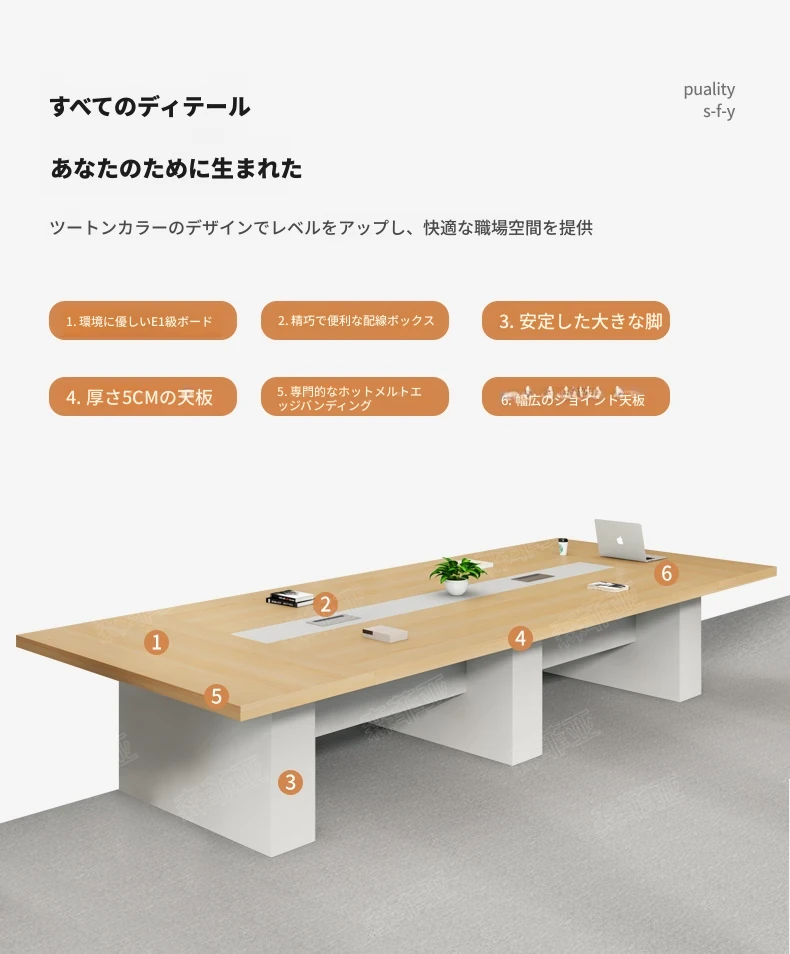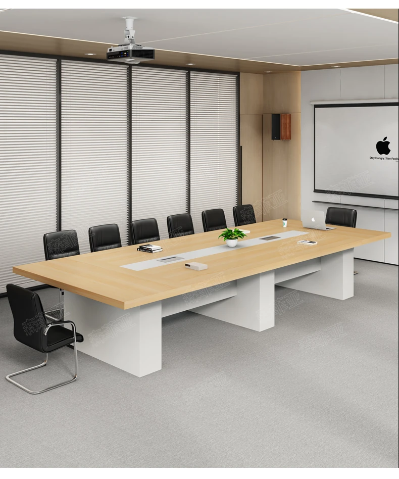 シンプルでモダンな会議テーブルセット - 大型会議室にぴったりの長テーブルと椅子の組み合わせ!作業効率を向上させるスタイリッシュなデザインのワークステーション。仕事も会議も快適に!
