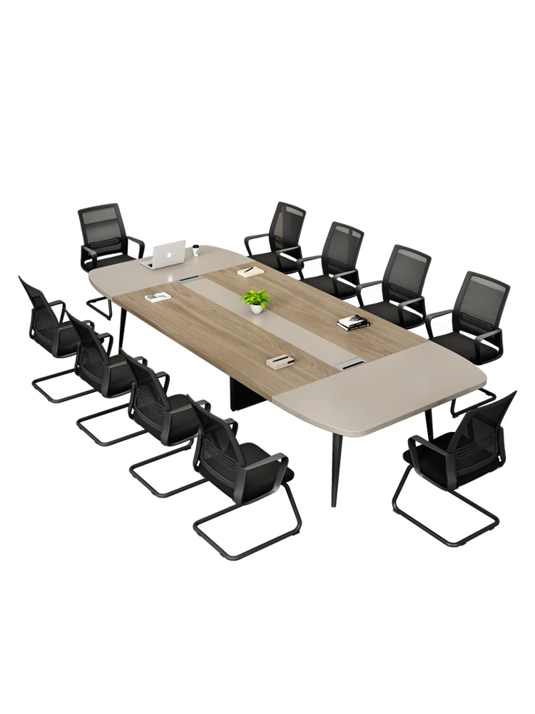 2.4*1.2メートル会議テーブル+8脚の椅子 古伽胡桃+テクノロジーグレー 【無料配送】