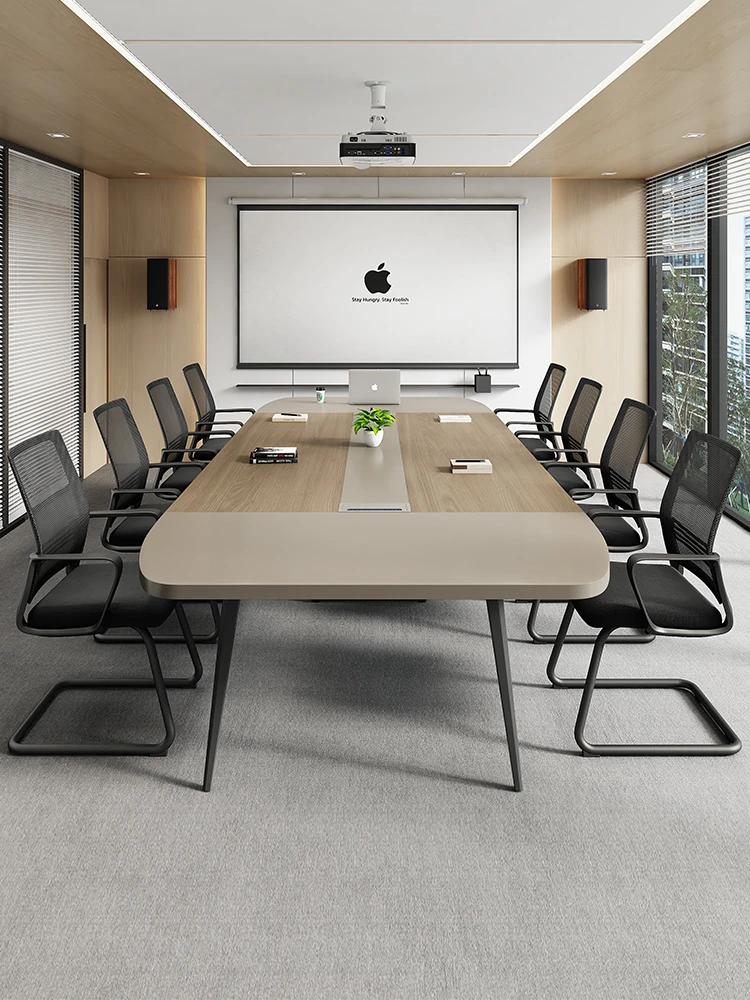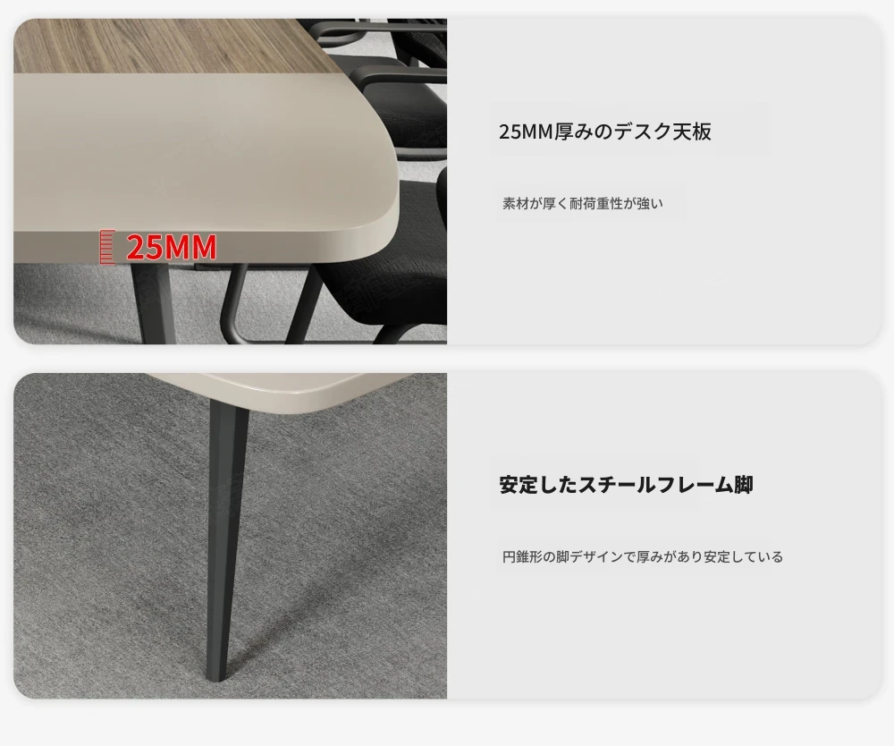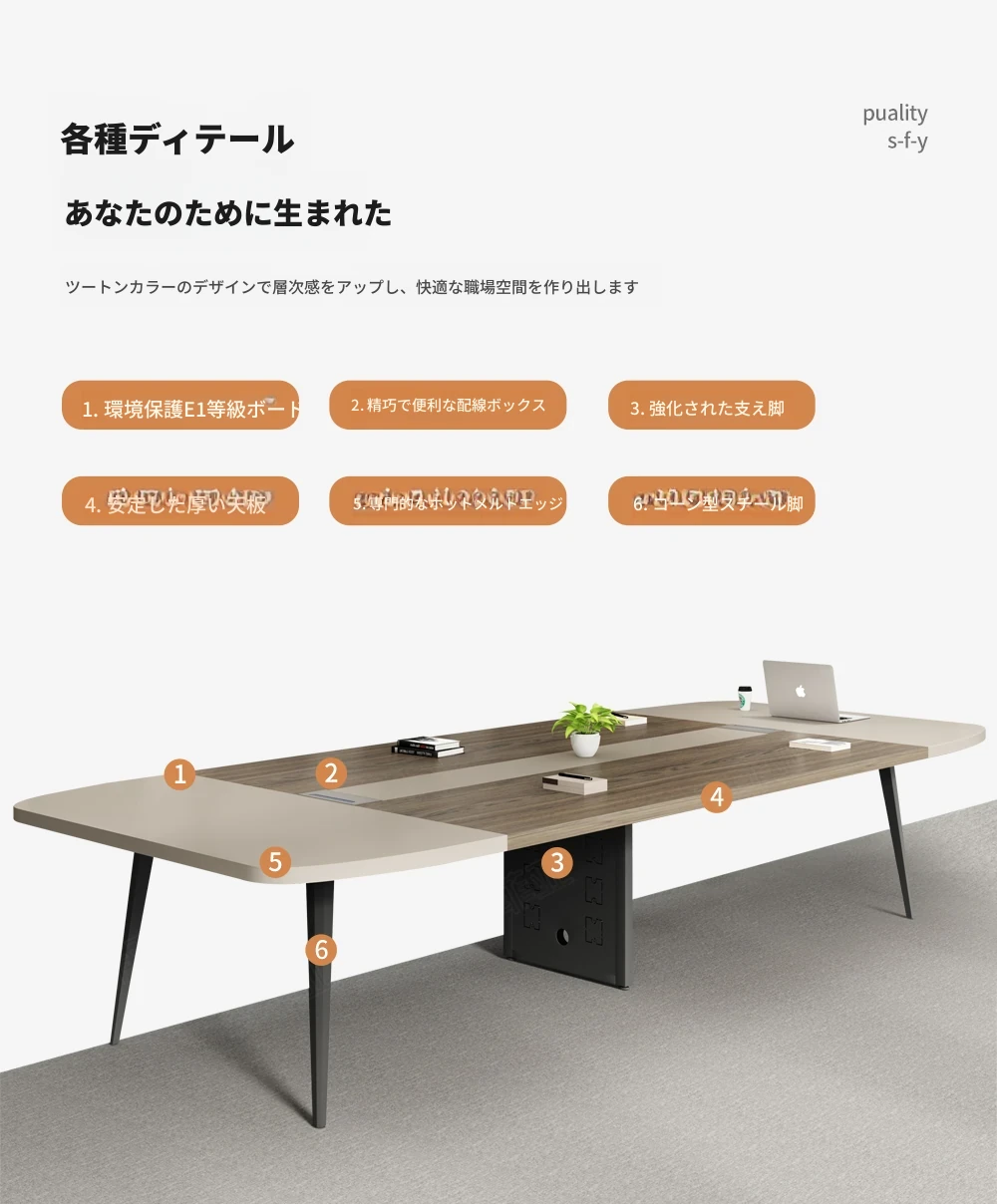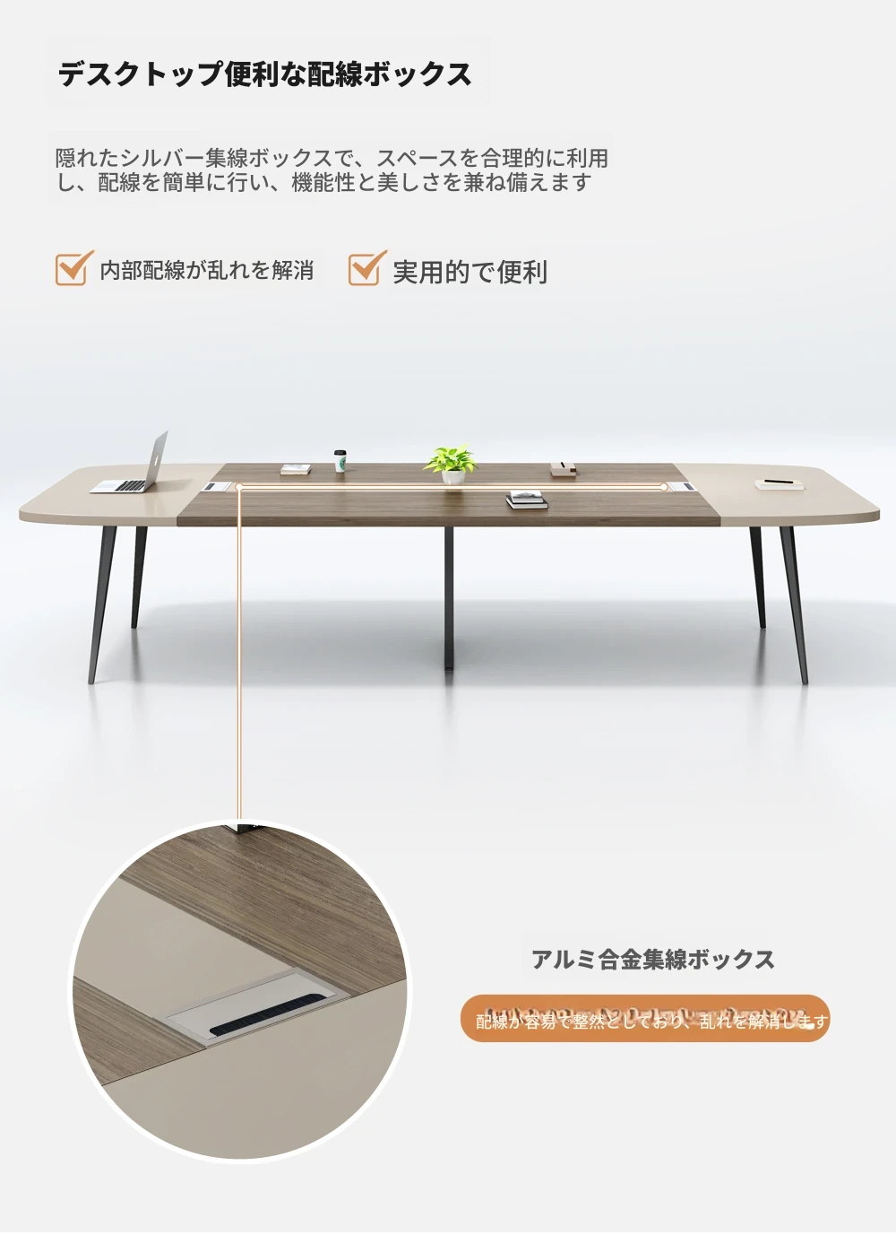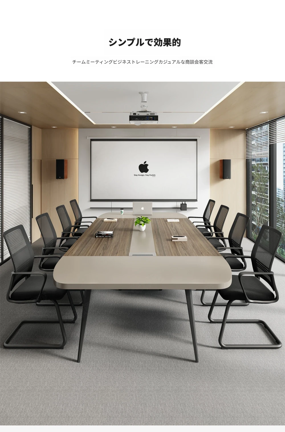 会議テーブル オフィスデスク スリムタイプ ミニマルモダンデザインのオフィス家具 ワークテーブル トレーニング会議室用デスク&チェアセットで、効率的な作業空間を実現!