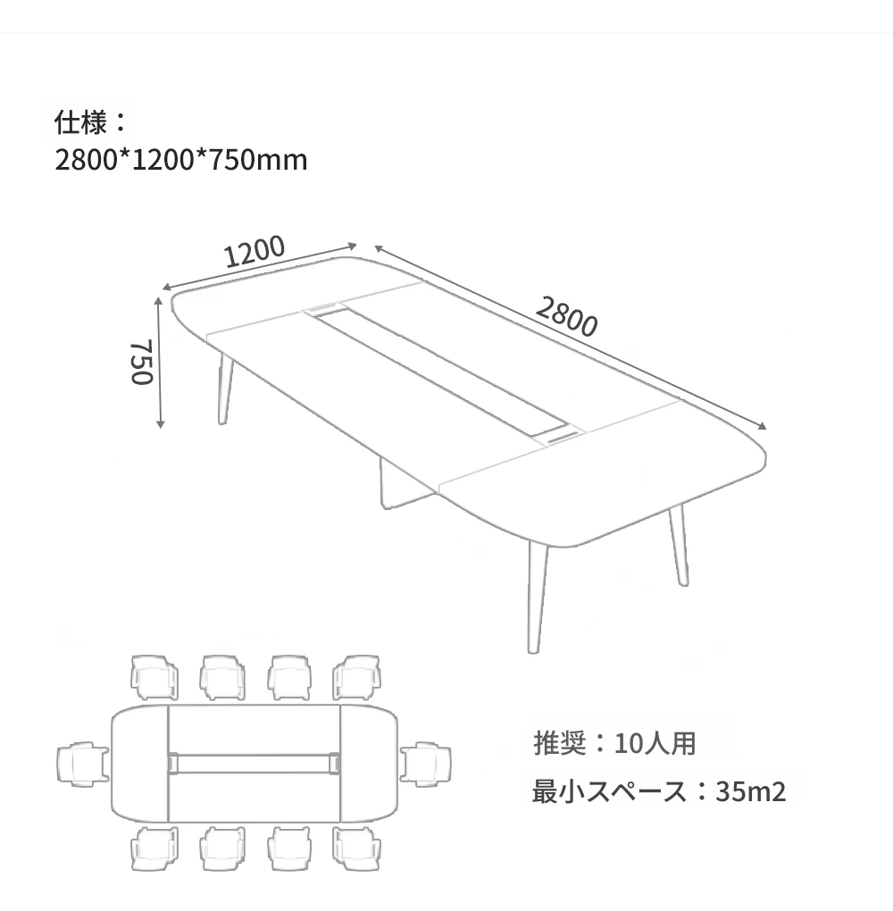 2.8*1.2メートル会議テーブル+10脚の椅子 古伽胡桃+テクノロジーグレー 【無料配送】