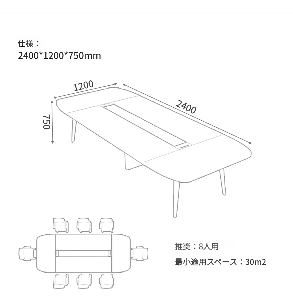 2.4*1.2メートル会議テーブル+8脚の椅子 木皮胡桃+テクノロジーグレー 【無料配送】