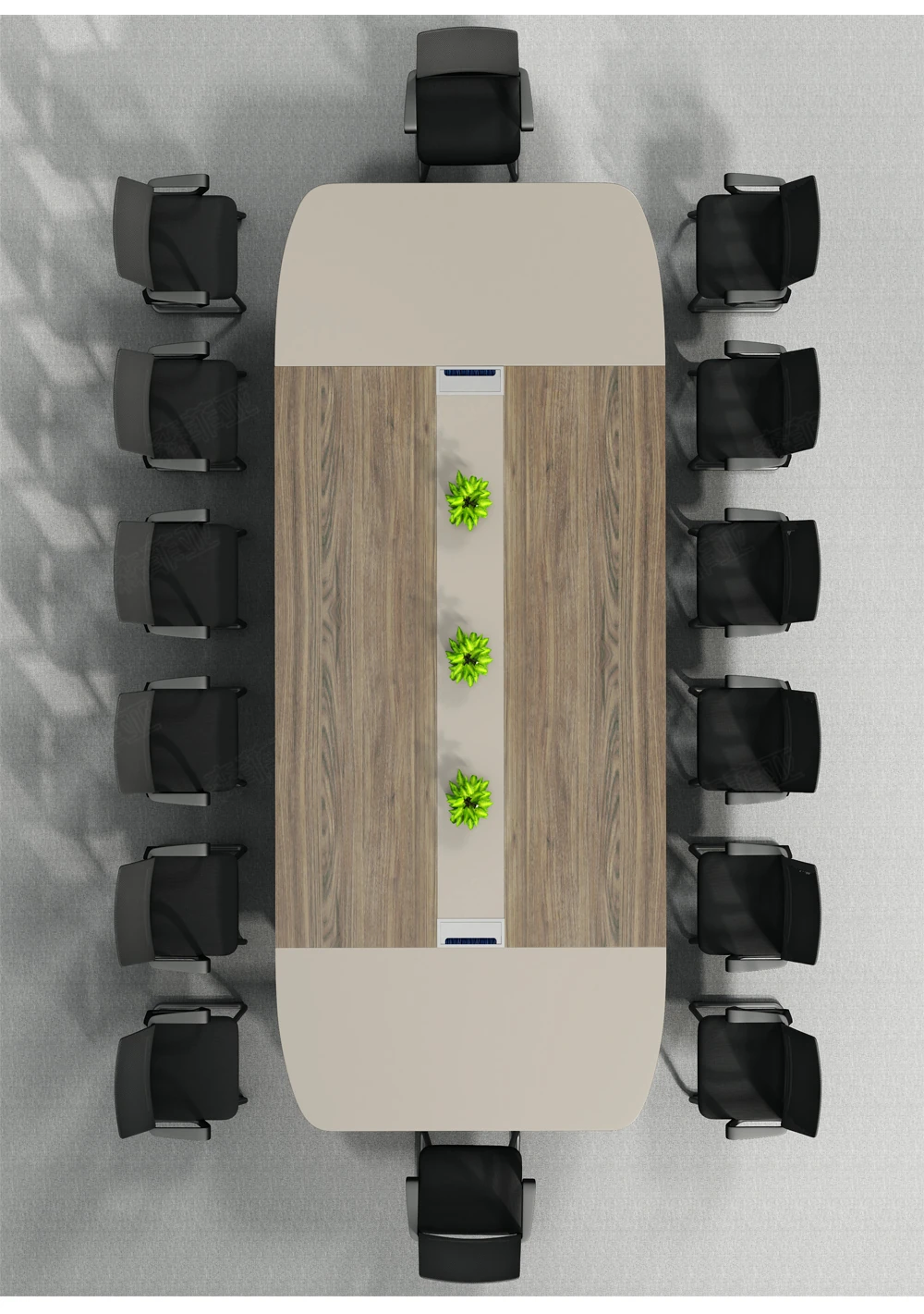 4.8*1.5メートル会議テーブル+18脚の椅子 木皮胡桃+テクノロジーグレー 【無料配送】