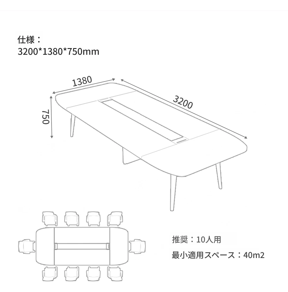 3.2*1.38メートル会議テーブル+10脚の椅子 古伽胡桃+テクノロジーグレー 【無料配送】