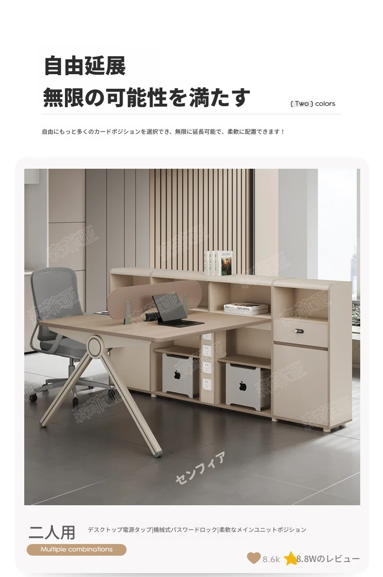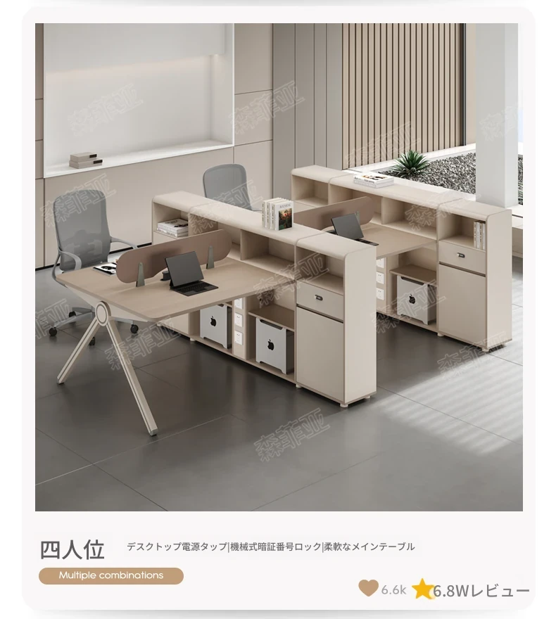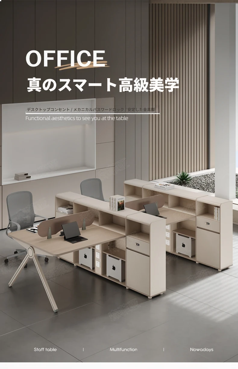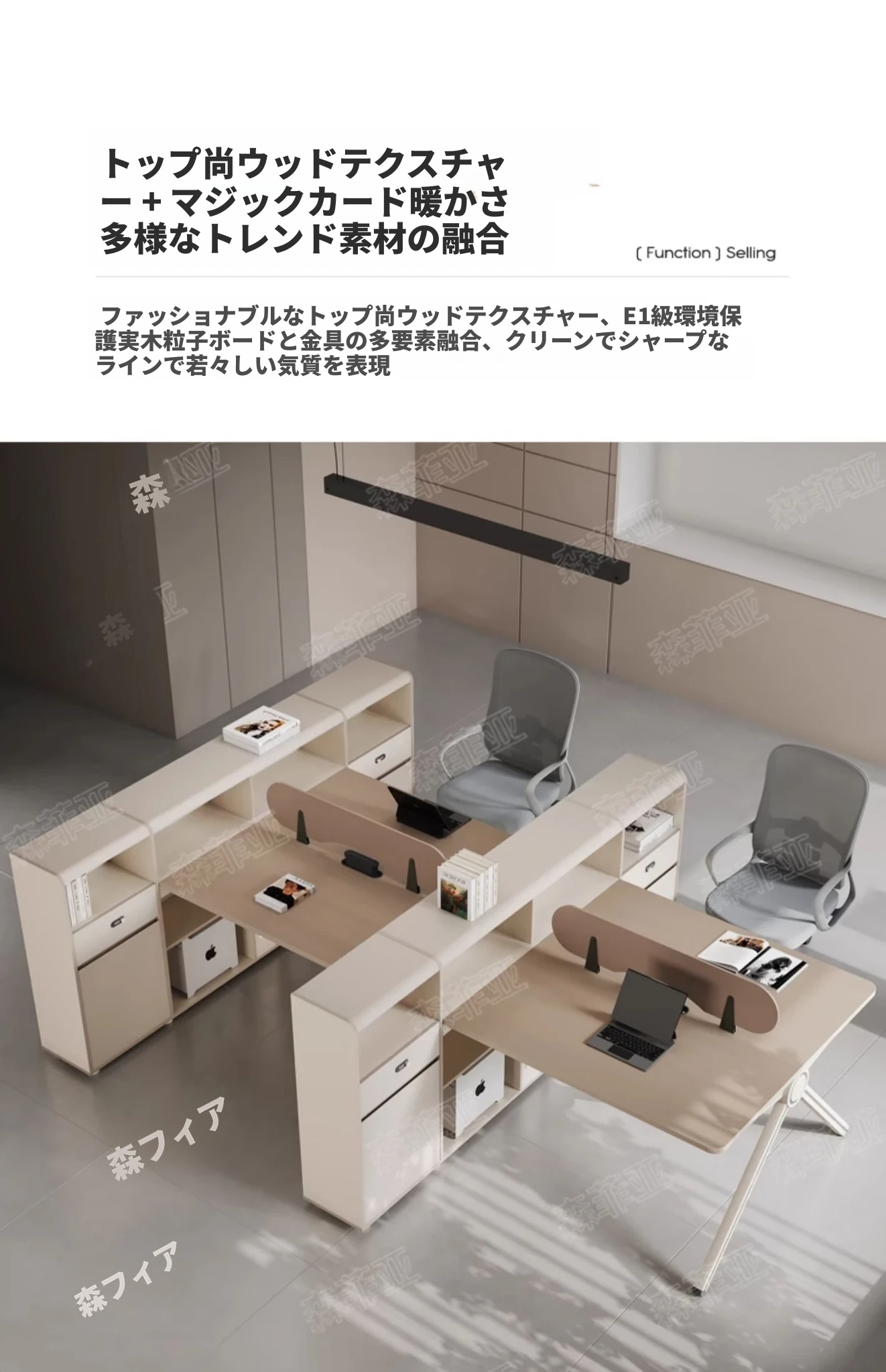 シンプルでモダンなオフィスデスク&チェアセット 高級感溢れる2/4/6人用デスク 職場の生産性を向上させる快適な従業員スペース