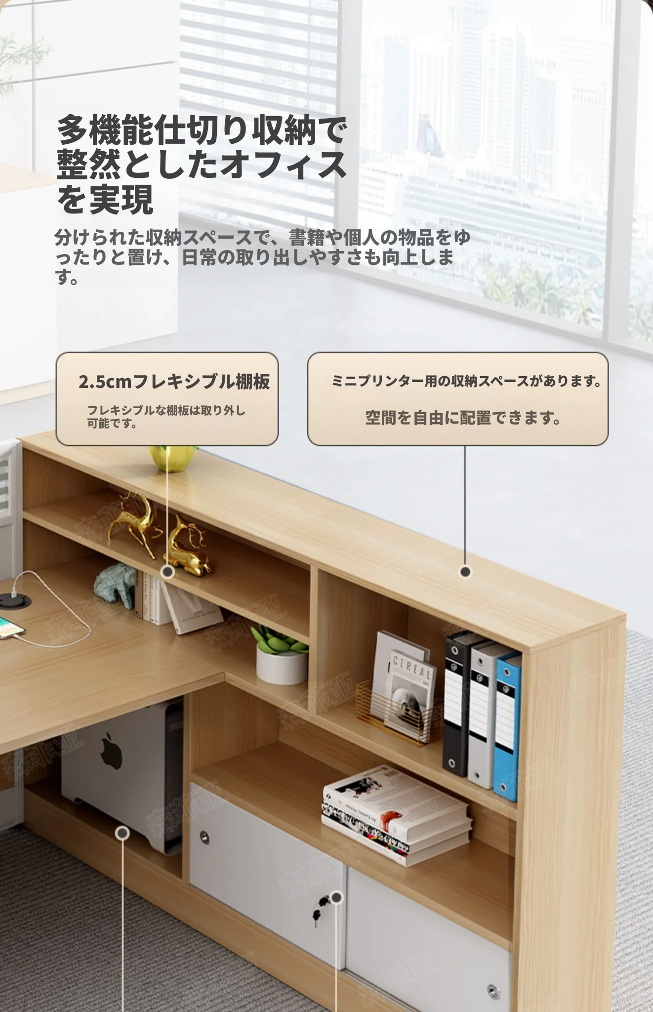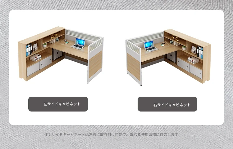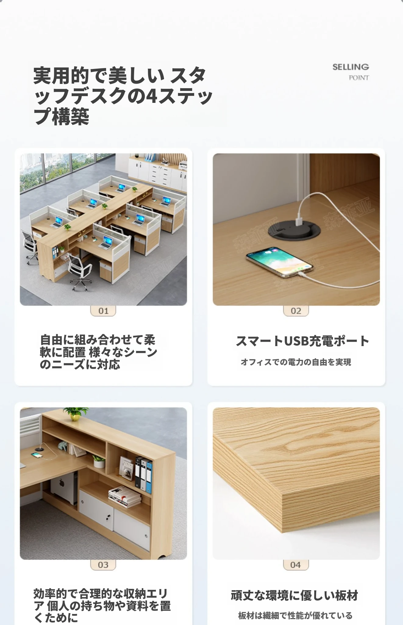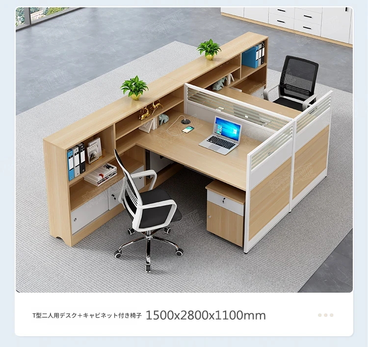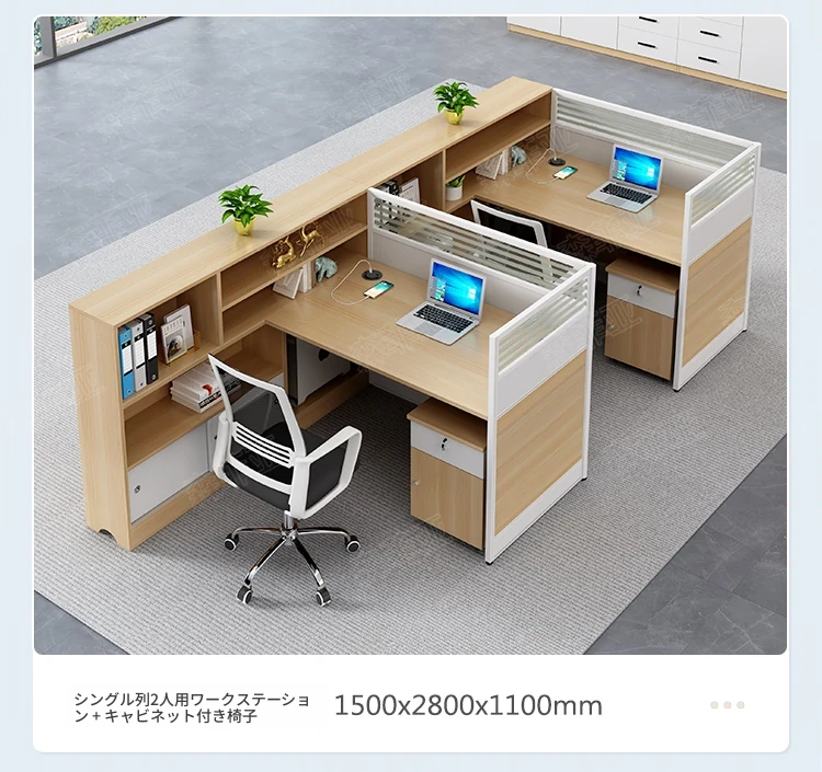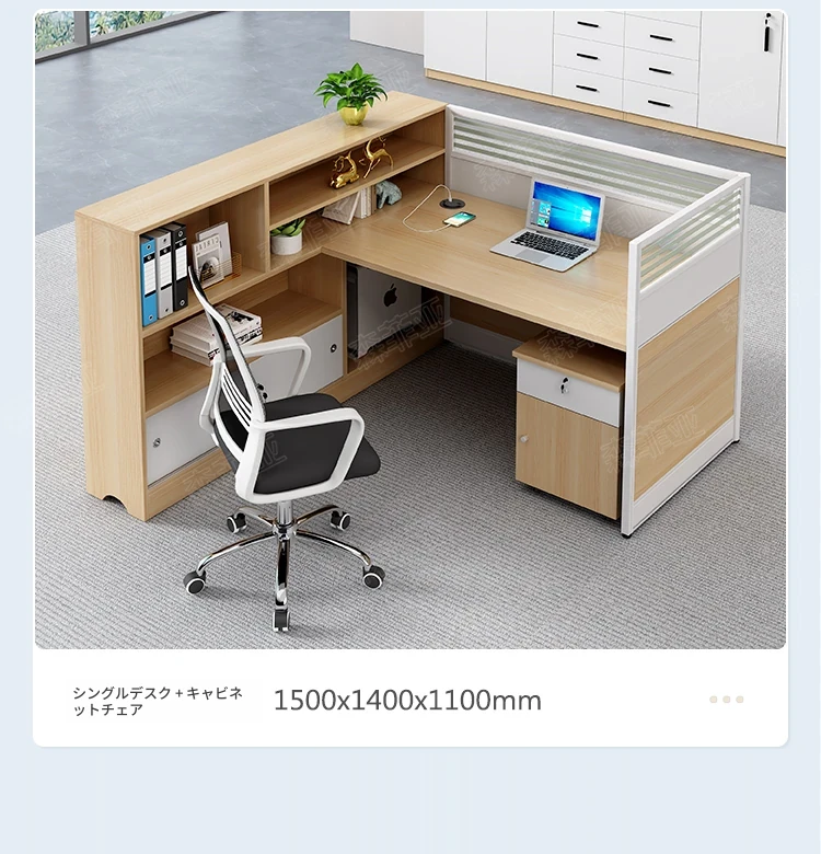 シンプルでモダンなオフィスデスク&チェアセット|4人用パーティション付きオフィスカウンター|快適な職場環境を実現するスタイリッシュなワークスペース家具!
