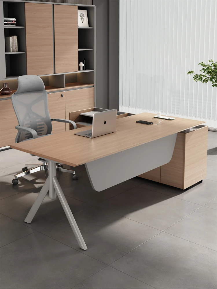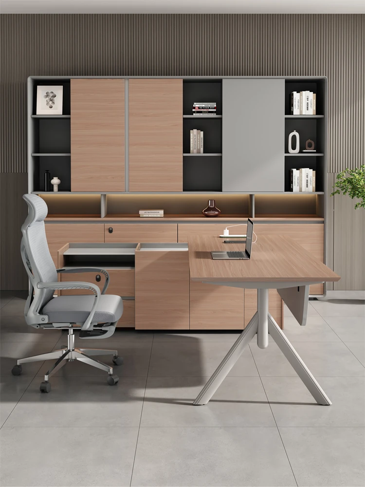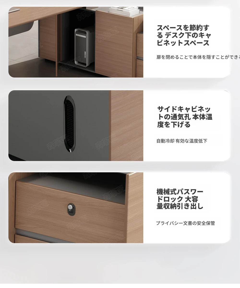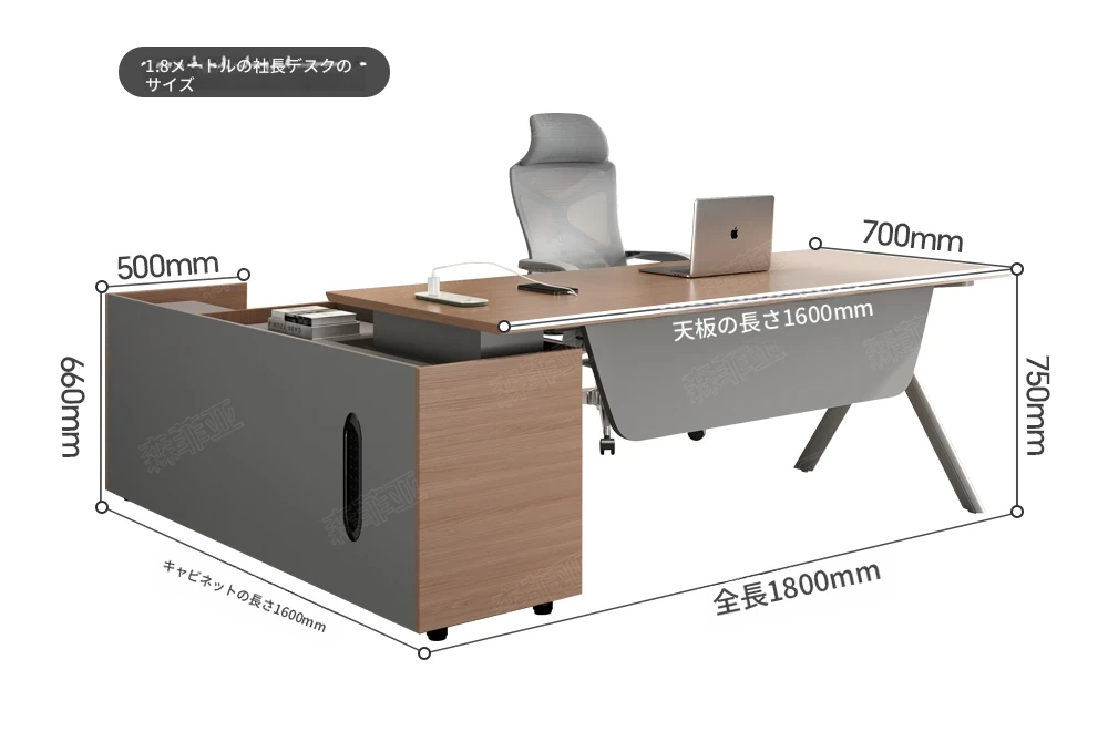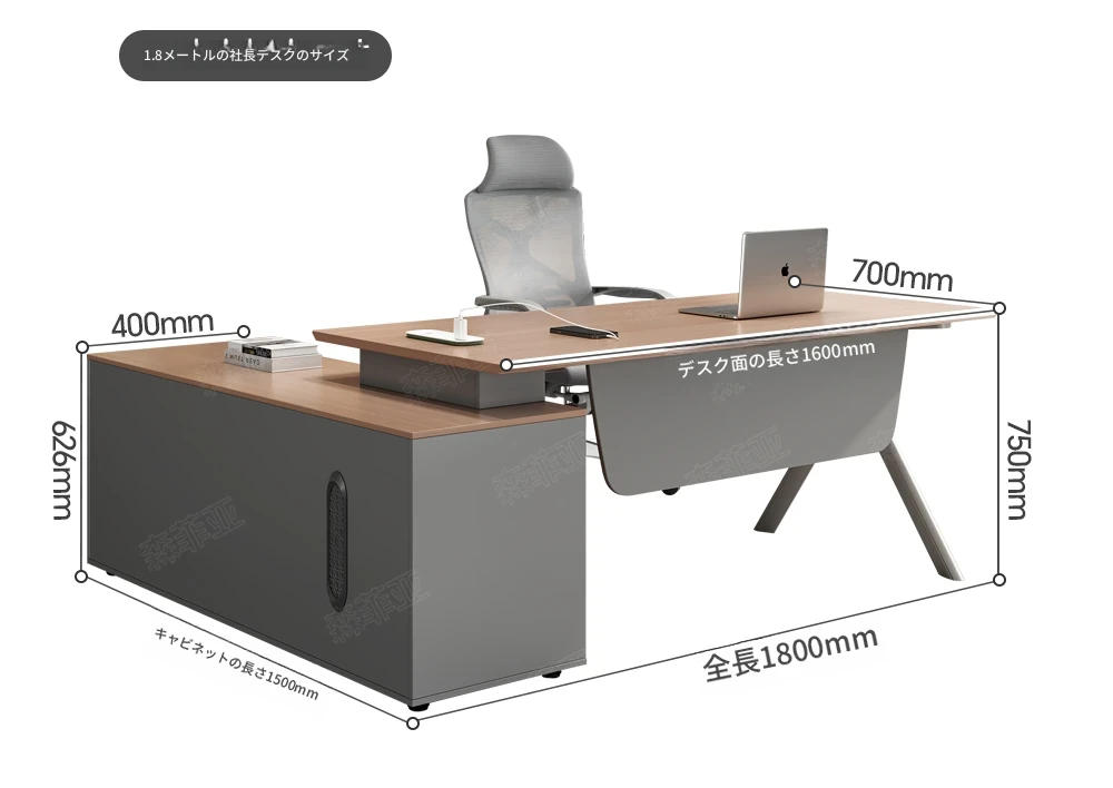 01型1.8メートルマネージャーデスク+2.4メートルファイルキャビネット+椅子 【無料配送・設置】