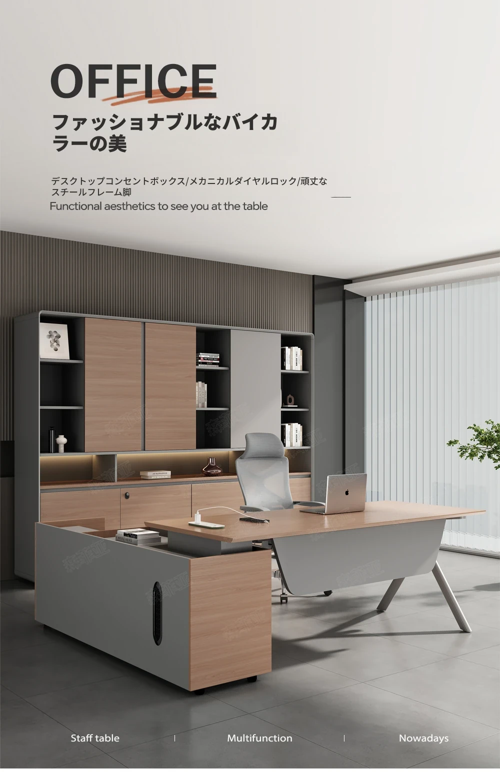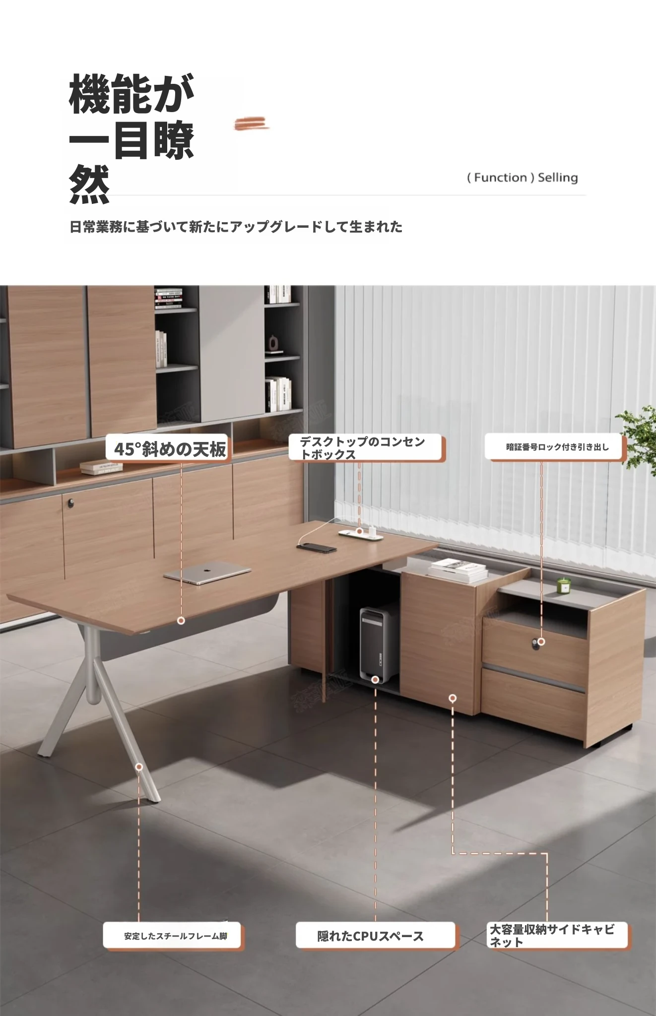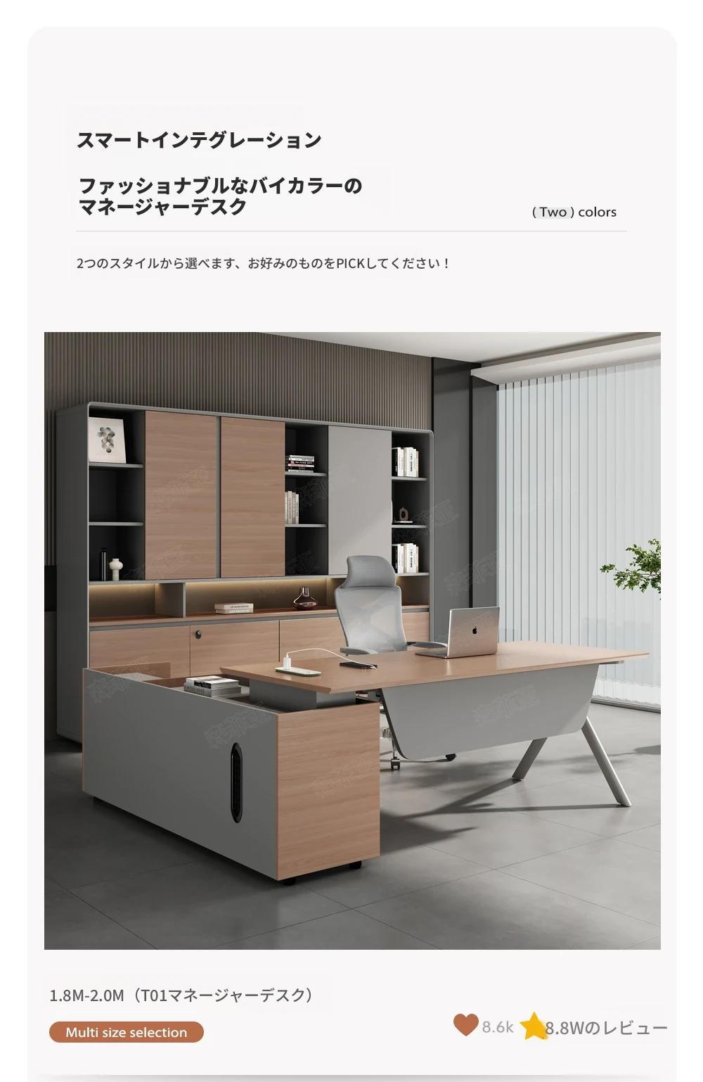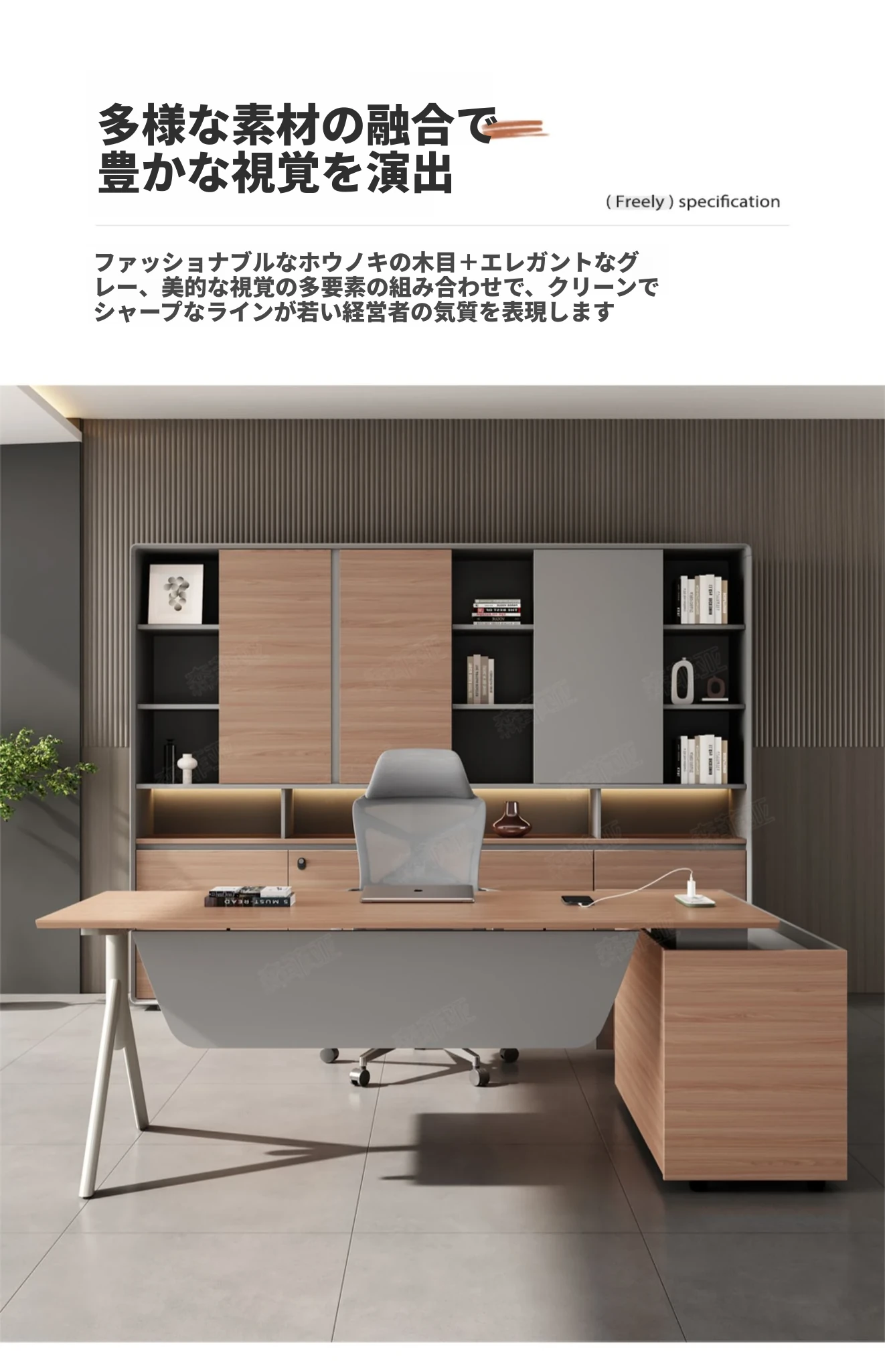 01型1.8メートルマネージャーデスク+2.4メートルファイルキャビネット 【無料配送・設置】