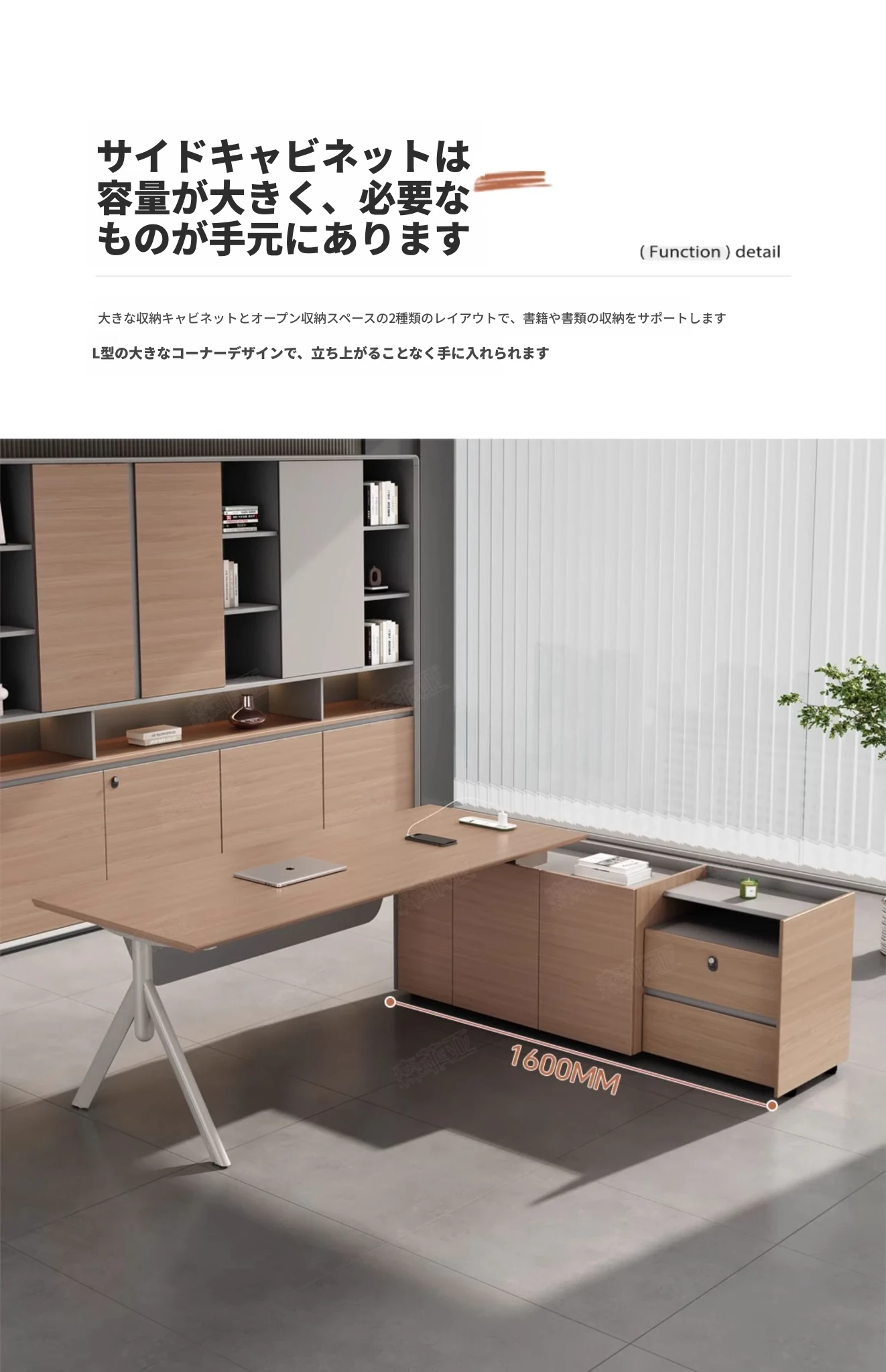 02型1.6メートルマネージャーデスク+2.0メートルファイルキャビネット 【無料配送・設置】