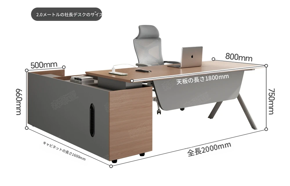 02型1.8メートルマネージャーデスク+2.0メートルファイルキャビネット+椅子 【無料配送・設置】