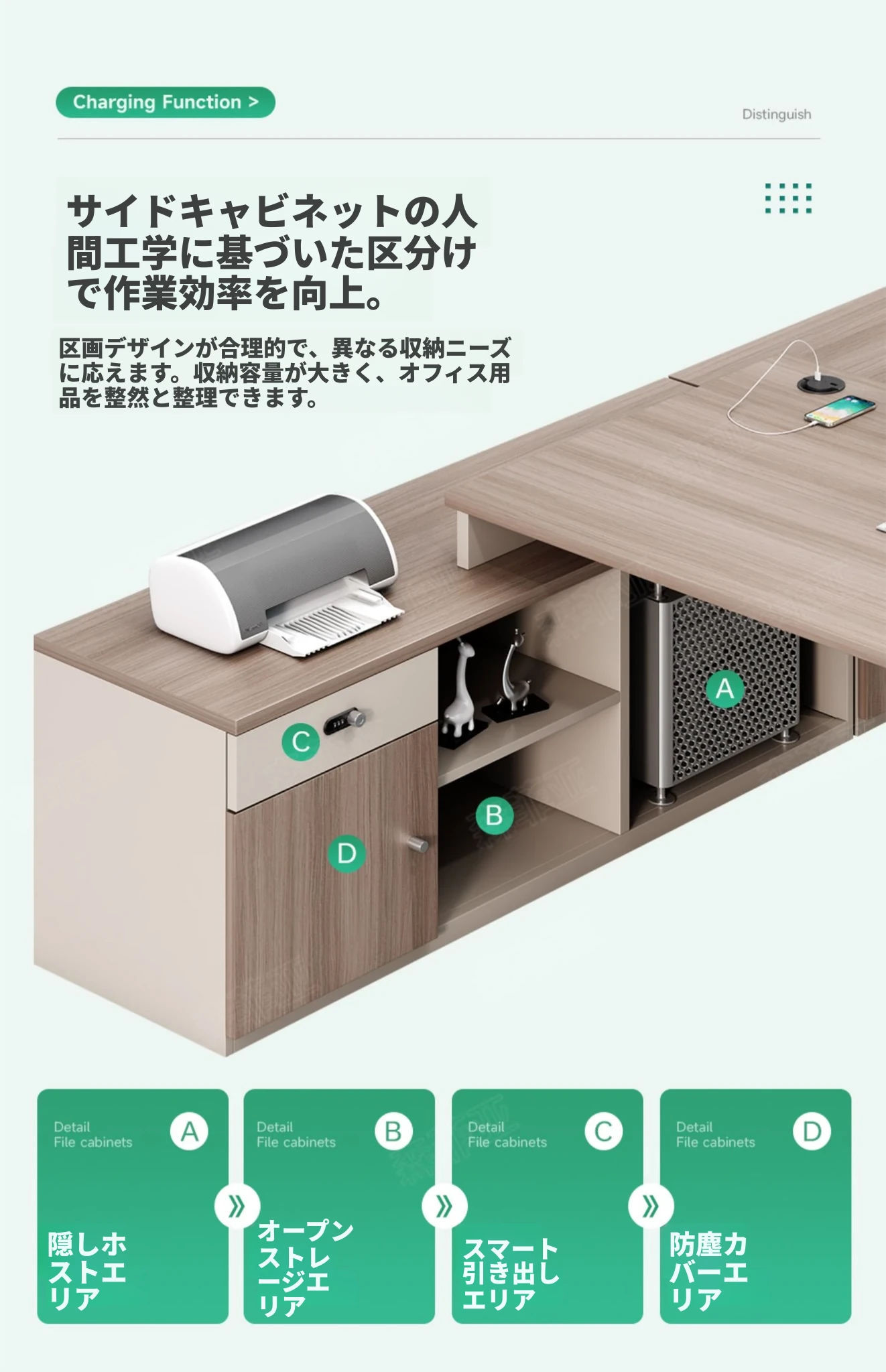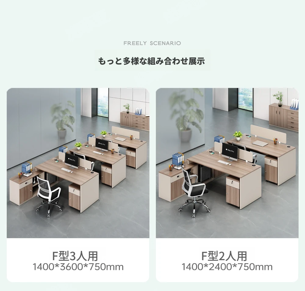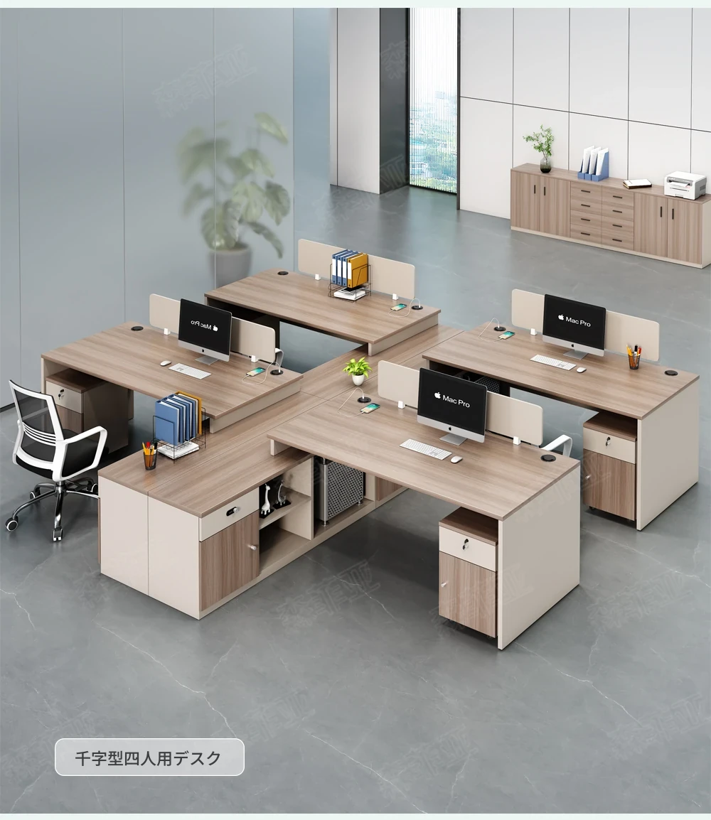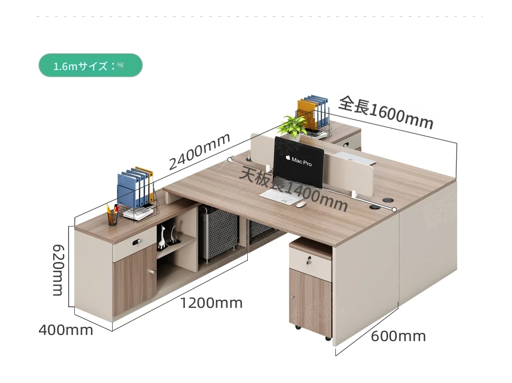 【E0級環境保護板】1.4メートル干字型六人用(サイドキャビネット含む)【無料配送・設置】