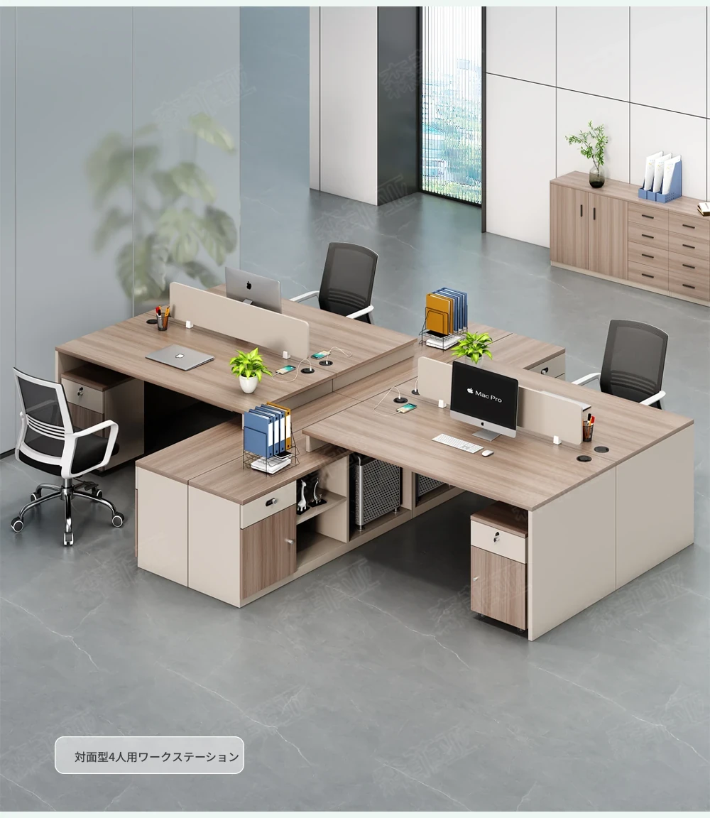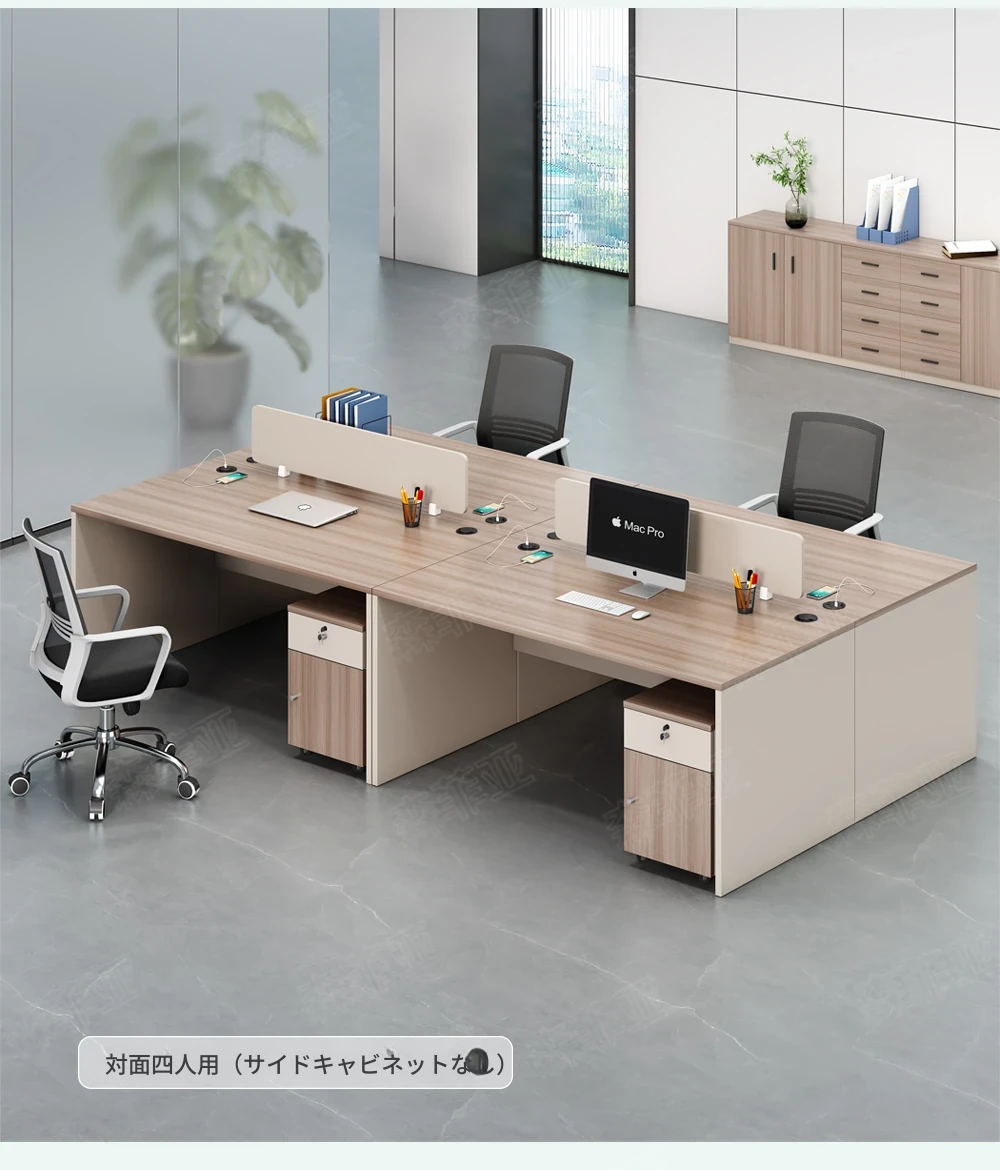 【E0級環境保護板】1.4メートル対面四人用(サイドキャビネット含む)【無料配送・設置】