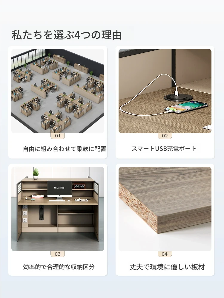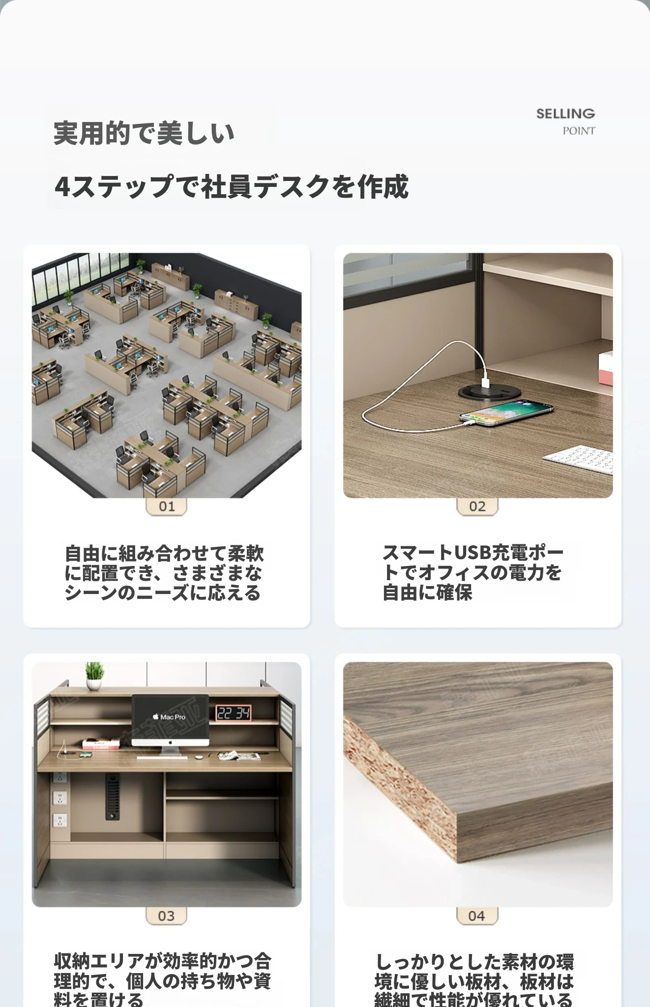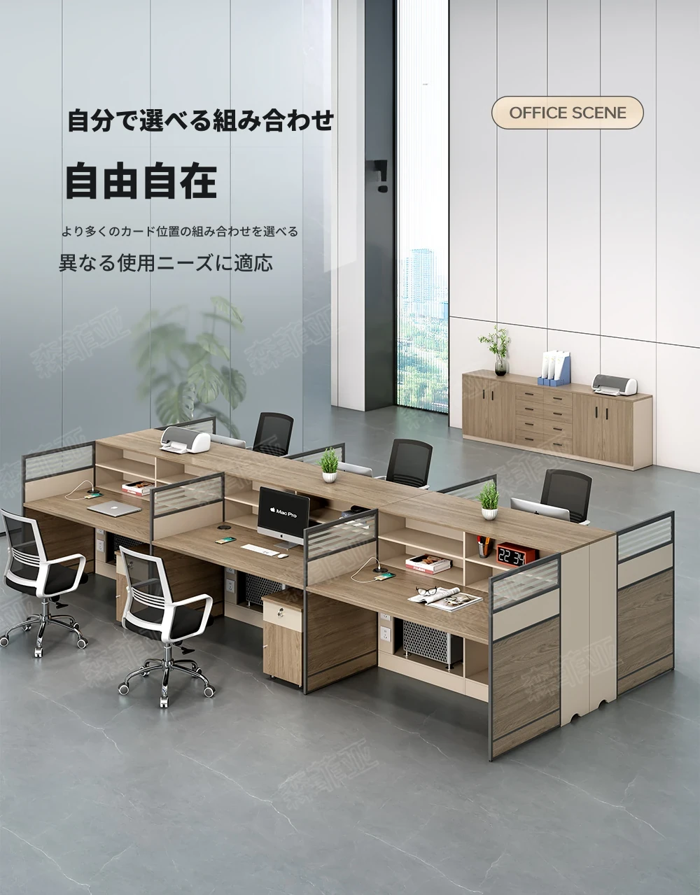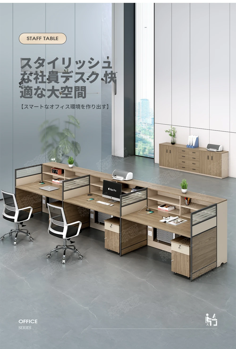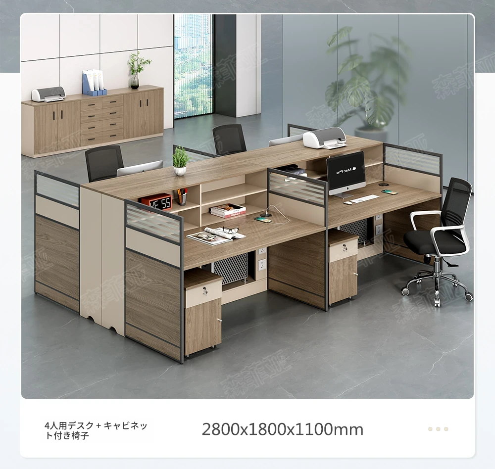 モダンシンプルなオフィスデスク - 2/4/6人用のスタイリッシュなデスク&チェアセット!快適で機能的な職員用デスク、4人用の効率的な作業スペースを実現。あなたのオフィスに最適な選択肢です!