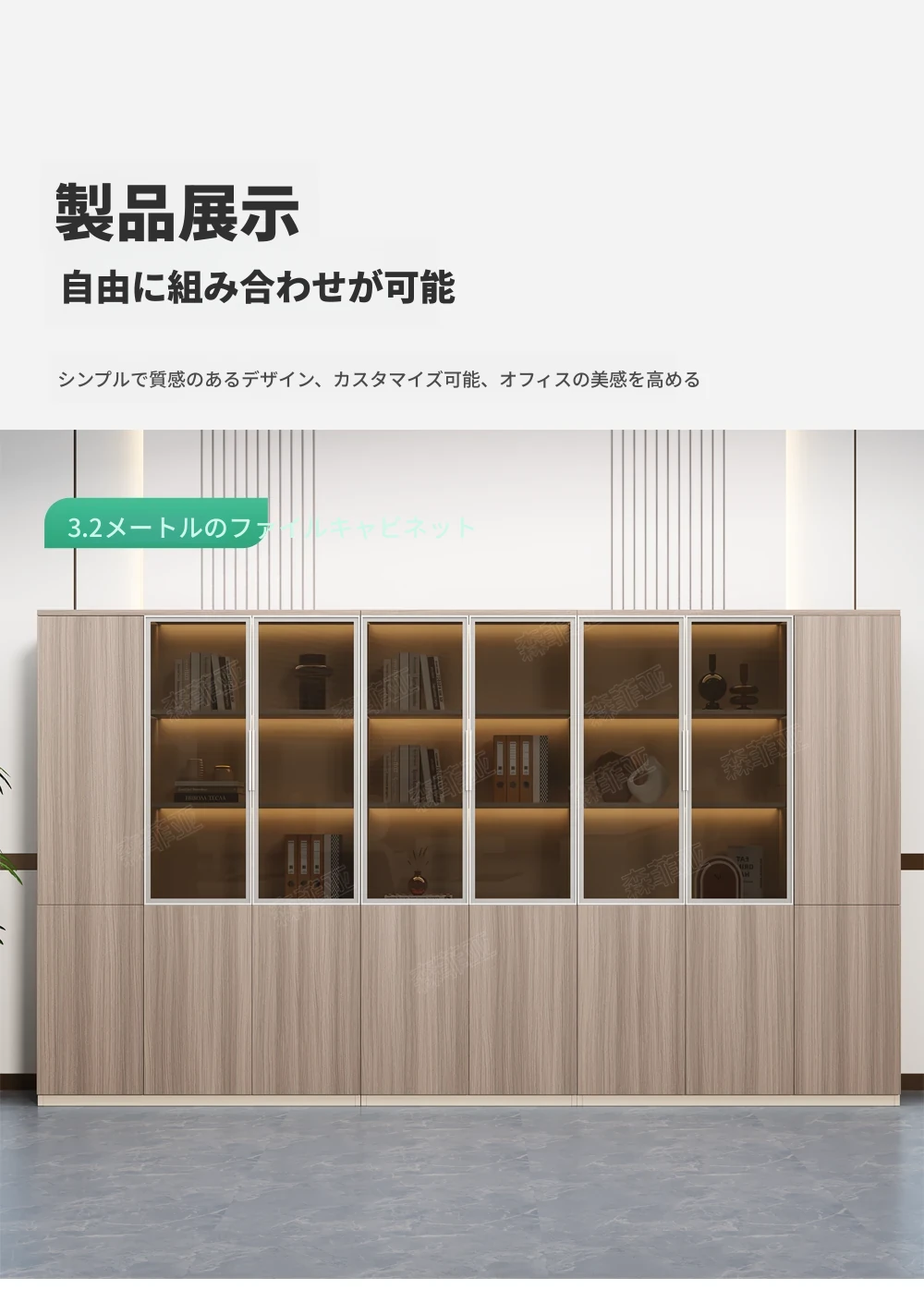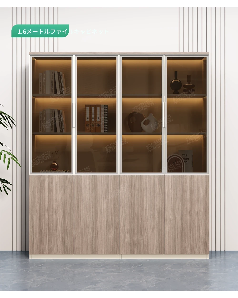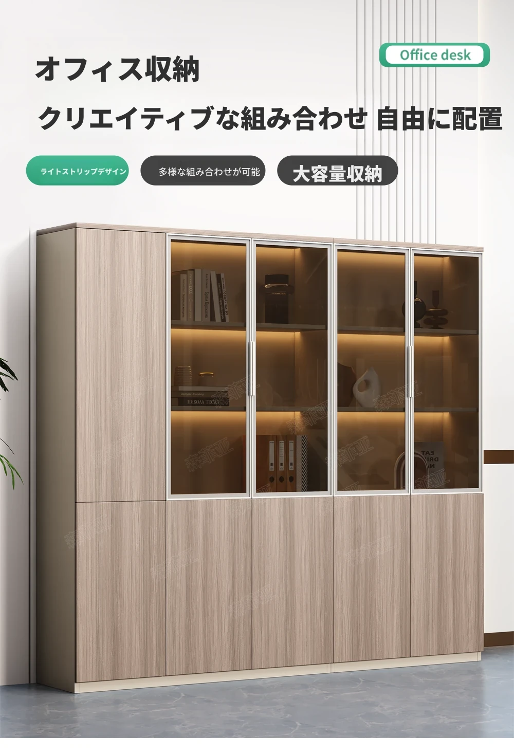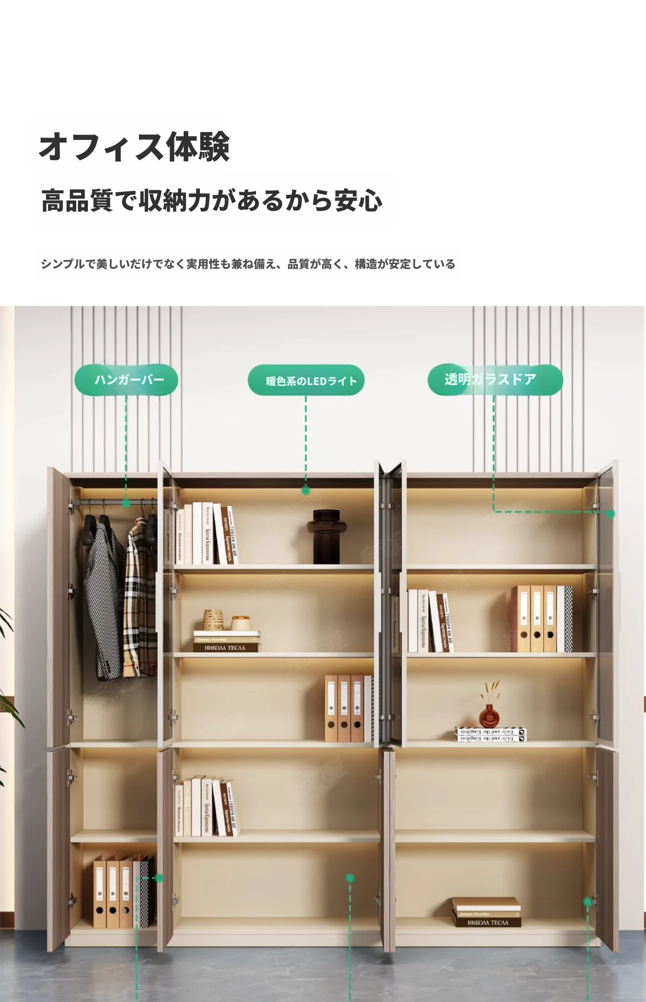オフィス用ファイルキャビネット|シンプルでモダンな書類収納|資料整理に最適なキャビネット|フィギュアや小物も飾れるLEDライト付き|スタイリッシュなオフィス空間を演出!