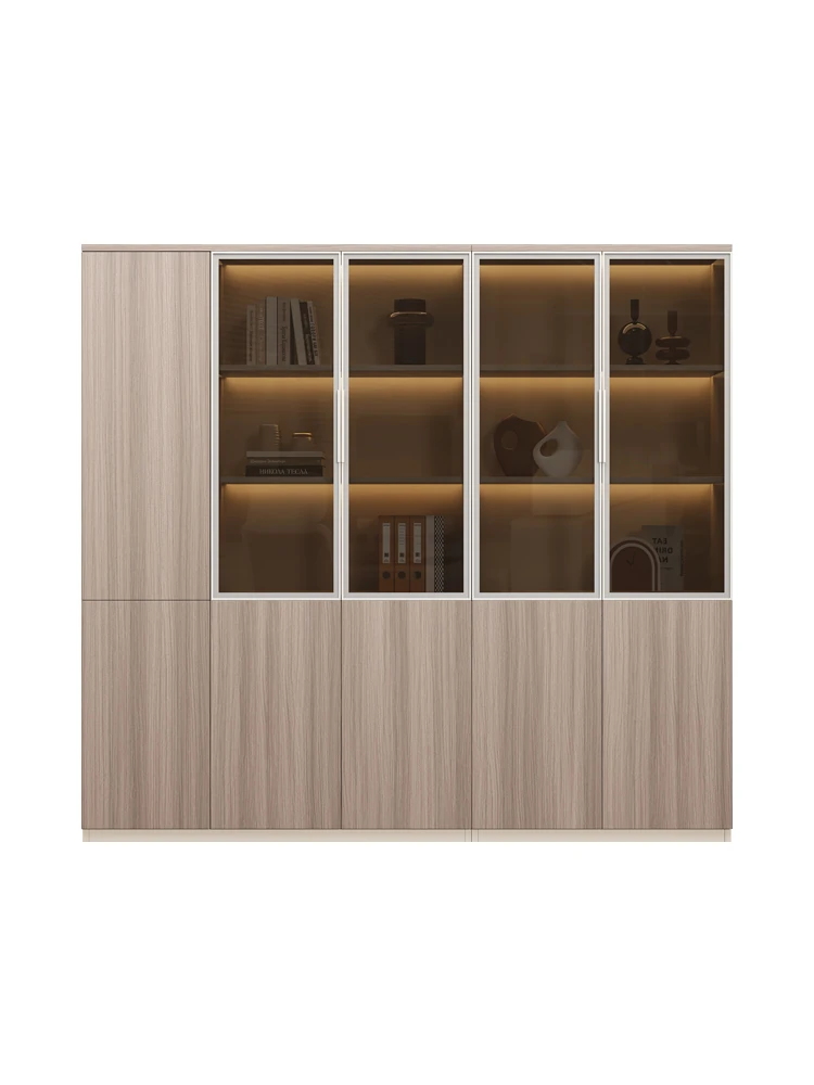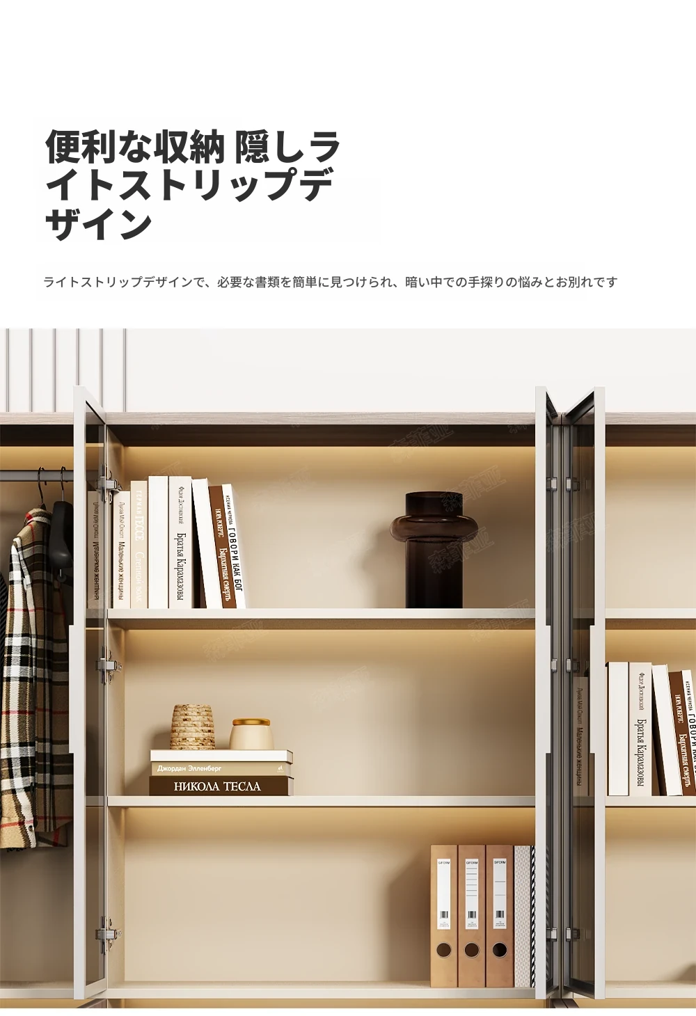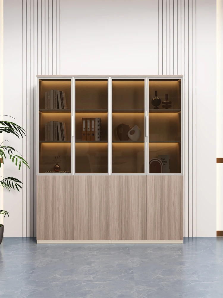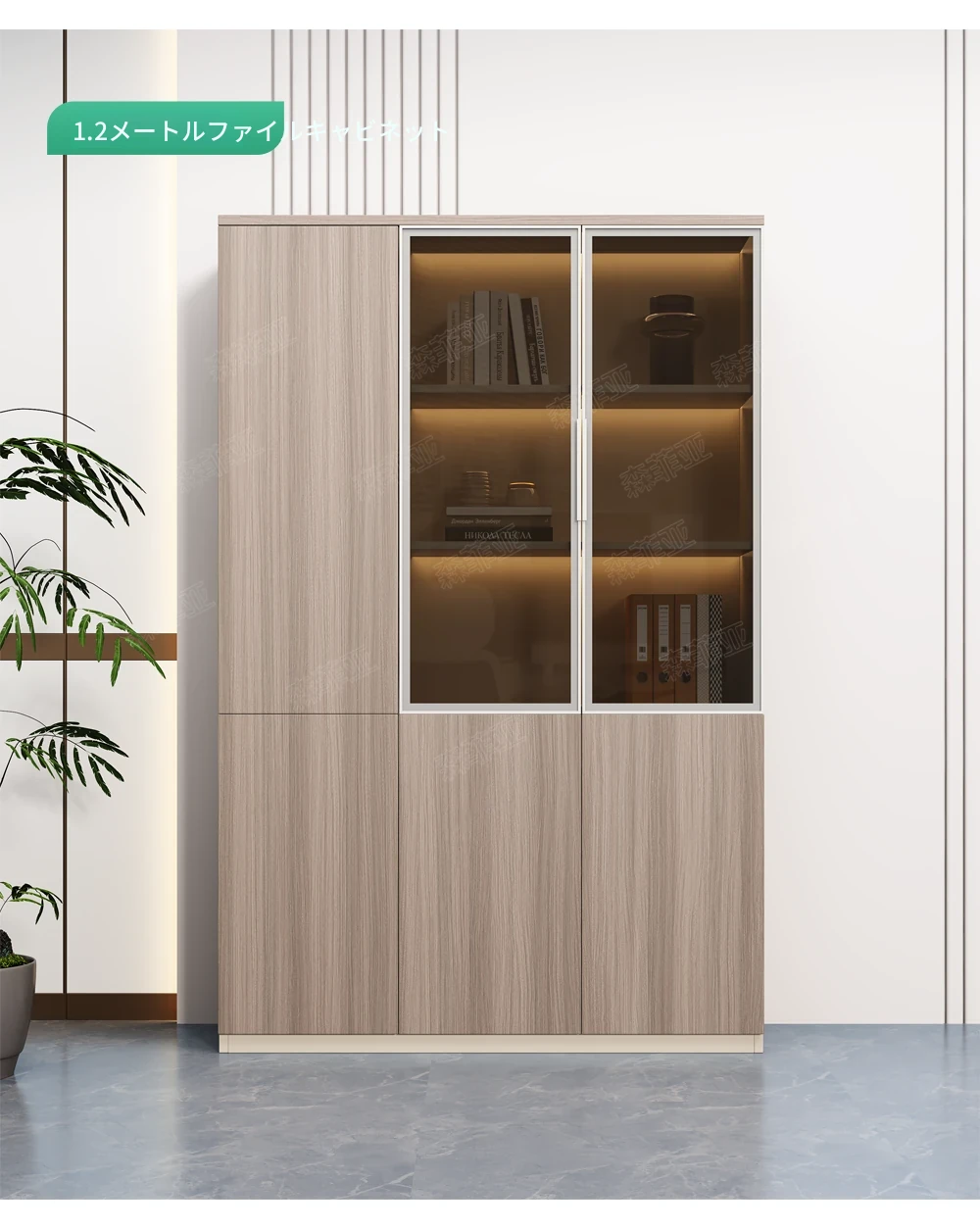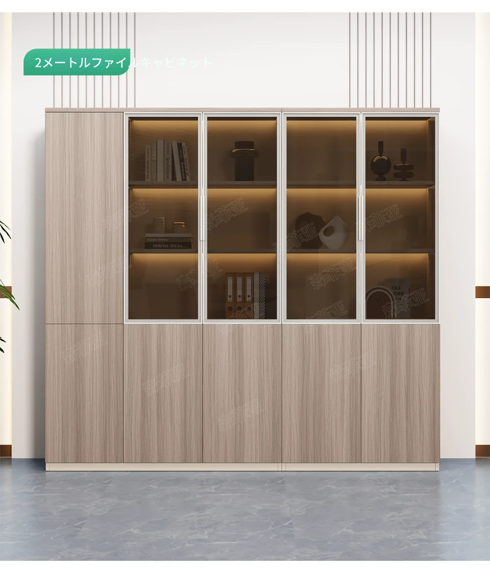 オフィス用ファイルキャビネット|シンプルでモダンな書類収納|資料整理に最適なキャビネット|フィギュアや小物も飾れるLEDライト付き|スタイリッシュなオフィス空間を演出!