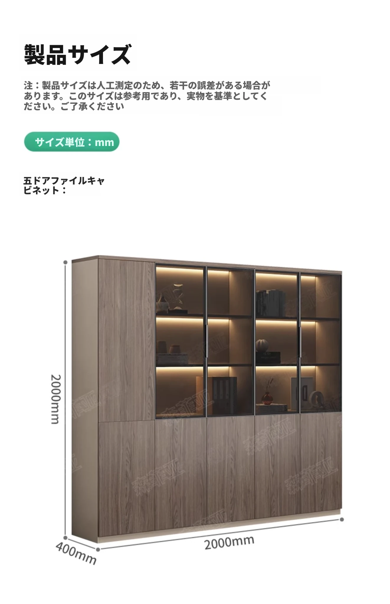7ドアファイルキャビネット-左側ドアキャビネット(ライト付き)ウッドウォールナット+テクノグレー
