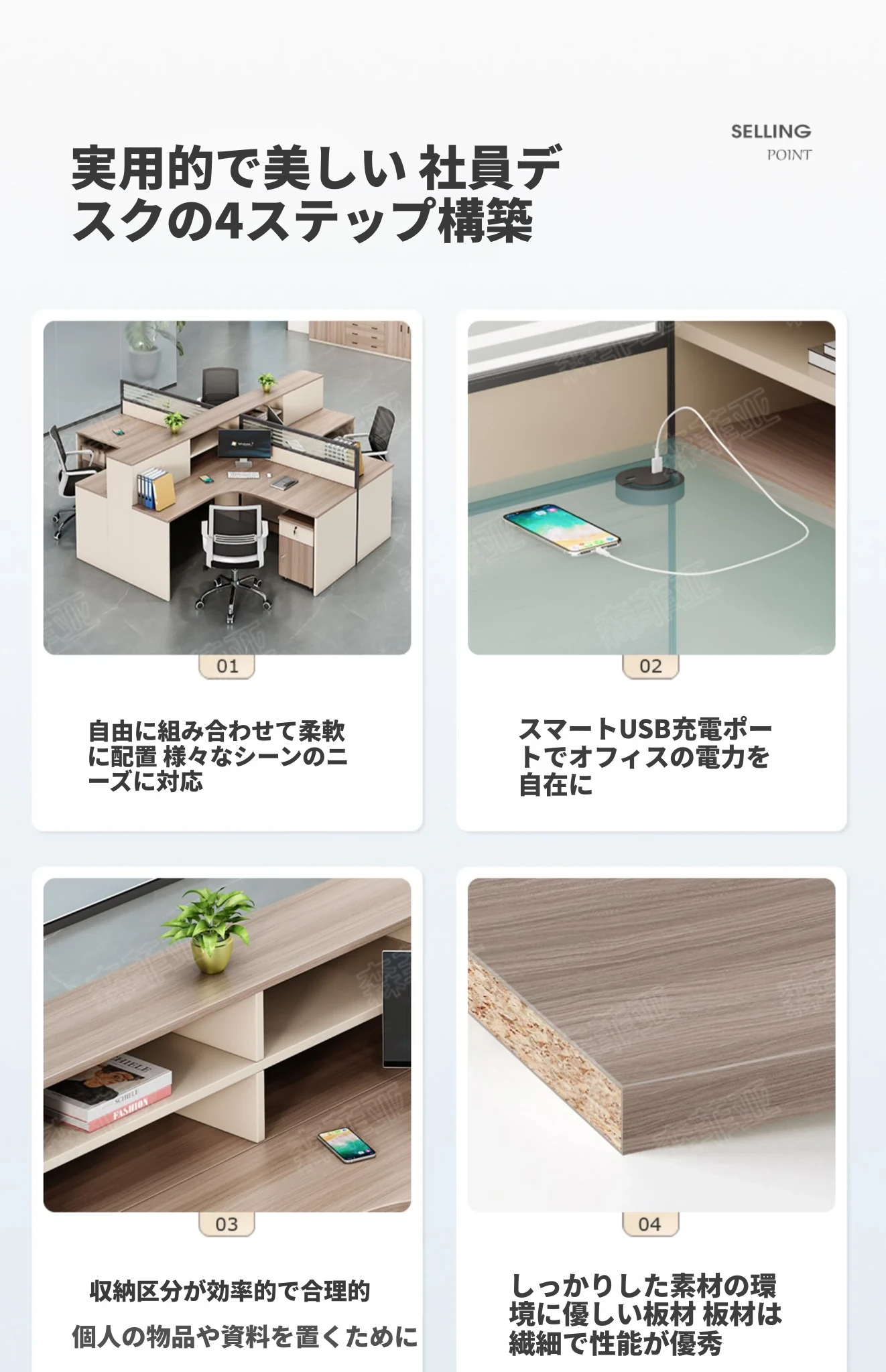 【E0級環境保護ボード】単列4人用+キャビネット椅子