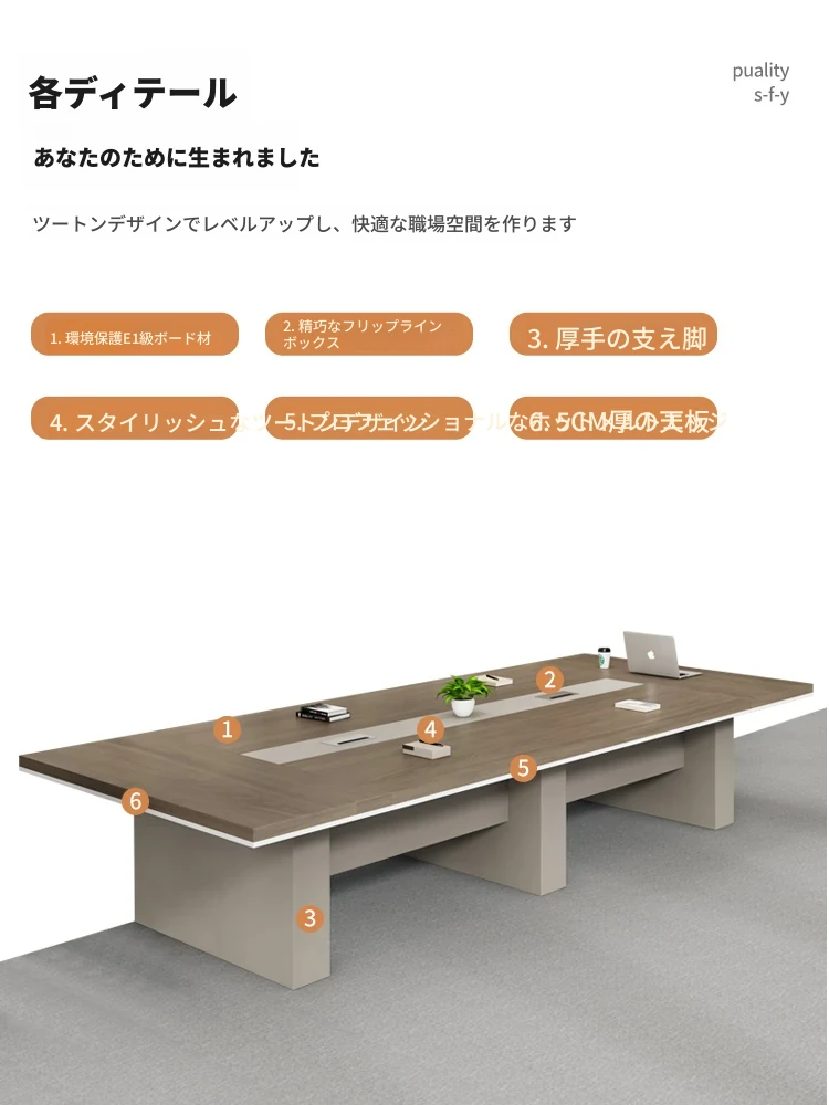2.2*1.1メートル会議テーブル+6脚の椅子